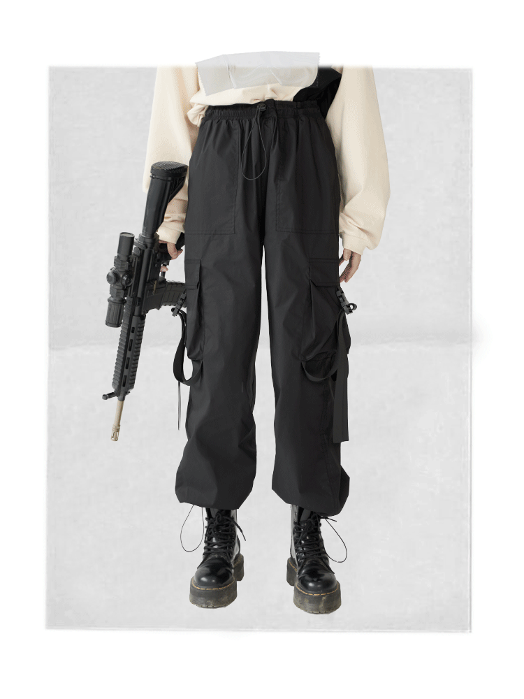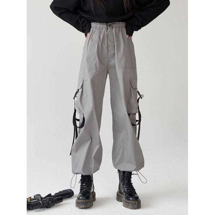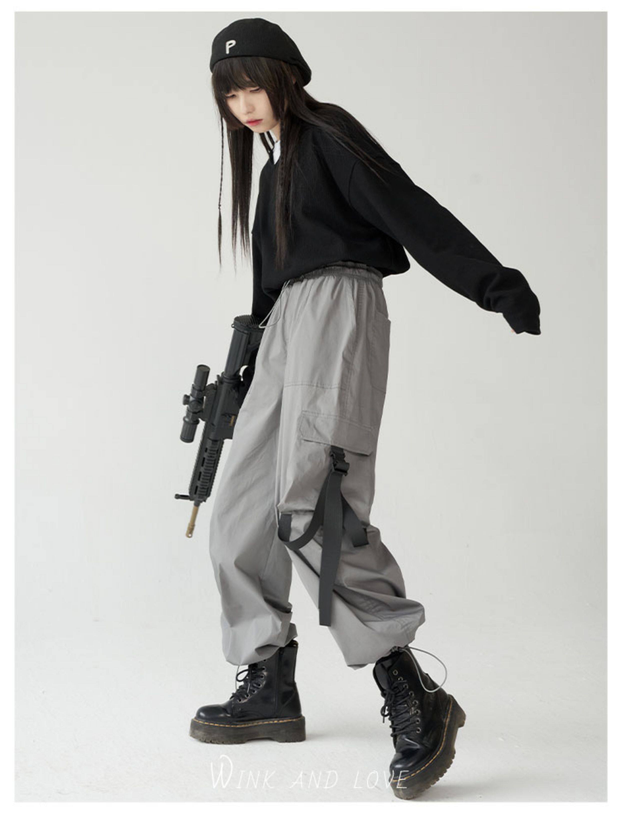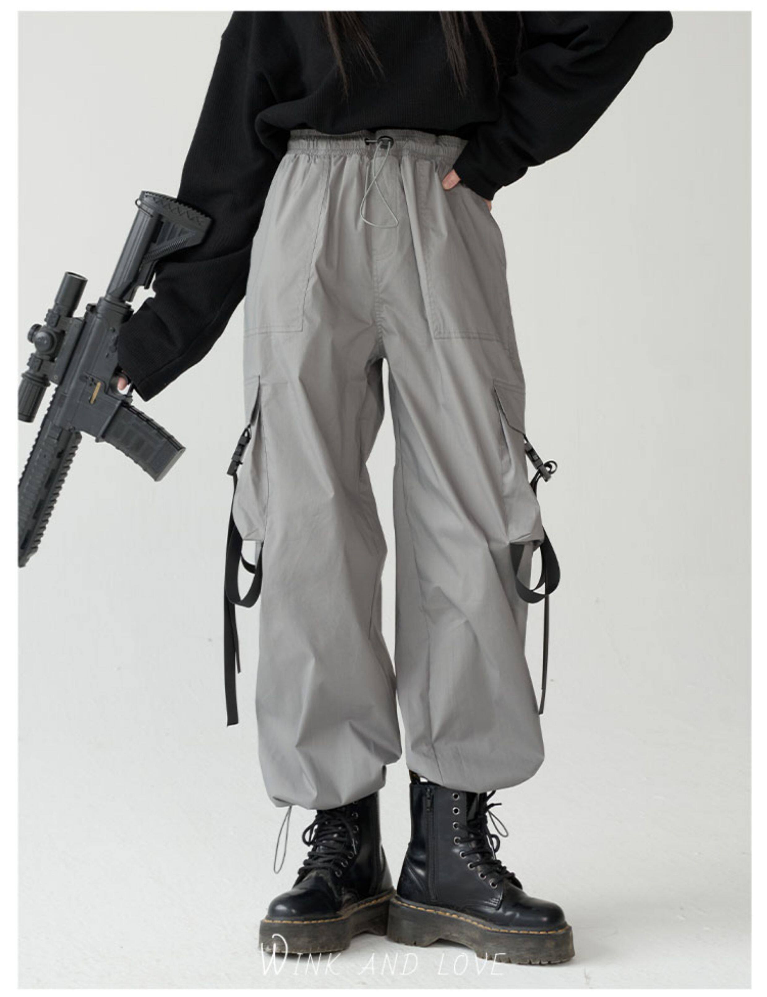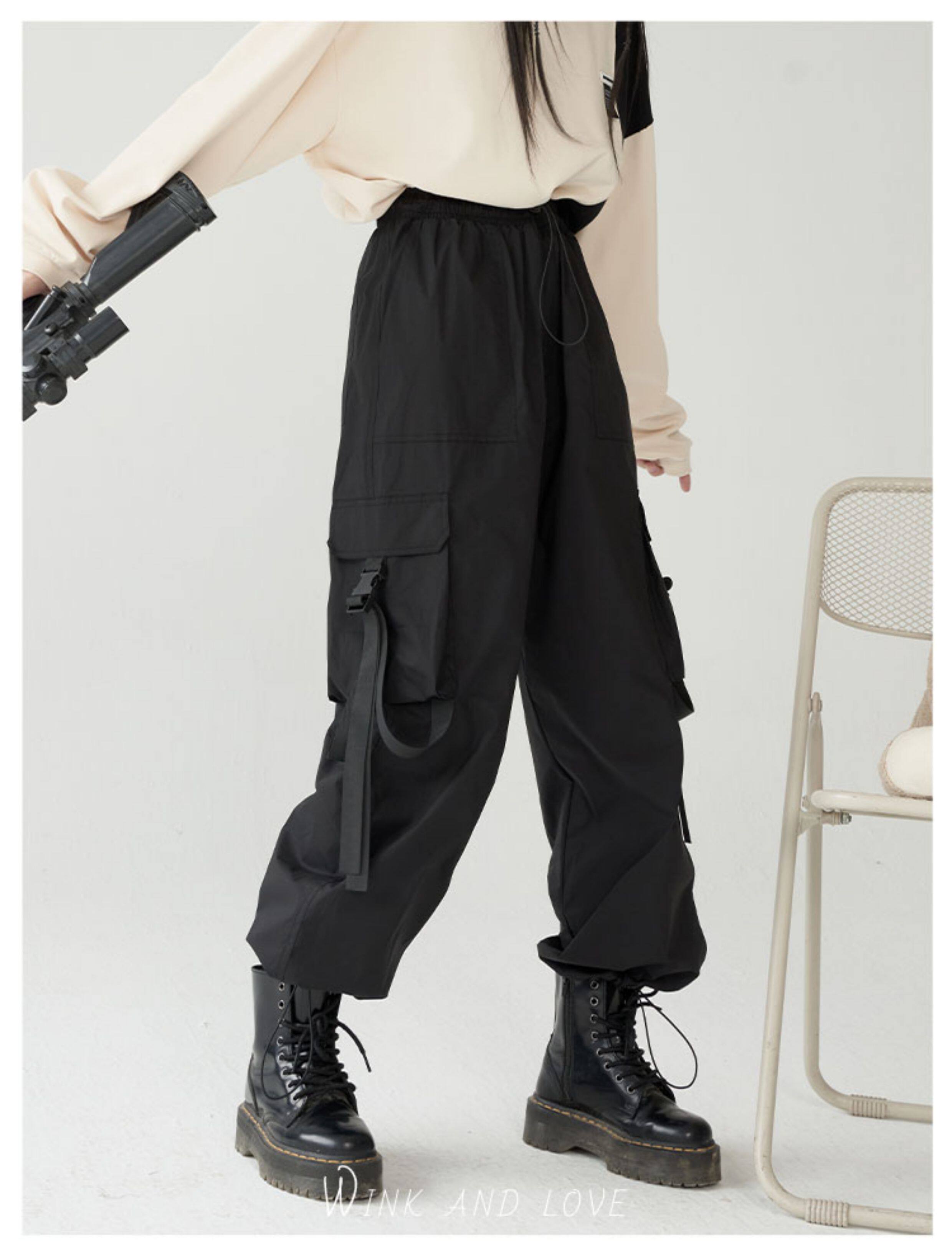 萬有引力博物館 基礎款工裝褲女側邊口袋長褲束腳褲寬鬆休閒褲