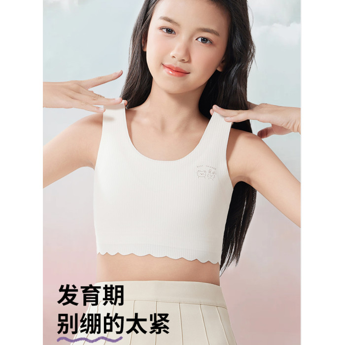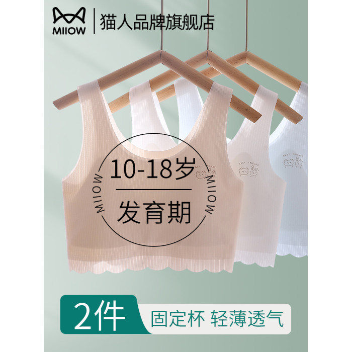 貓人發育期少女內衣小學初中生女孩背心固定杯無痕透氣二階段文胸