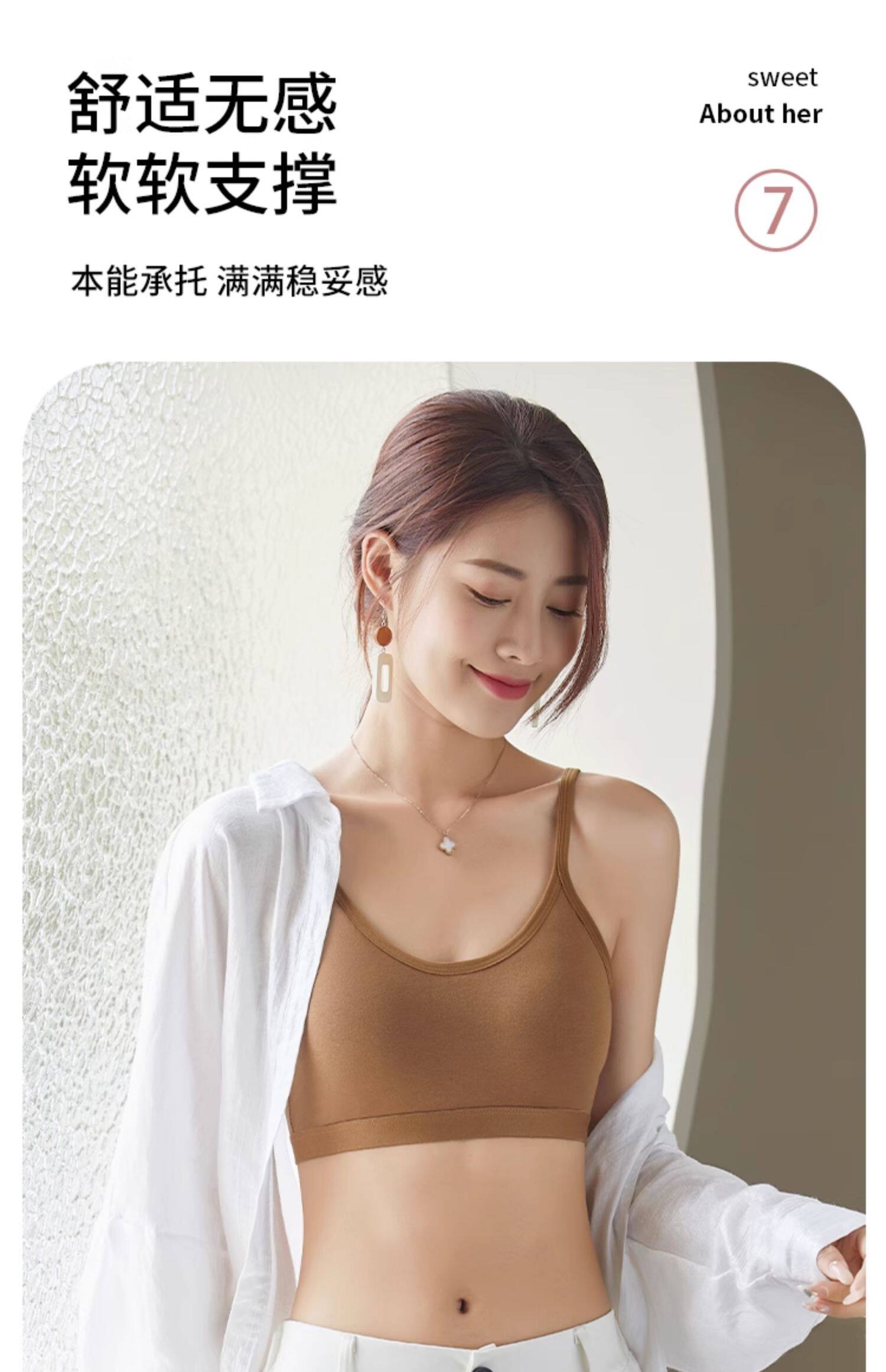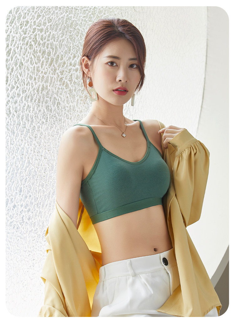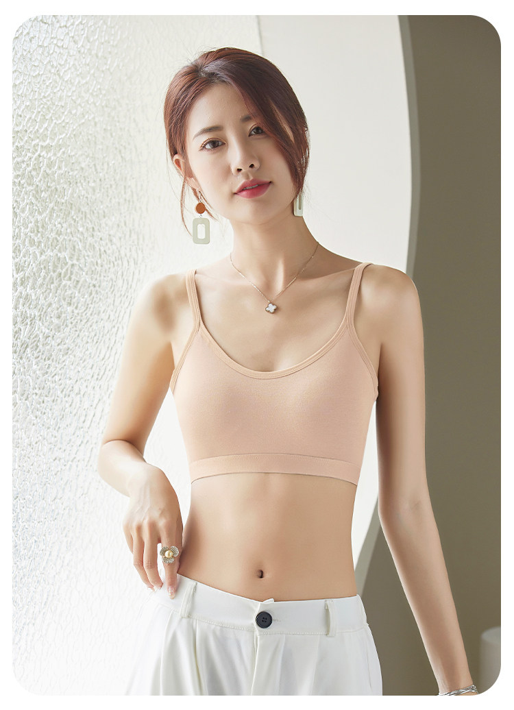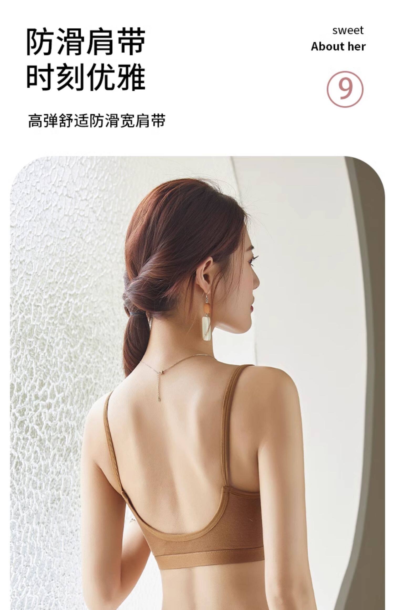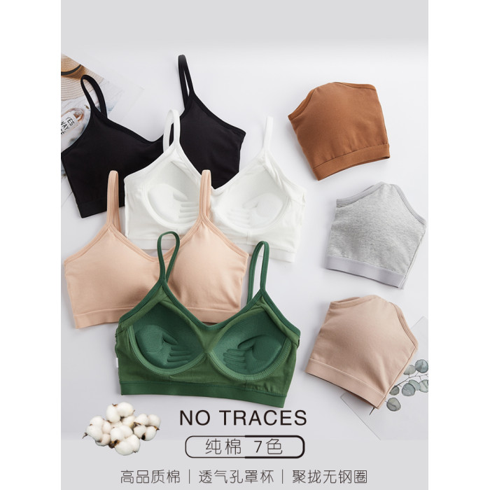 美背吊帶背心一體式純棉少女內衣高中學生文胸運動防震固定杯胸罩