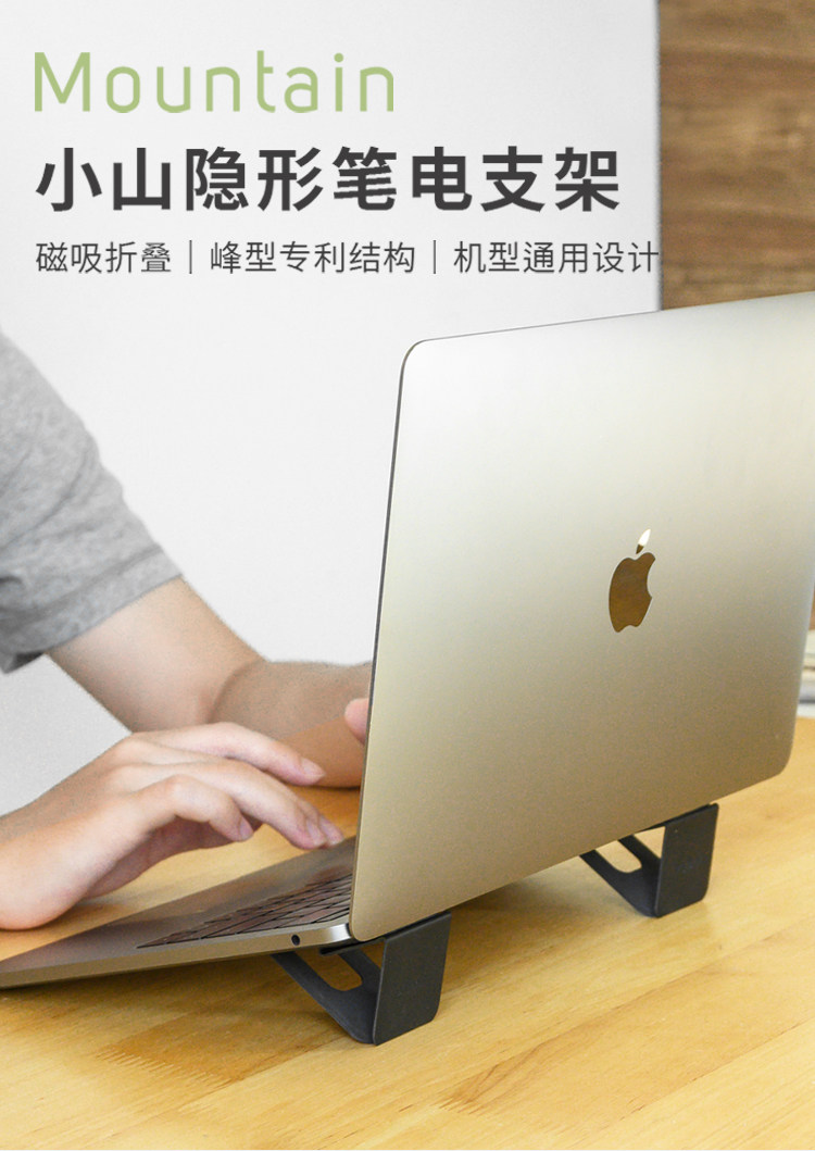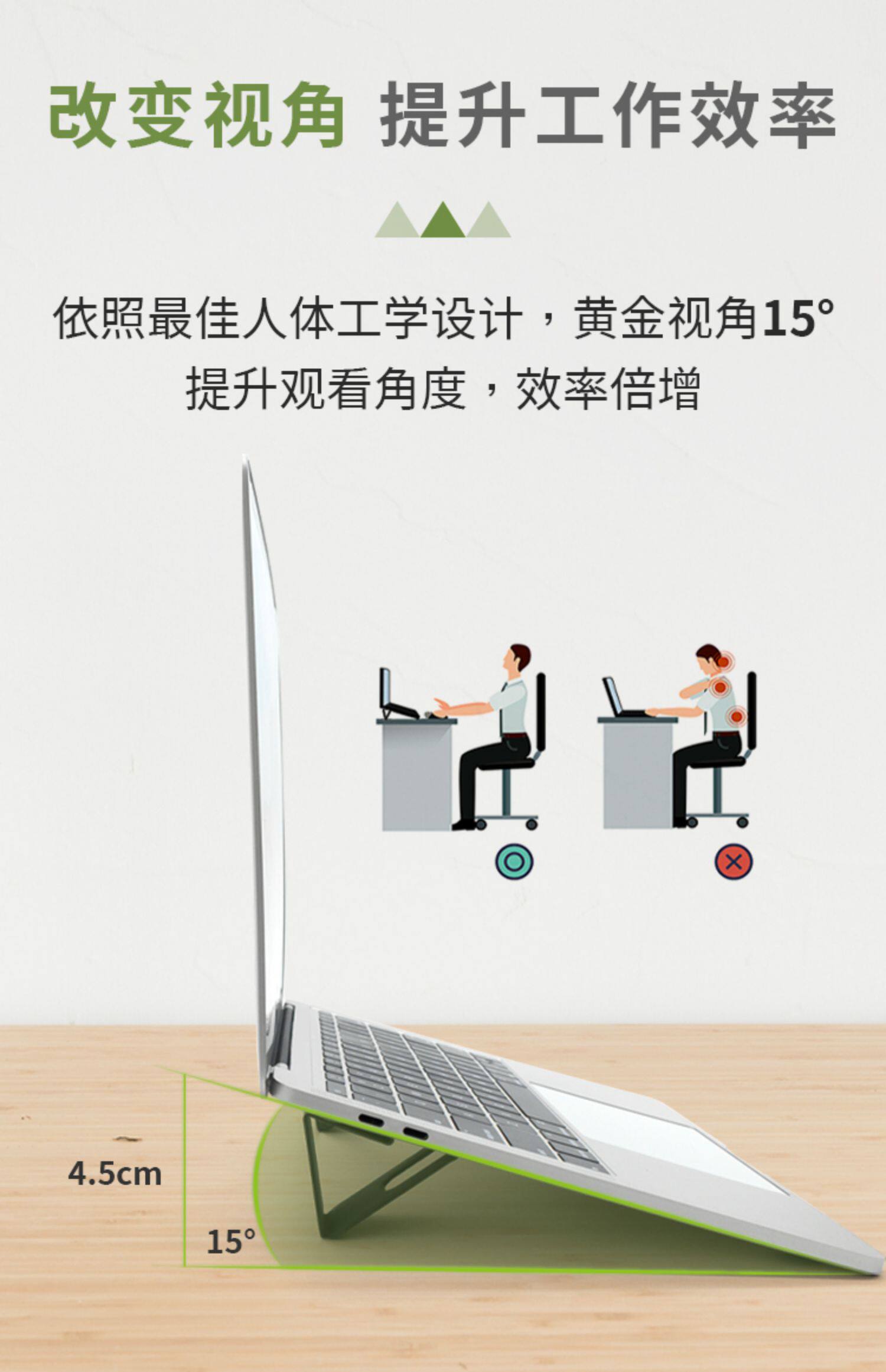小山筆電隱形支架 可攜式折曡黏貼式電腦增高架 散熱超薄筆電托架