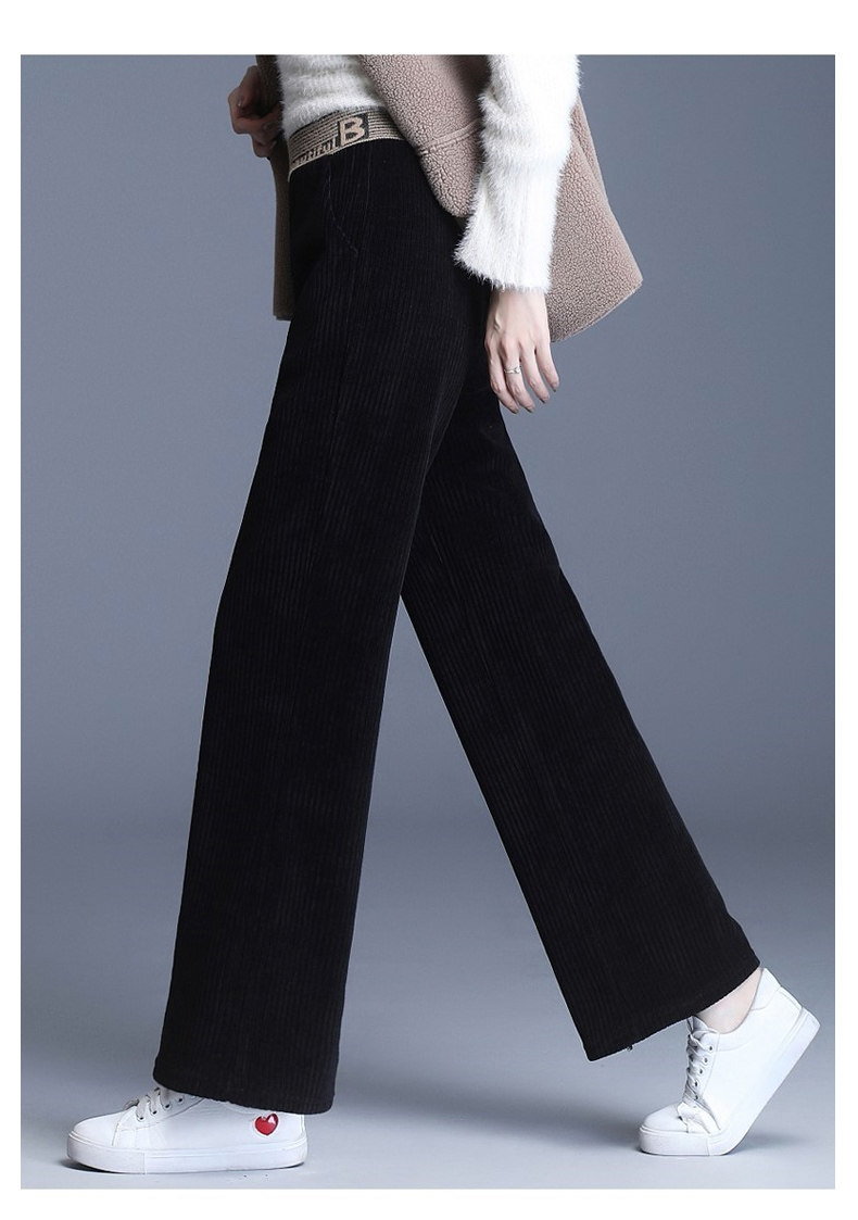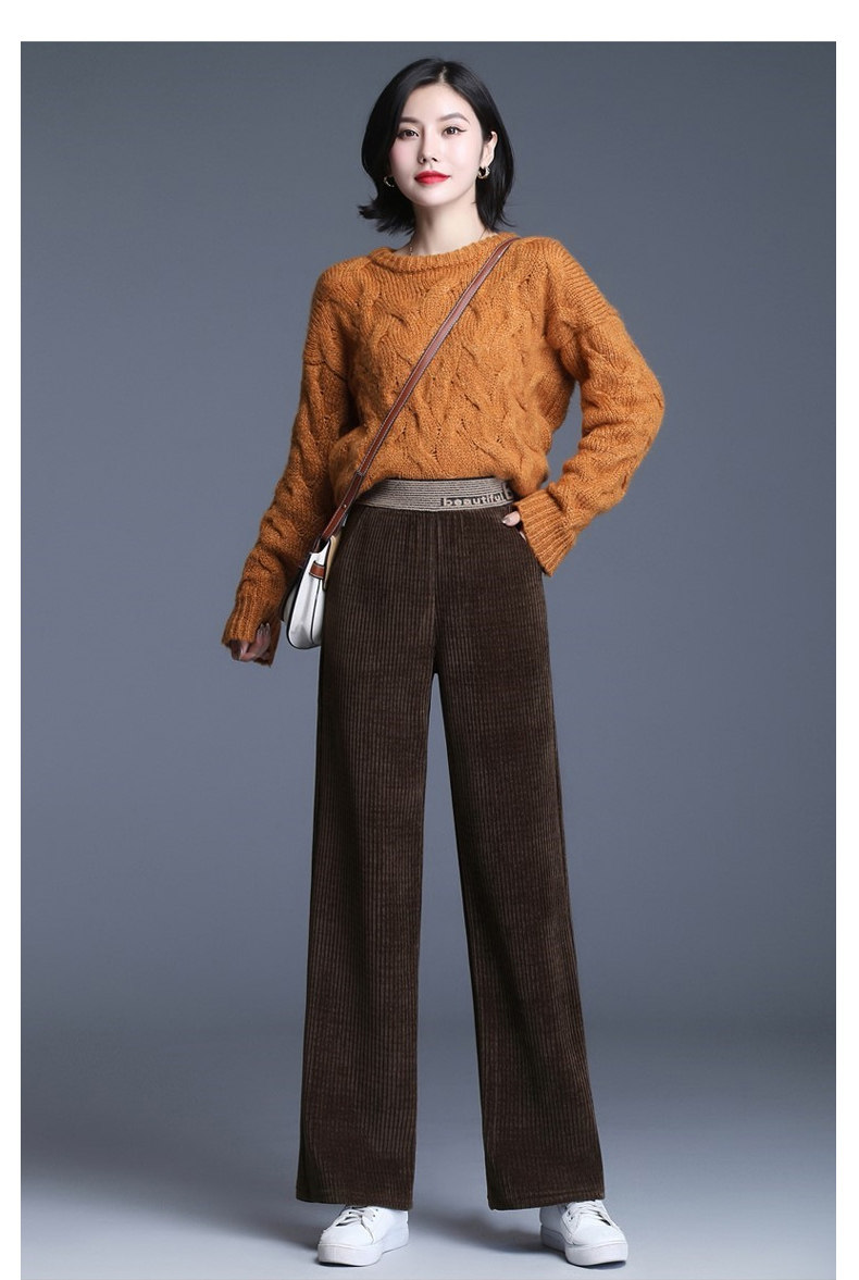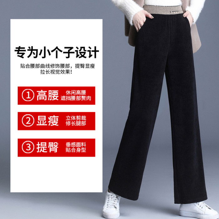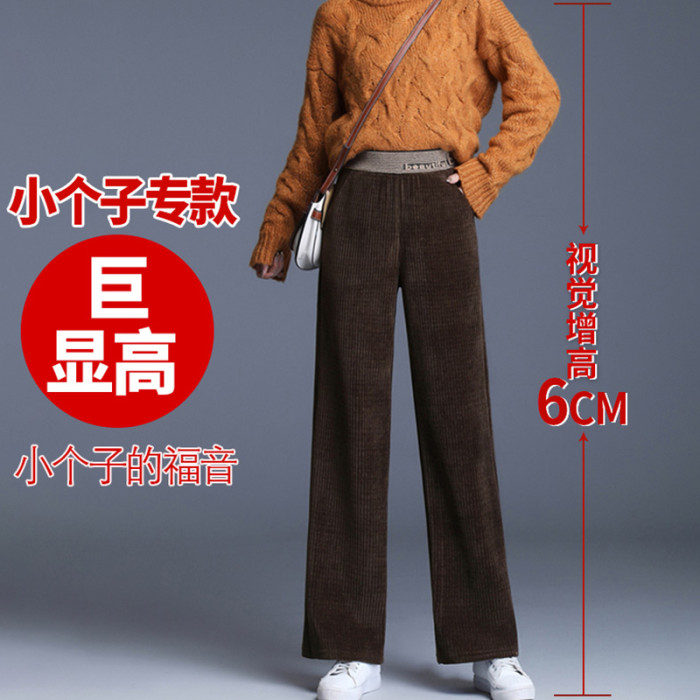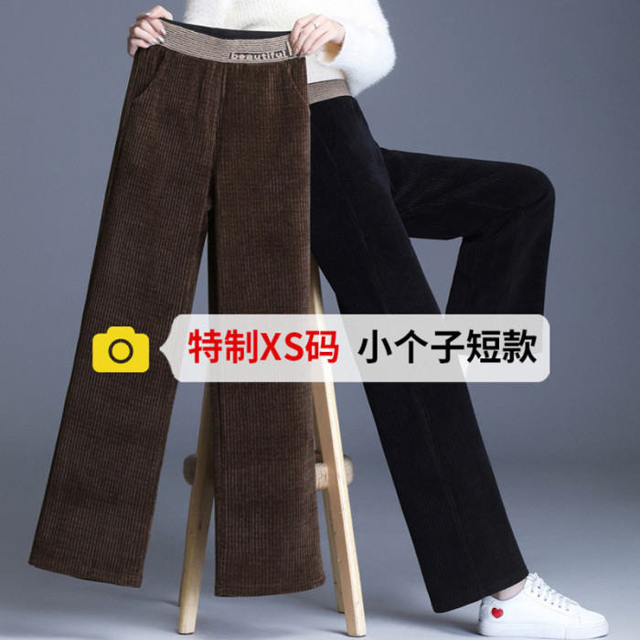 小個子150cm加絨雪尼爾濶腿褲女秋冬高腰垂感燈芯絨直筒休閒褲xs