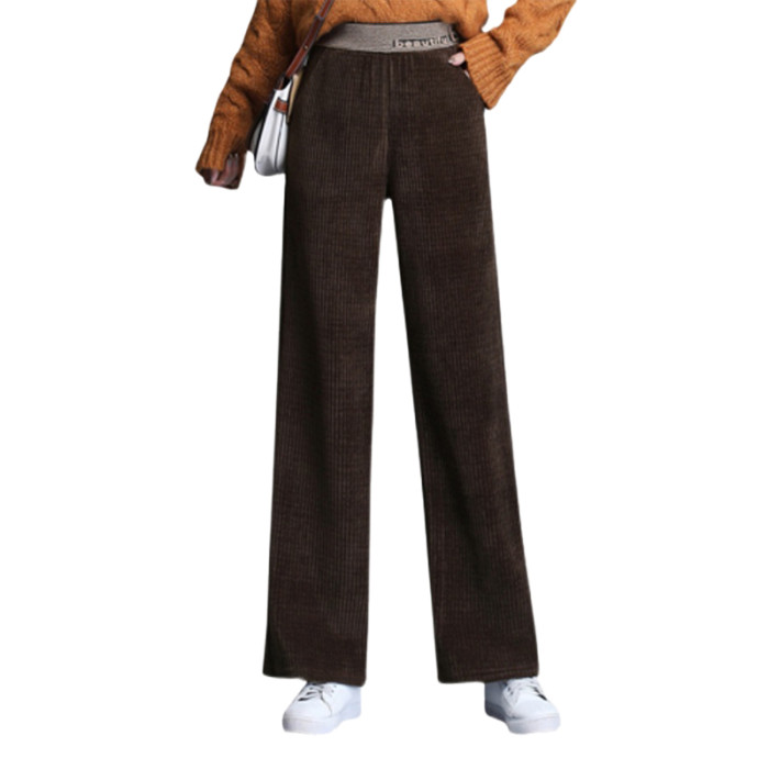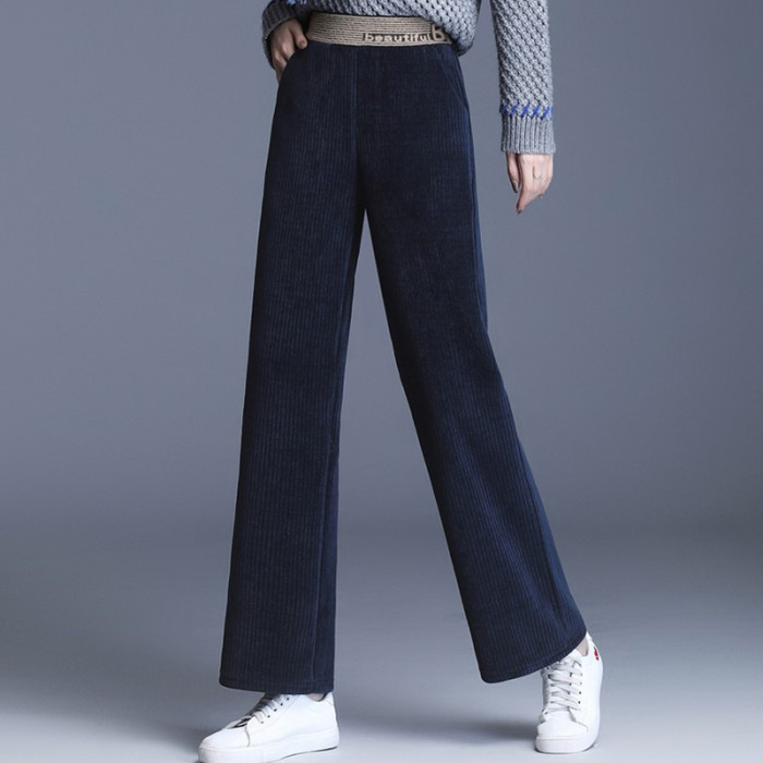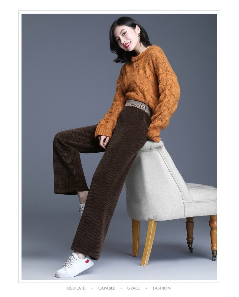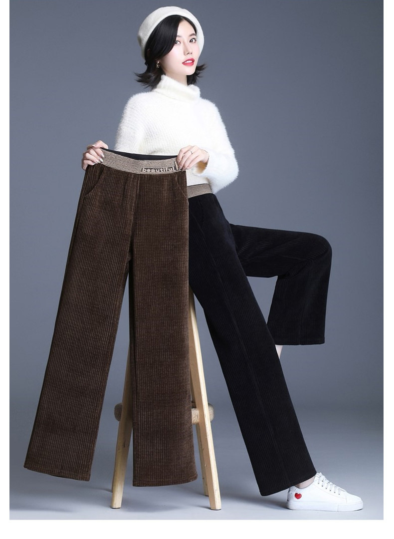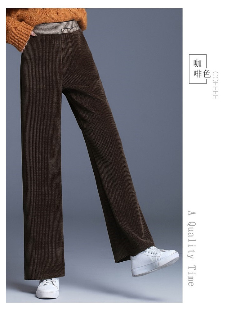 小個子150cm加絨雪尼爾濶腿褲女秋冬高腰垂感燈芯絨直筒休閒褲xs