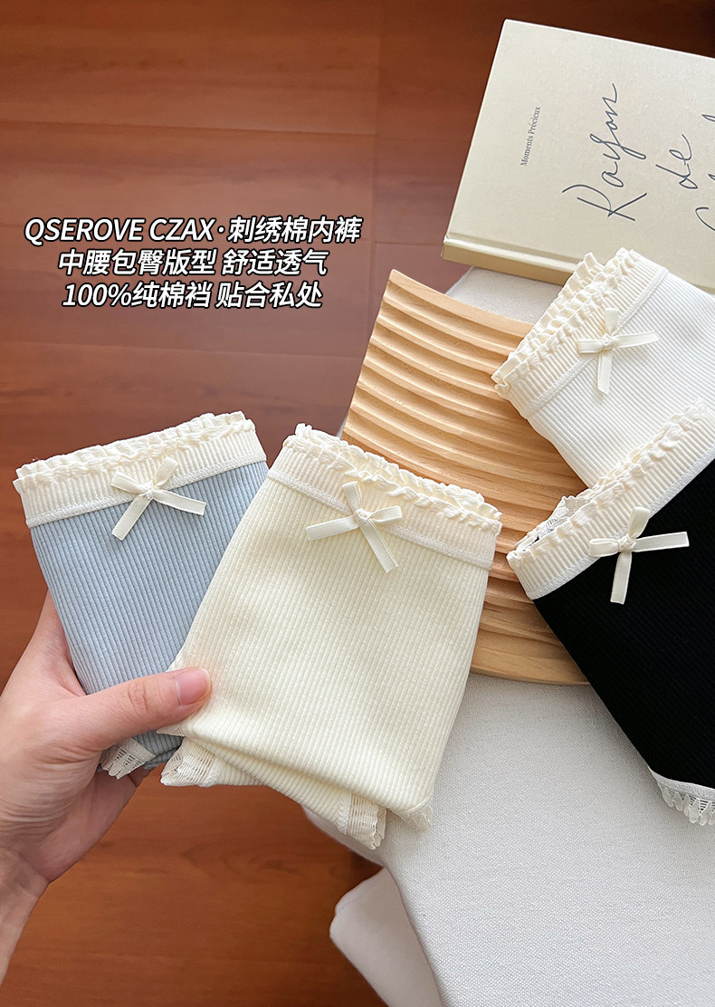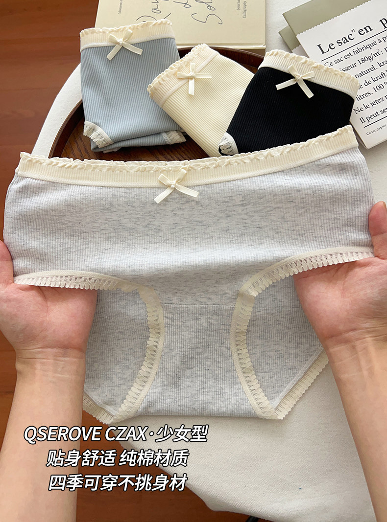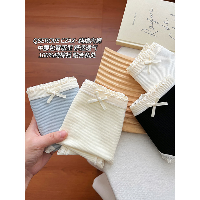 蝴蝶結內褲女生純棉全棉襠中腰包臀女士三角褲2025新款少女短褲頭