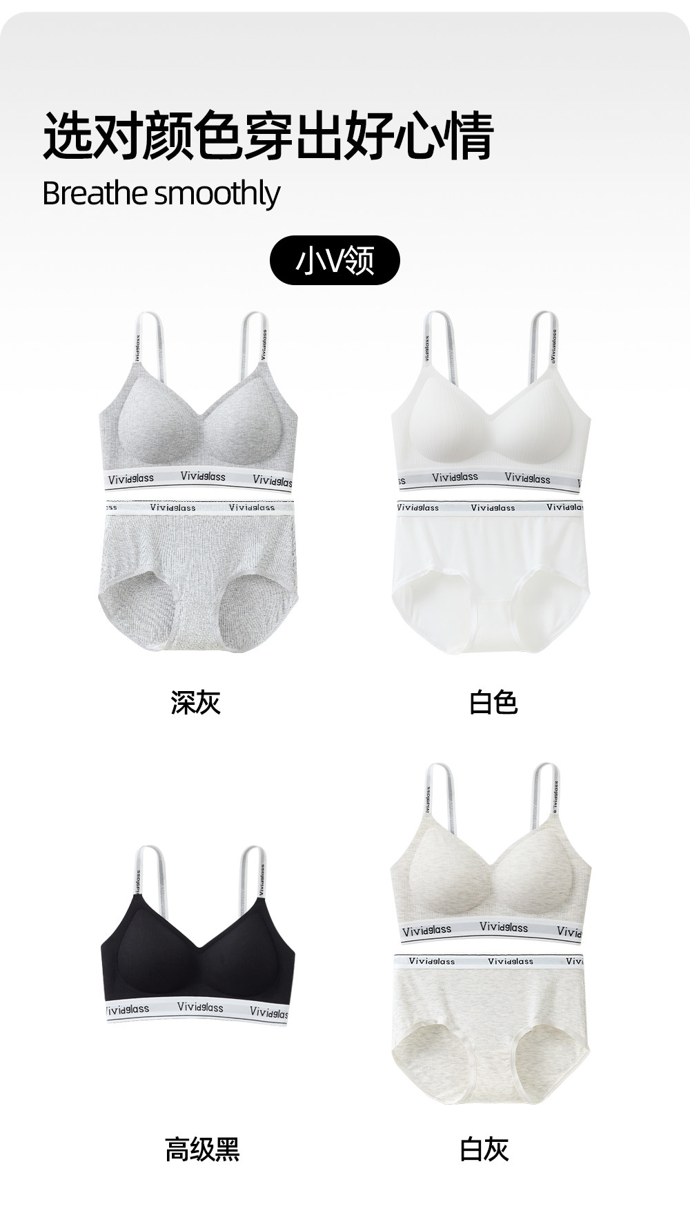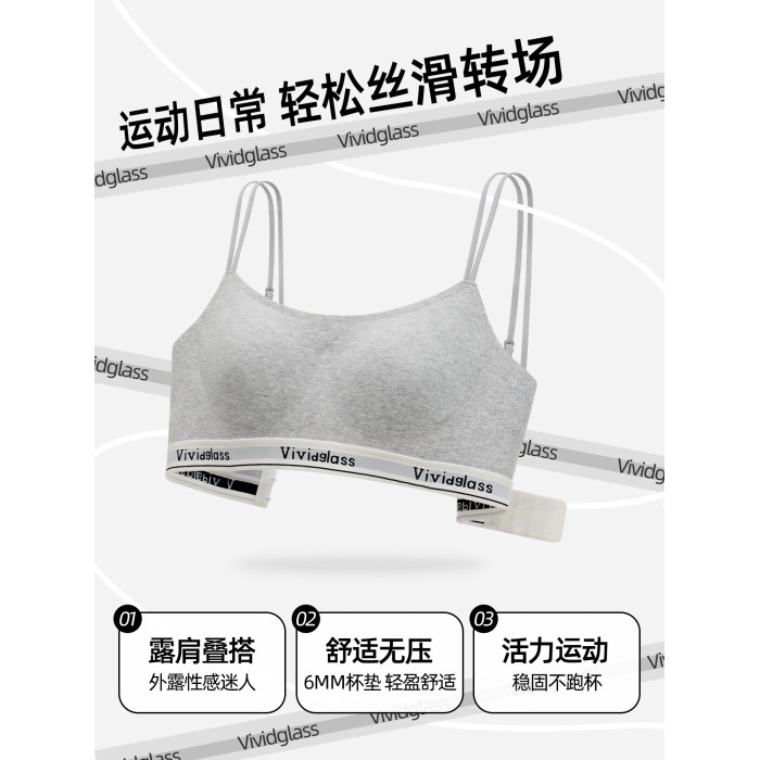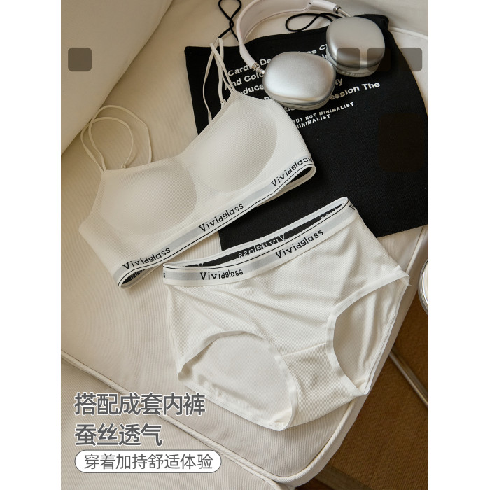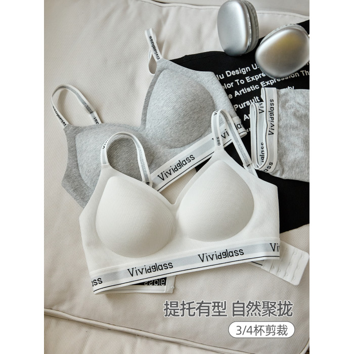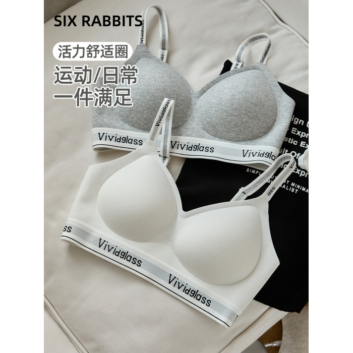六隻兔子抑菌運動內衣女小胸聚攏舒適透氣無壓細肩帶字母低領文胸
