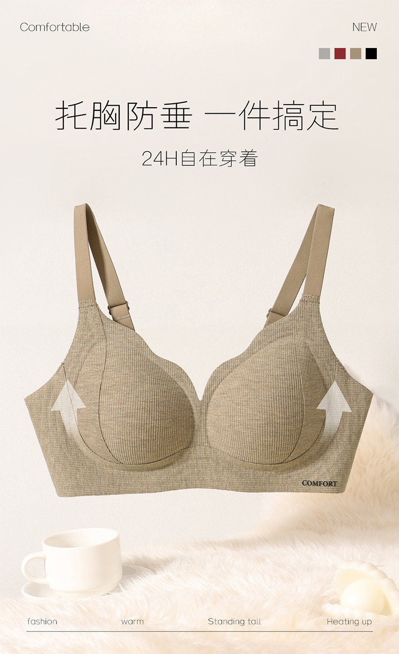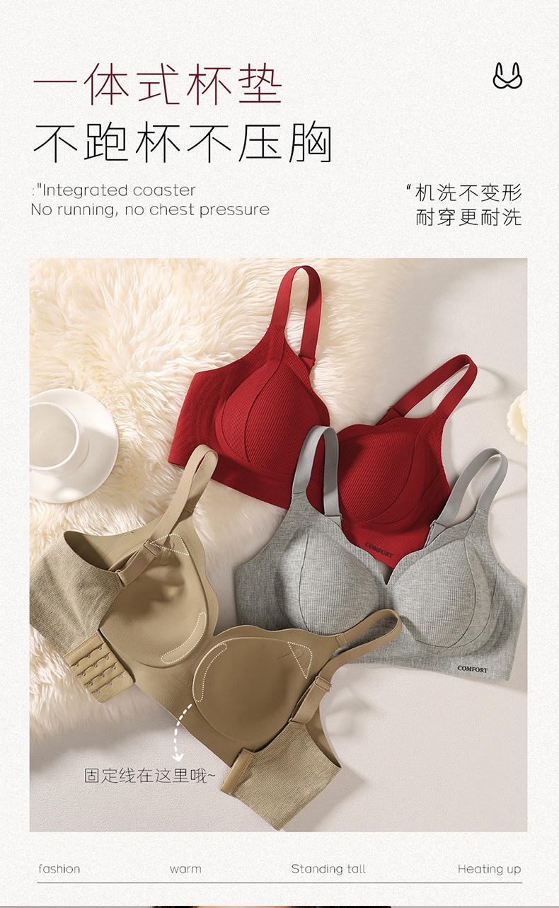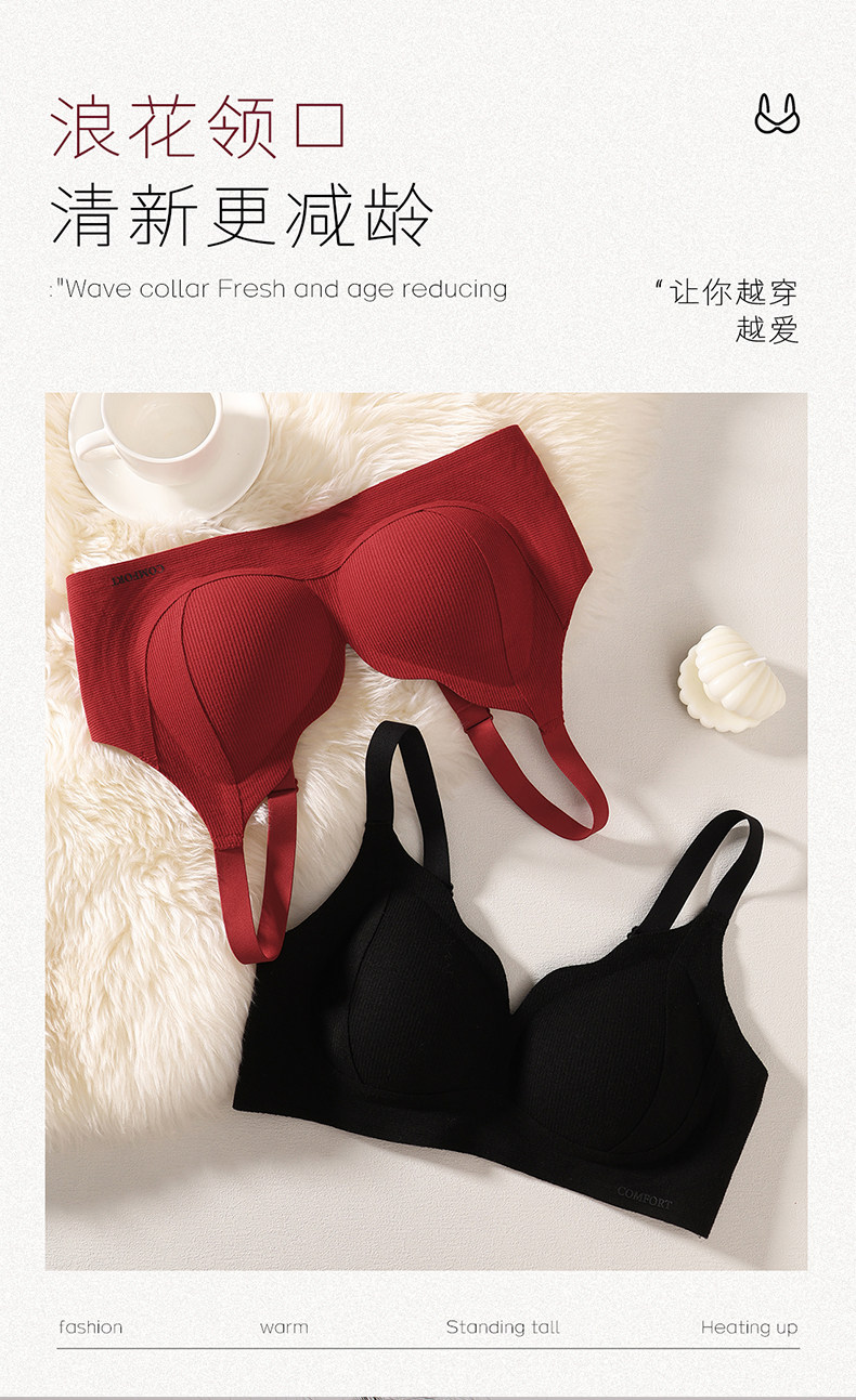 內衣女士小胸聚攏收副乳上托防下垂無鋼圈紅色本命年文胸罩秋冬季