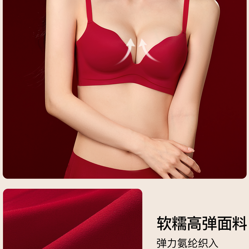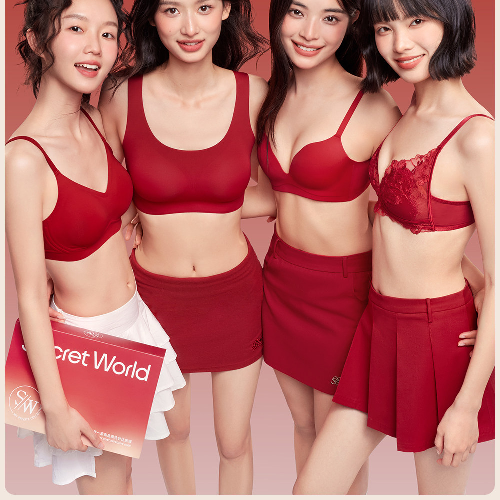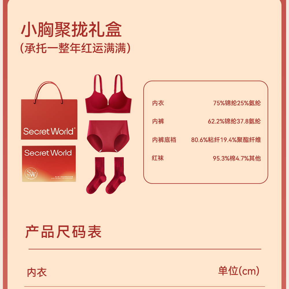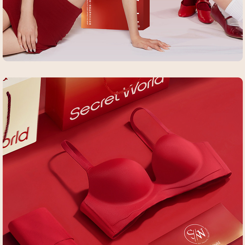 Secret World紅色內衣女小胸聚攏本命年結婚新娘內褲文胸禮盒套裝