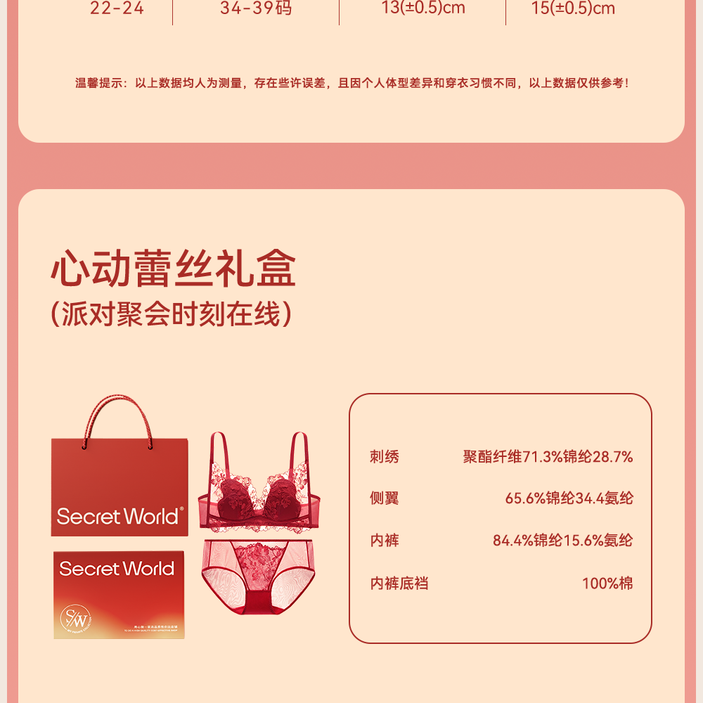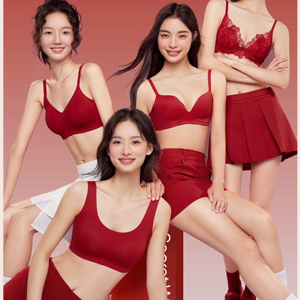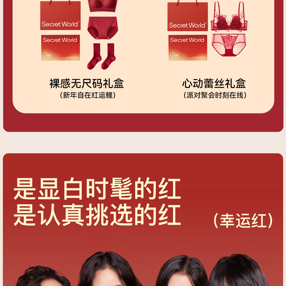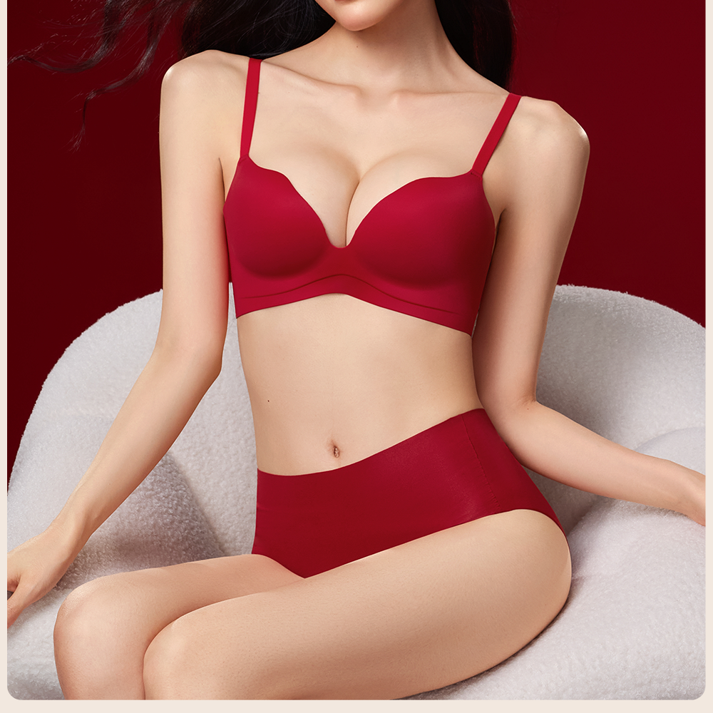 Secret World紅色內衣女小胸聚攏本命年結婚新娘內褲文胸禮盒套裝