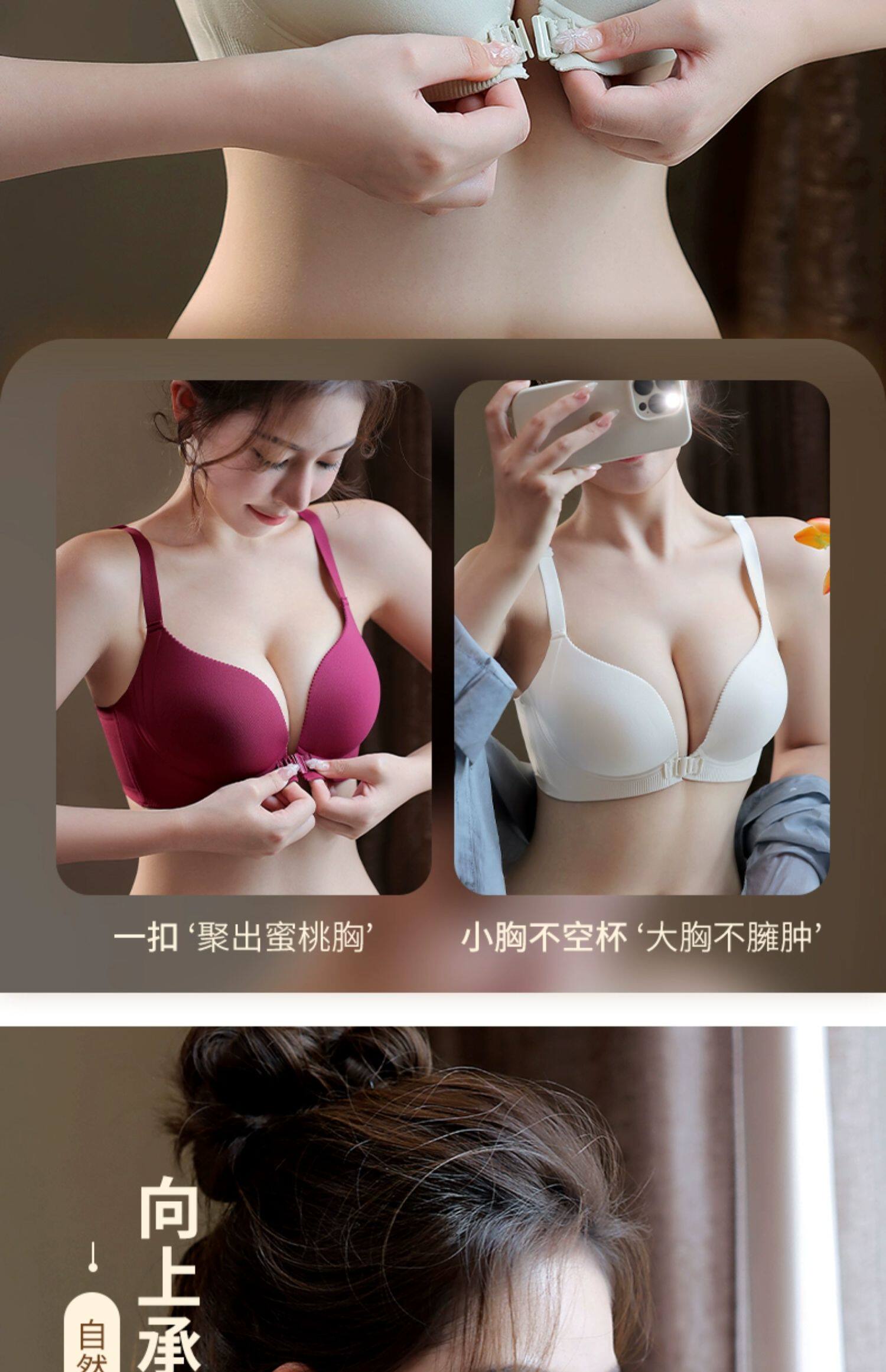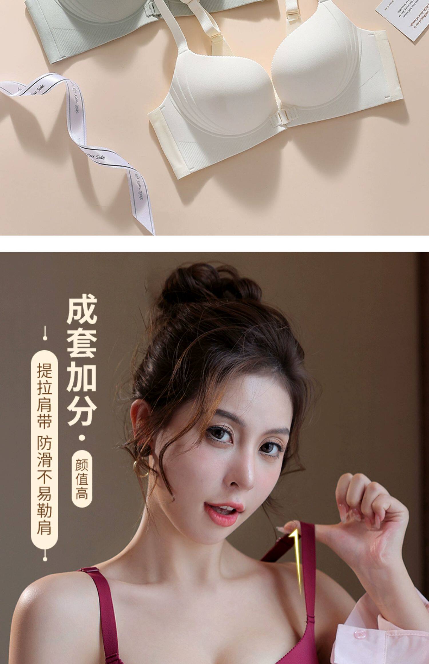 前釦內衣女小胸聚攏顯大2024新款收副乳防下垂無痕胸罩美背文胸