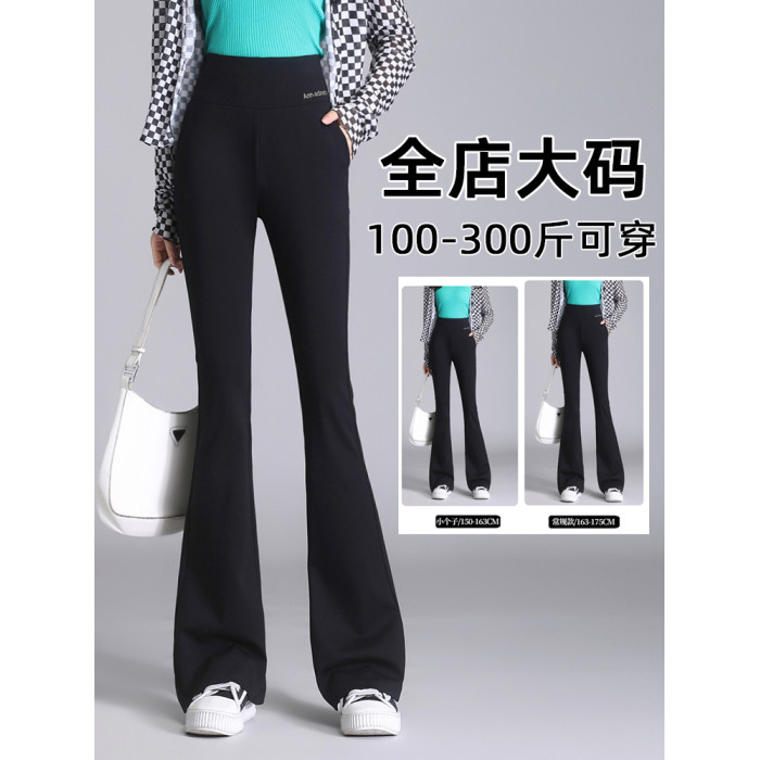 大碼喇叭褲200斤胖mm高腰女褲加肥加大彈力微喇褲春秋新款西裝褲