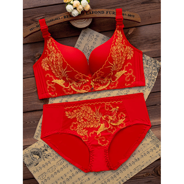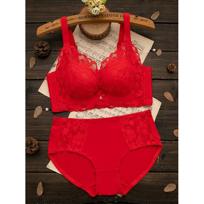 本命年紅色內衣套裝女聚攏無鋼圈小胸結婚新娘文胸罩2026馬年新款