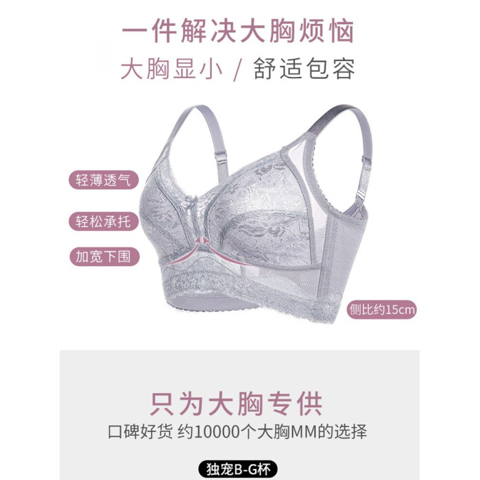 夏季薄款內衣女縮胸大胸顯小文胸大碼無鋼圈聚攏收副乳美背胸罩