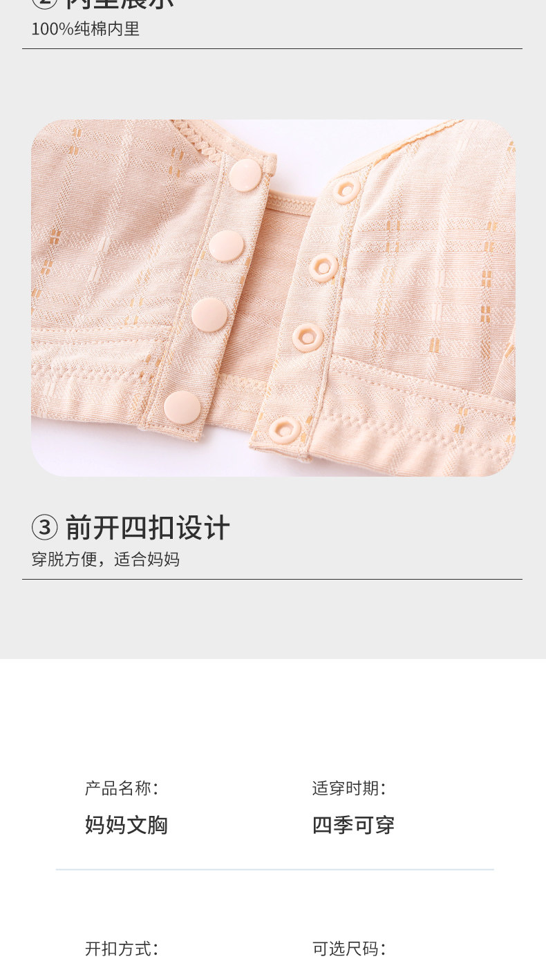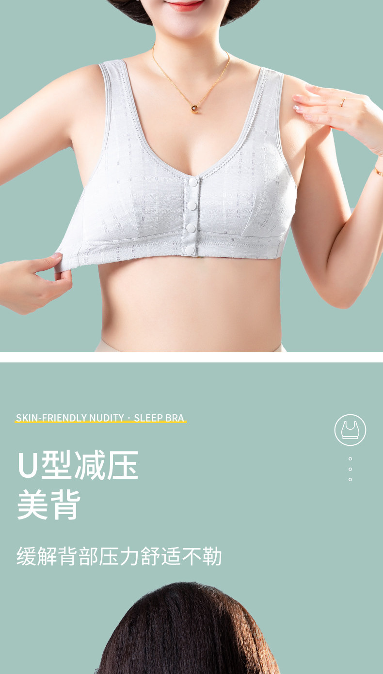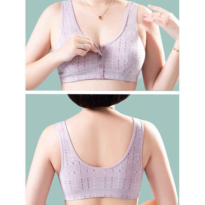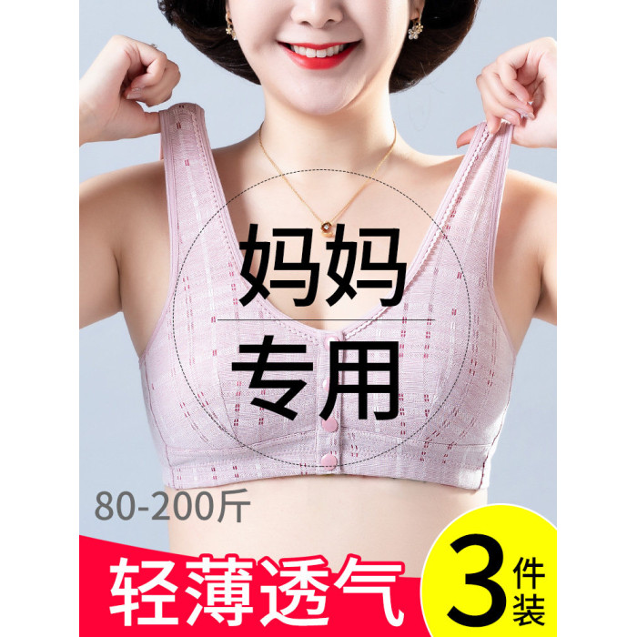 純棉媽媽內衣女大碼前釦文胸無鋼圈中老年人背心婦女薄款胸罩夏季
