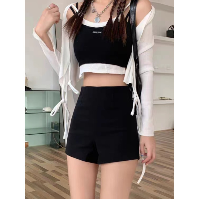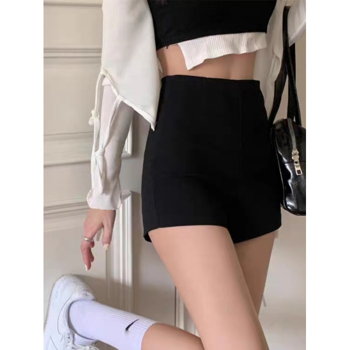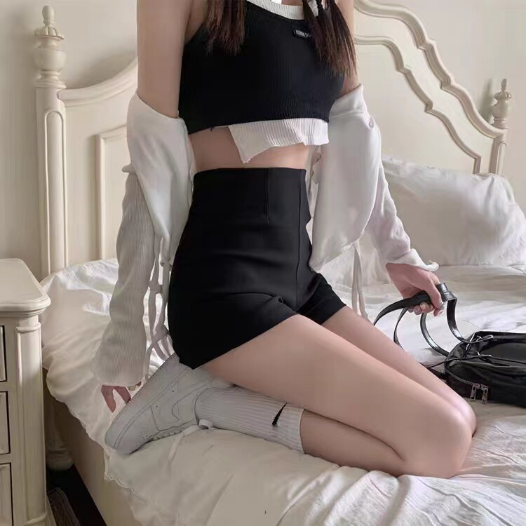 大碼胖妹妹黑色高腰休閒西裝短褲女秋冬a字顯瘦打底安全緊身熱褲