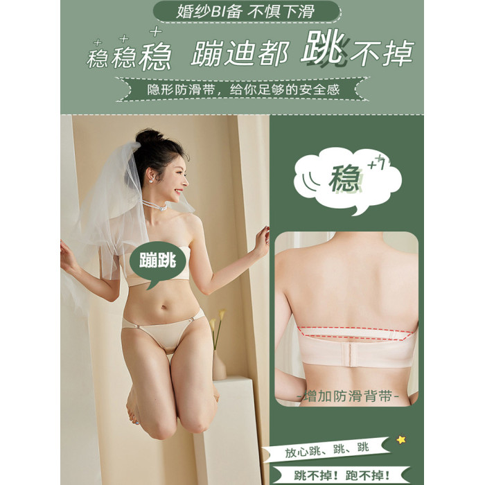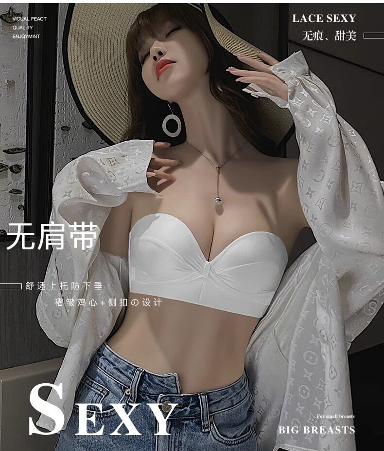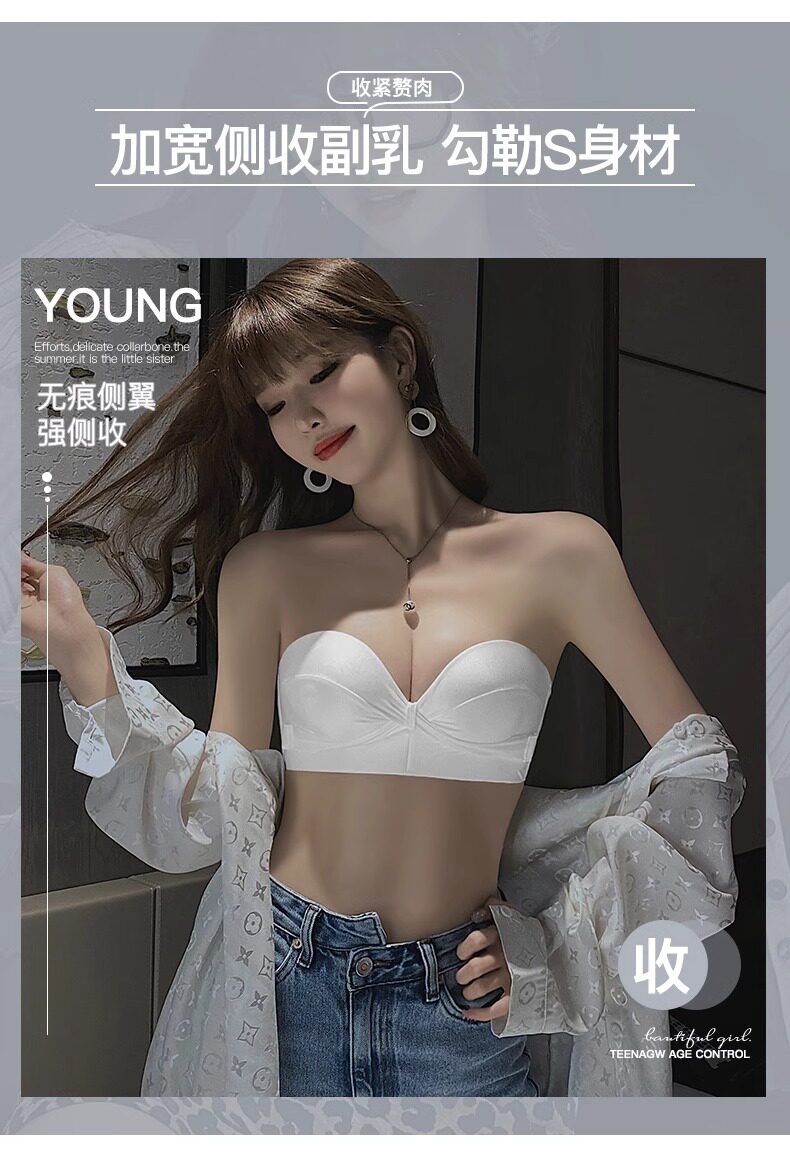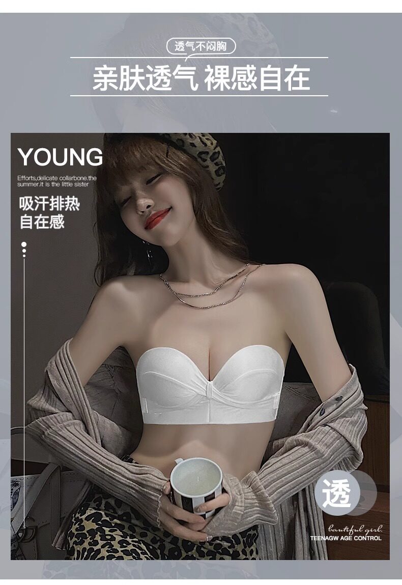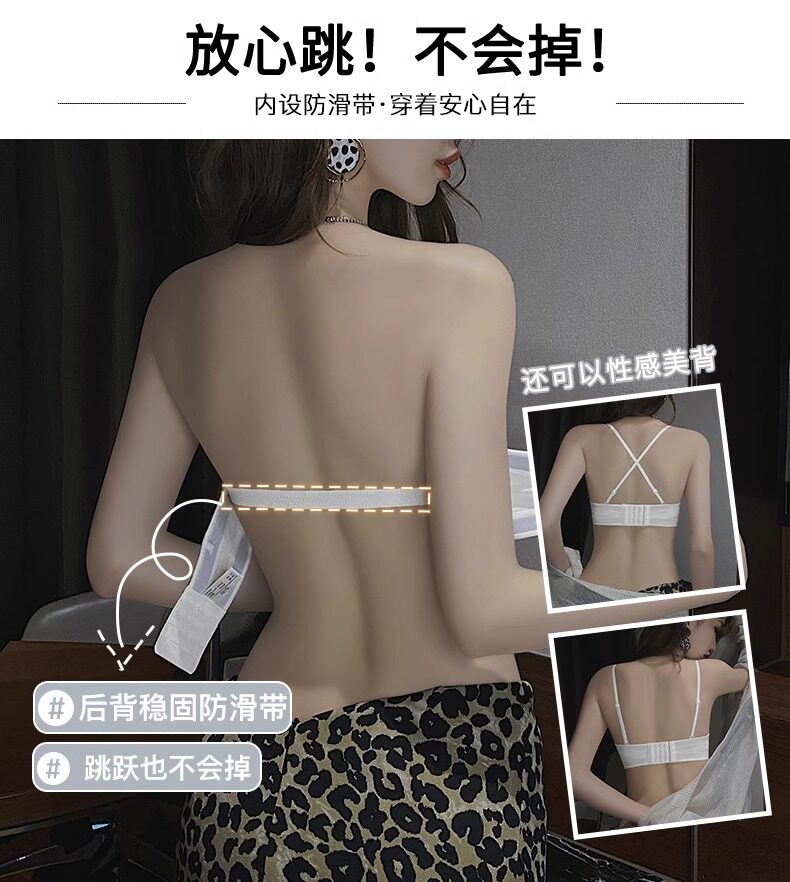無肩帶內衣女夏季薄款小胸顯大聚攏防滑上托隱形文胸貼抹胸式裹胸