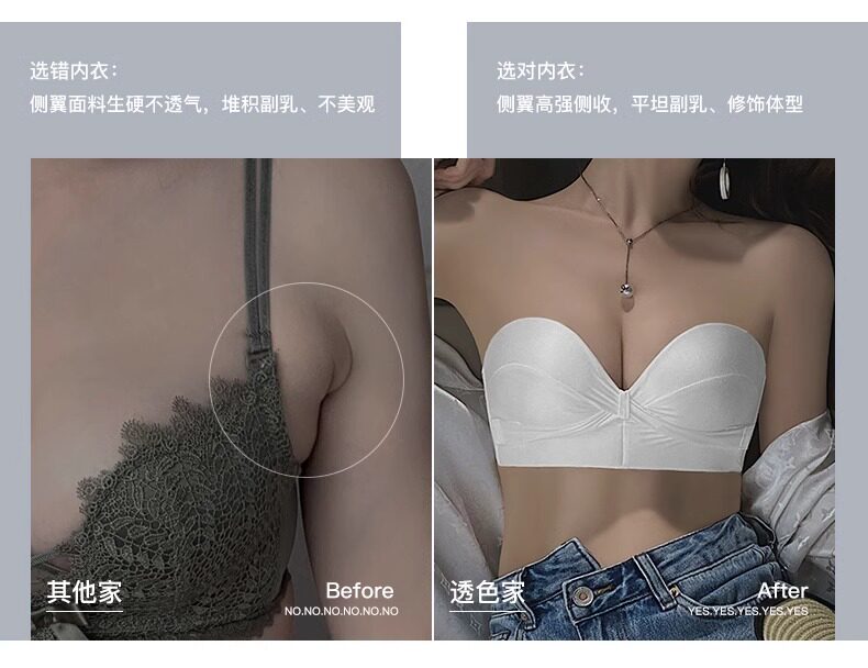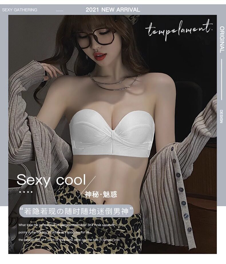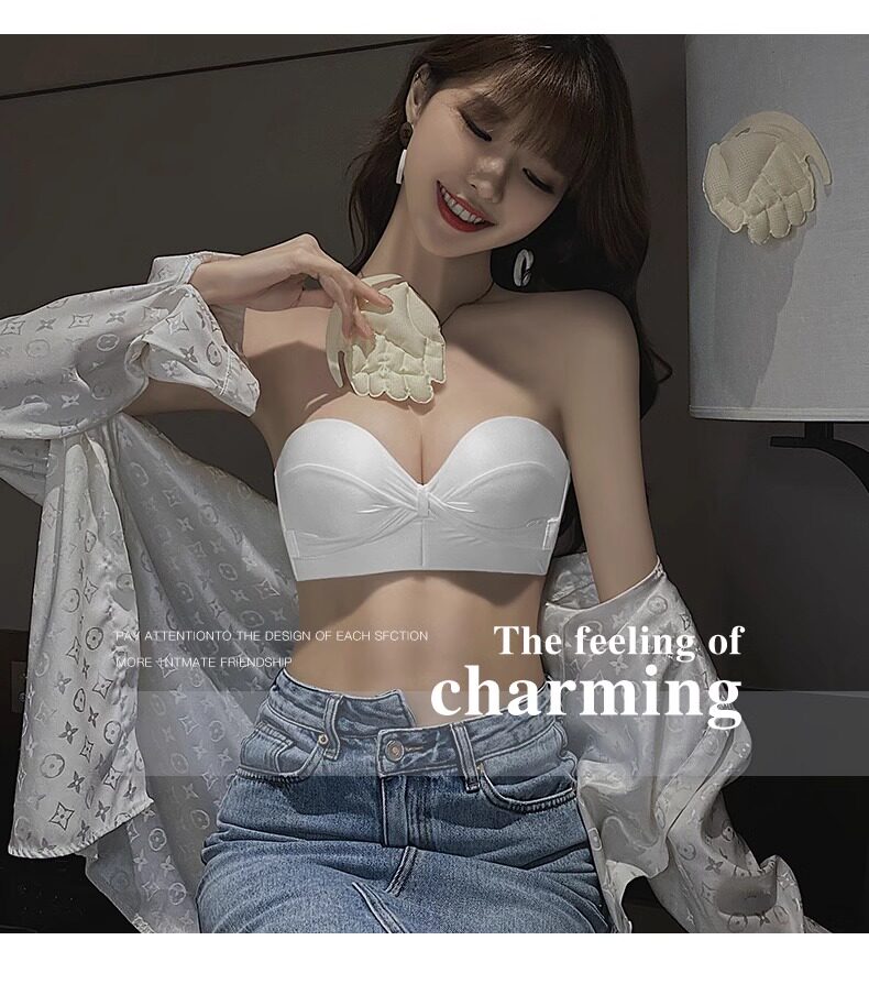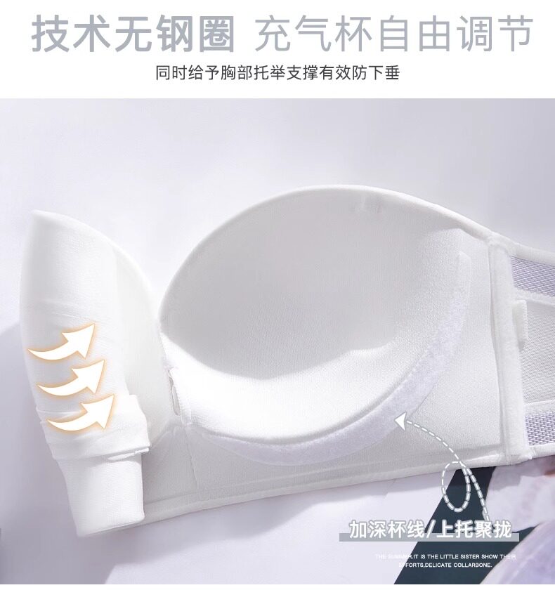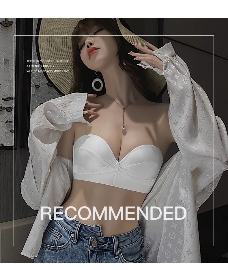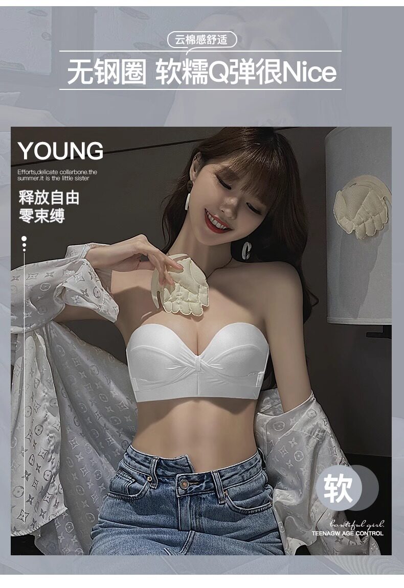 無肩帶內衣女夏季薄款小胸顯大聚攏防滑上托隱形文胸貼抹胸式裹胸