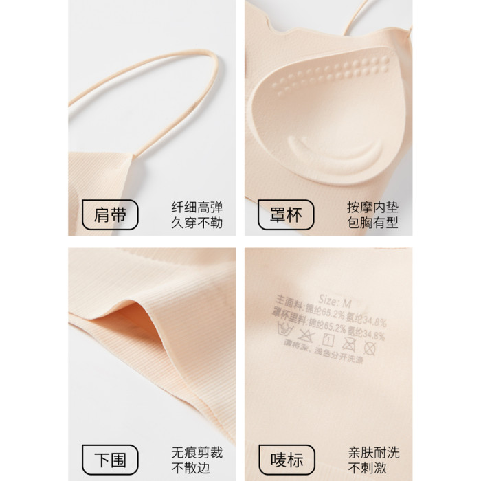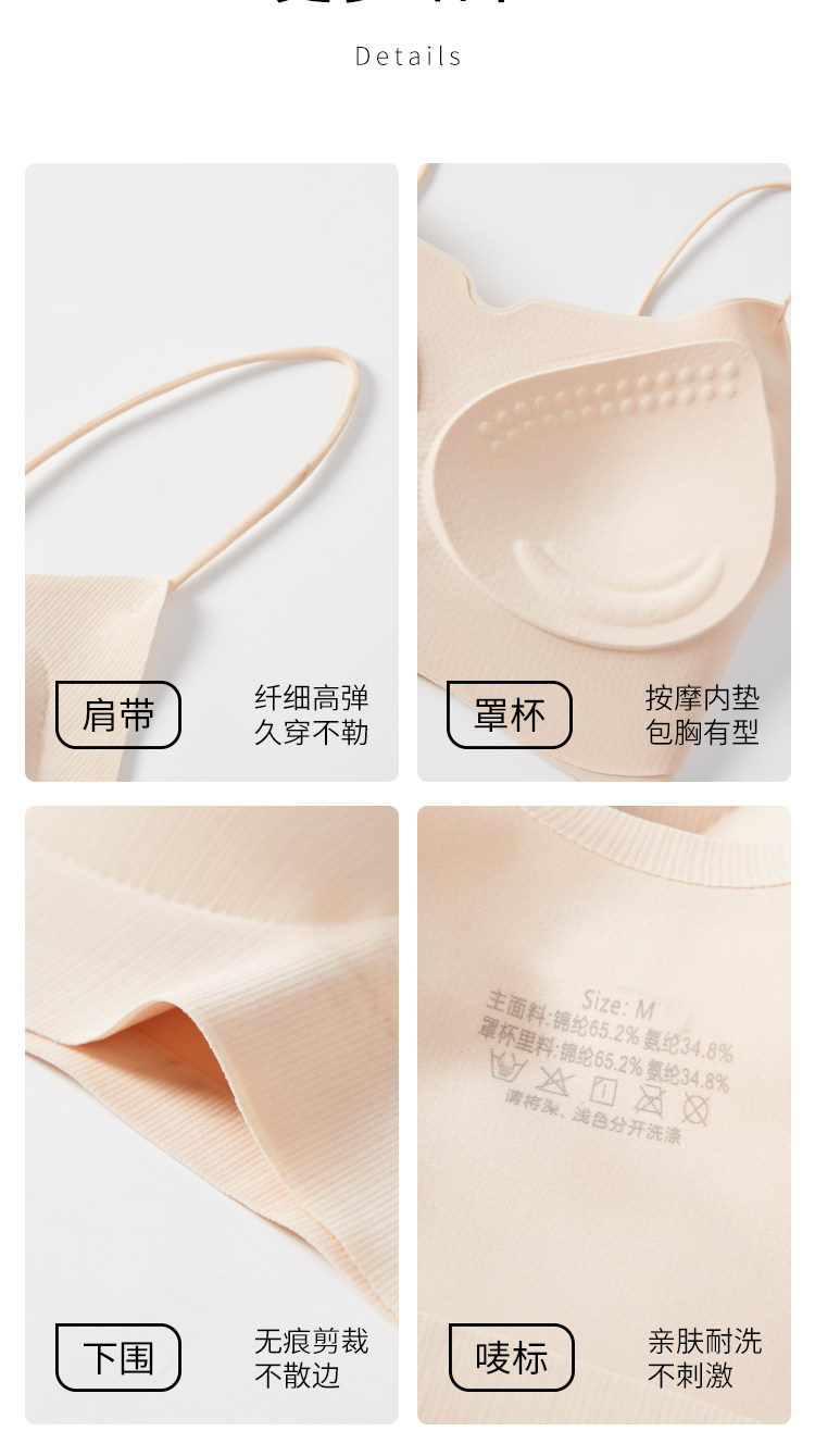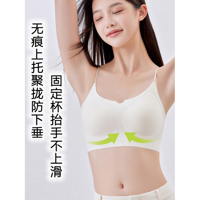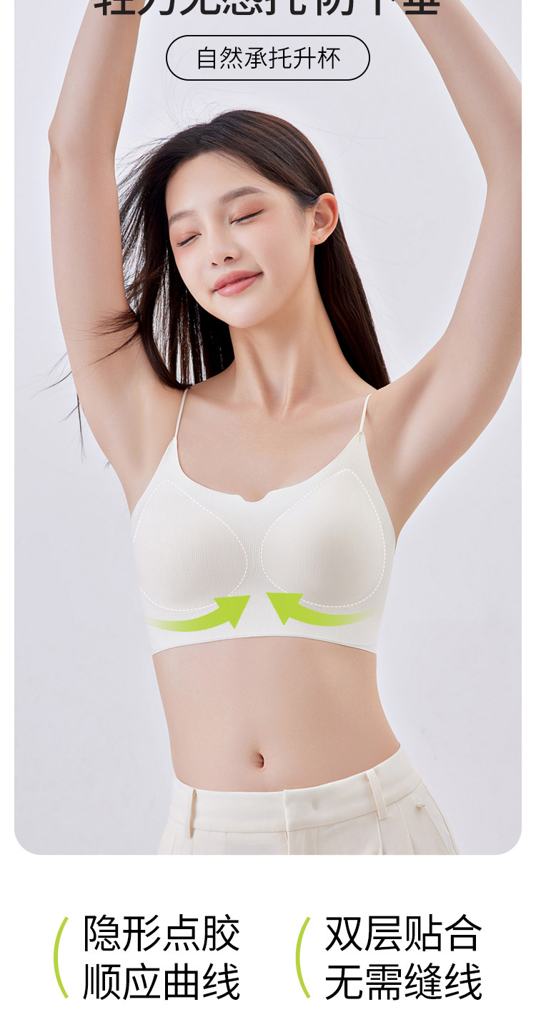 美背吊帶背心運動少女內衣無痕文胸學生初中高中生固定杯胸罩薄款