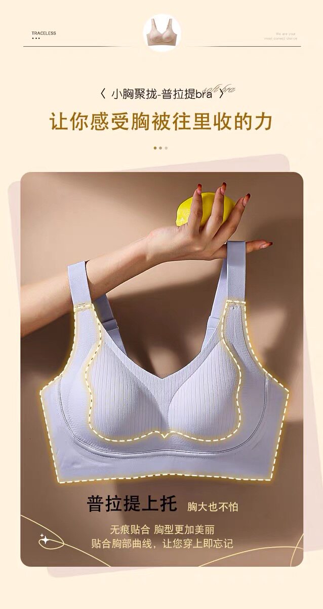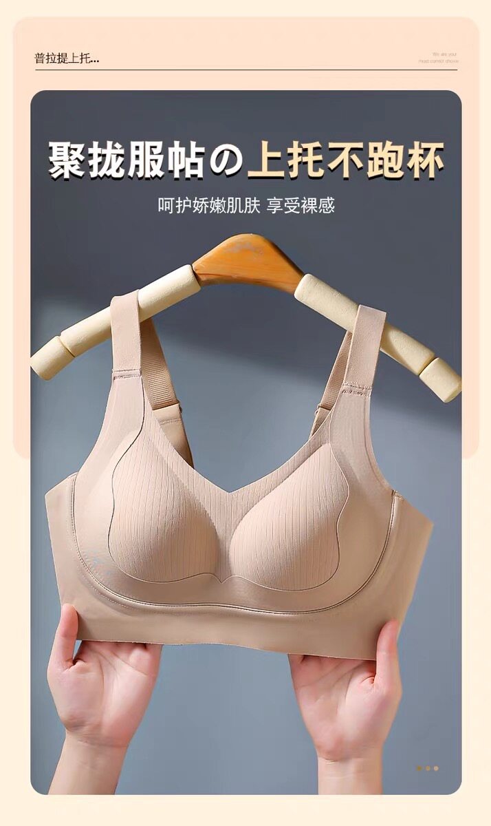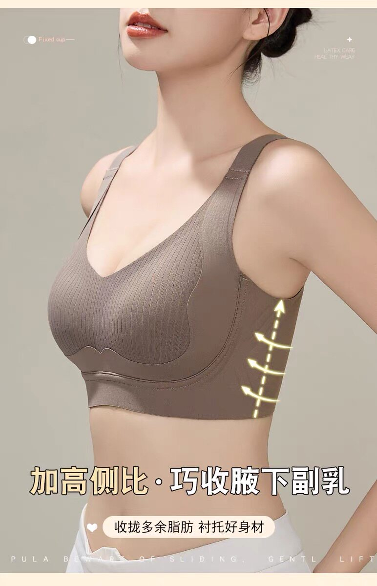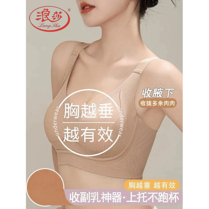 浪莎無痕乳膠內衣女聚攏小胸防下垂軟支撐提拉收副乳調整型文胸罩