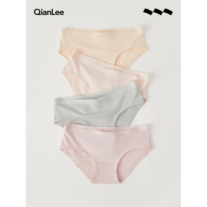 QianLee女士內褲女生純棉全棉襠抗菌透氣低腰三角底褲頭薄款短褲