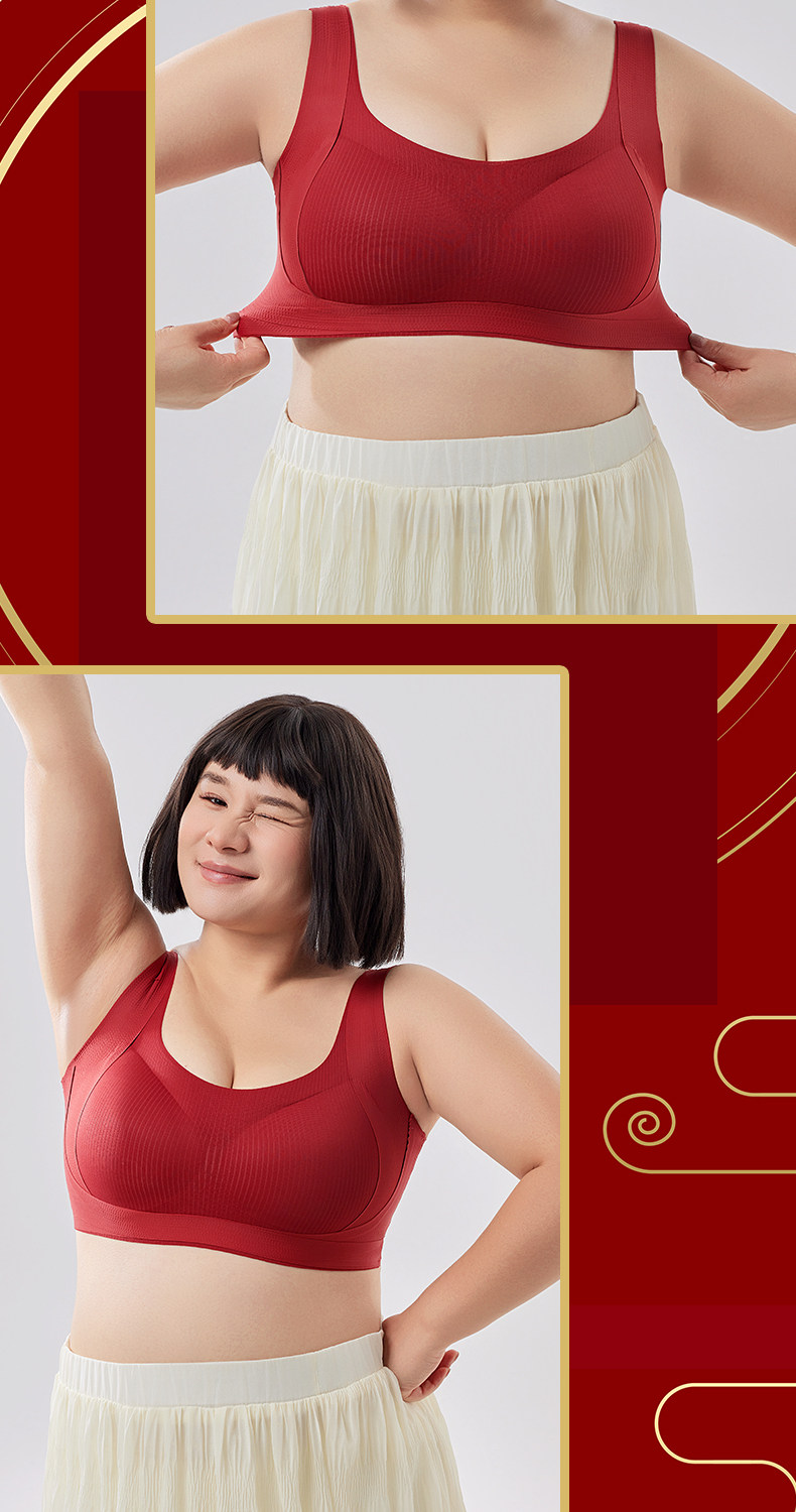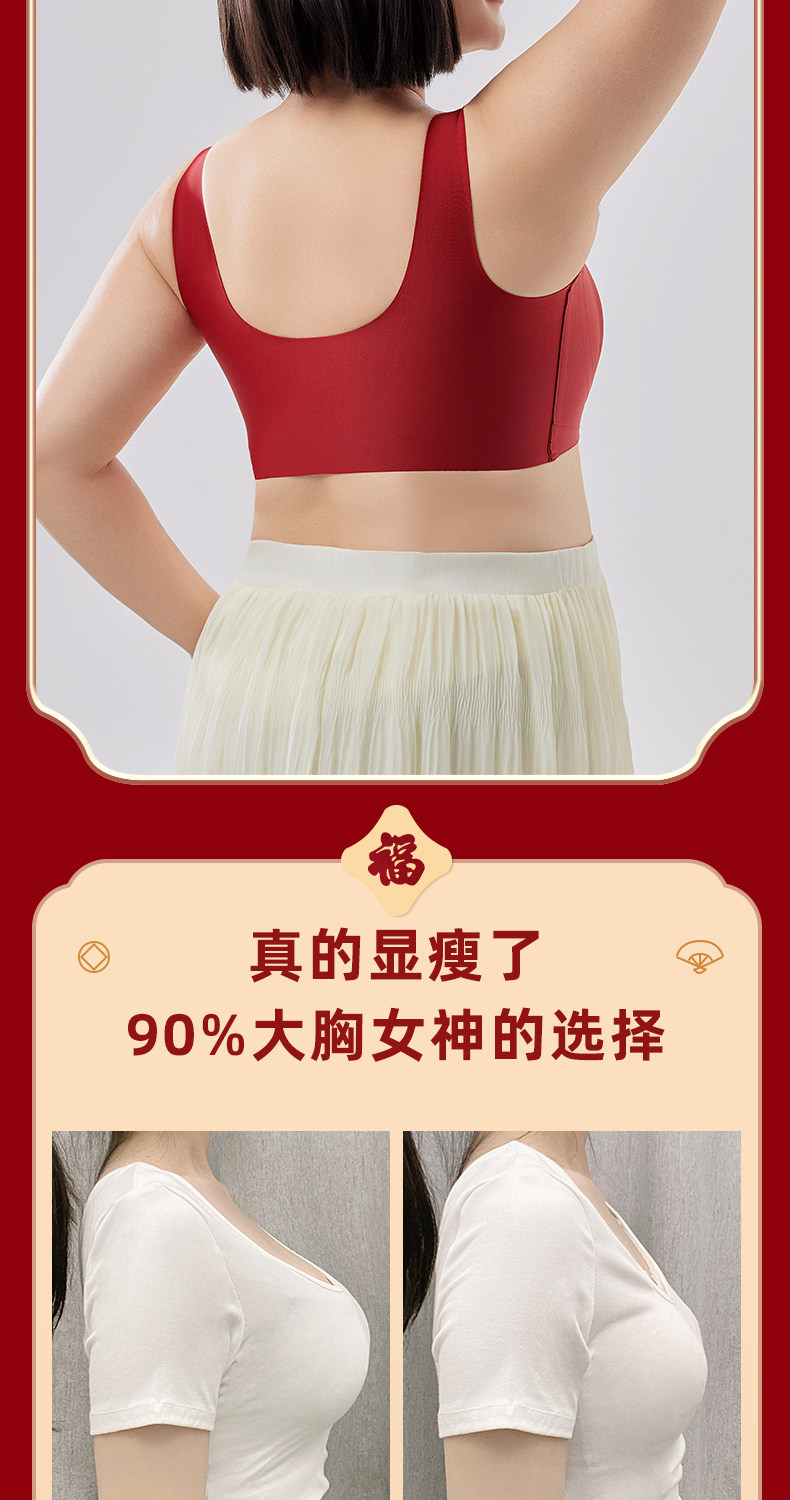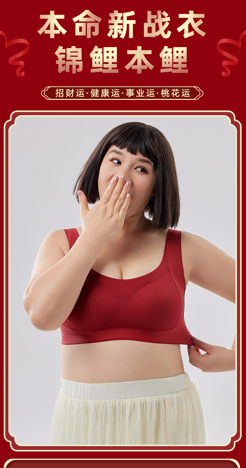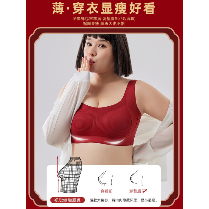 本命年大碼胖mm運動防震內衣女大胸顯小防下垂無排釦無鋼圈文胸罩