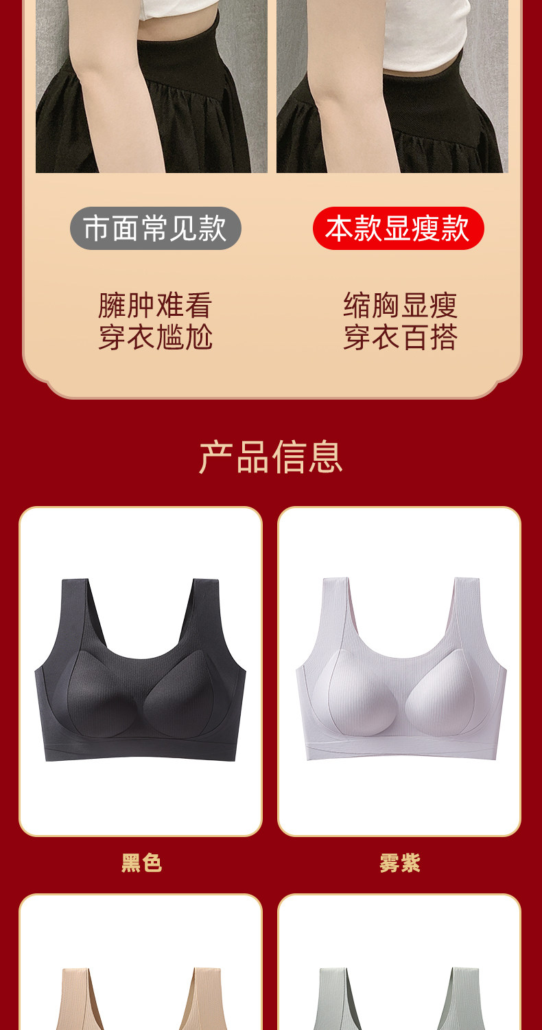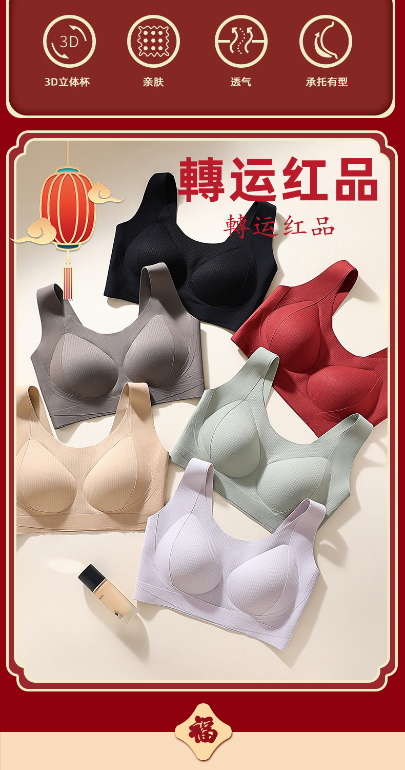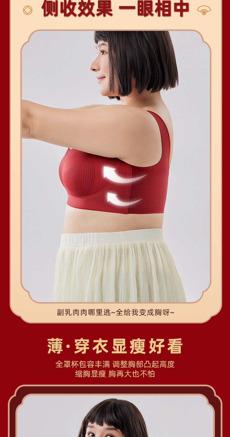 本命年大碼胖mm運動防震內衣女大胸顯小防下垂無排釦無鋼圈文胸罩