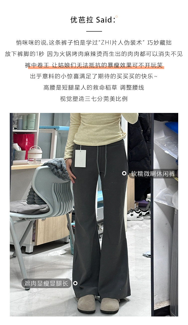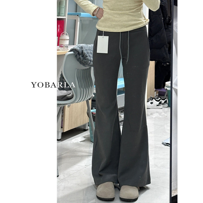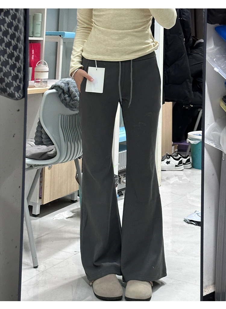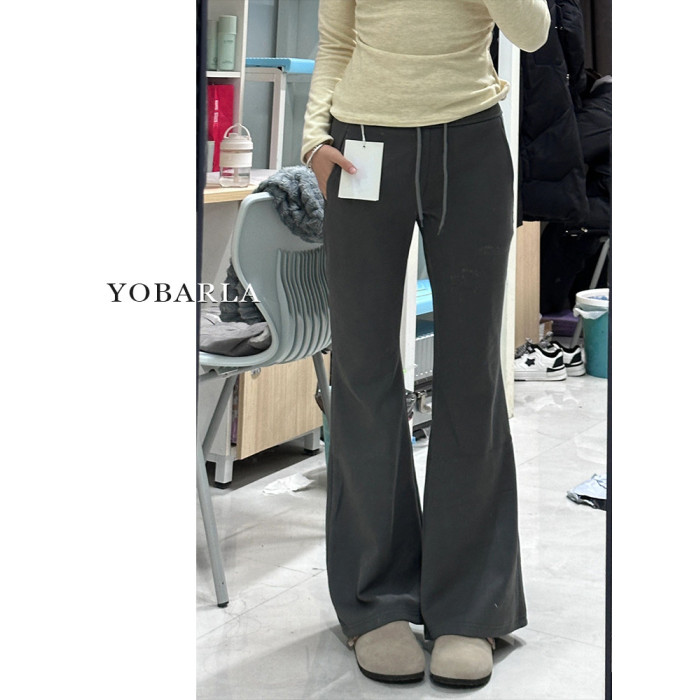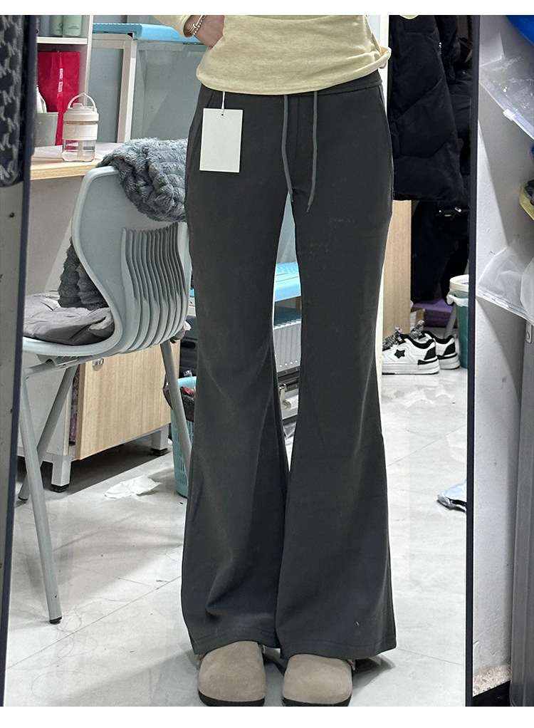 深灰色微喇休閒褲女冬季加絨大碼胖mm寬鬆顯瘦梨形身材運動衛褲子