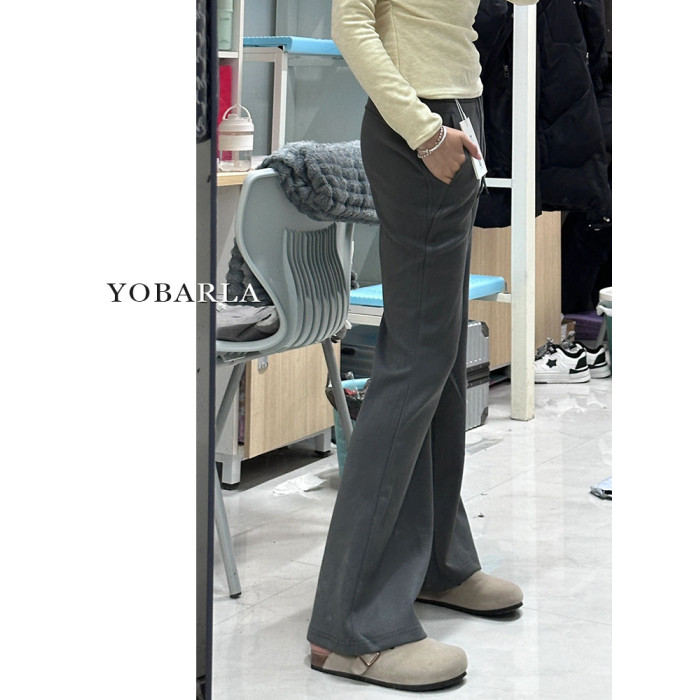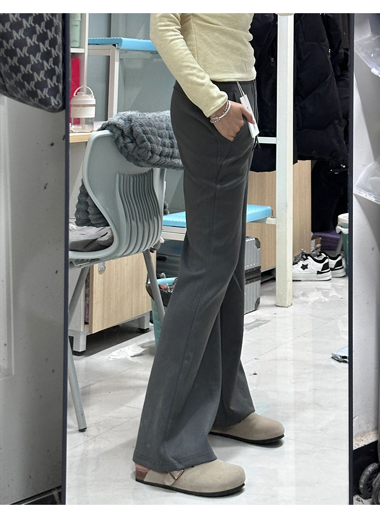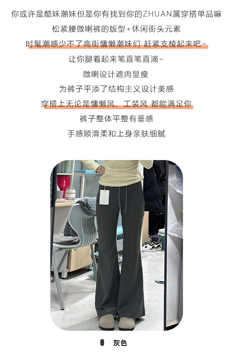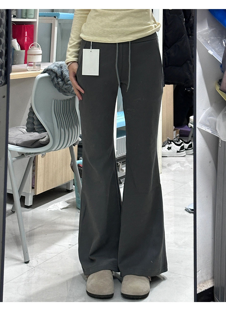 深灰色微喇休閒褲女冬季加絨大碼胖mm寬鬆顯瘦梨形身材運動衛褲子