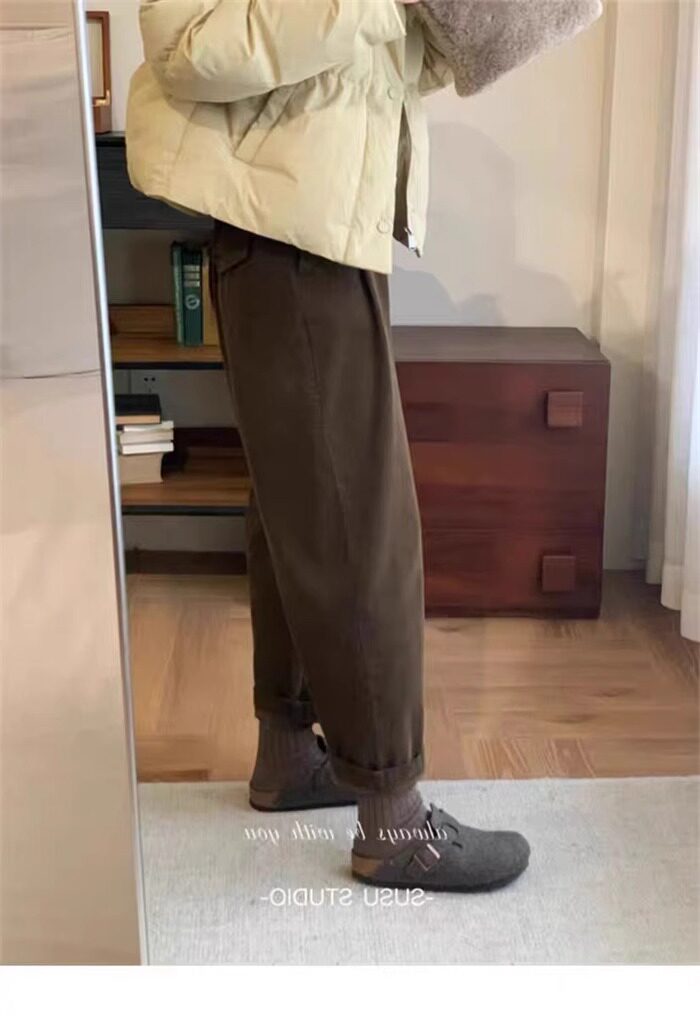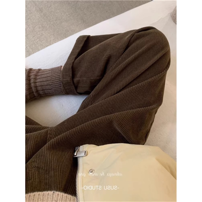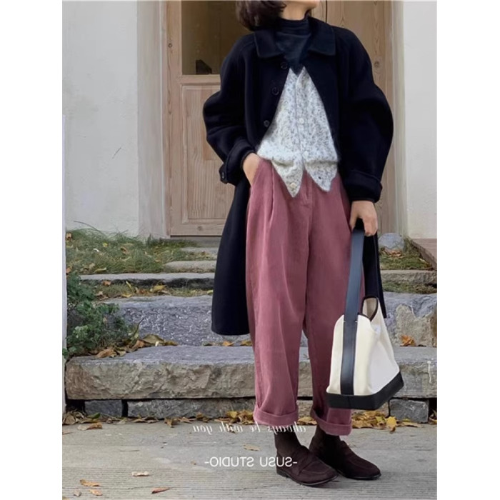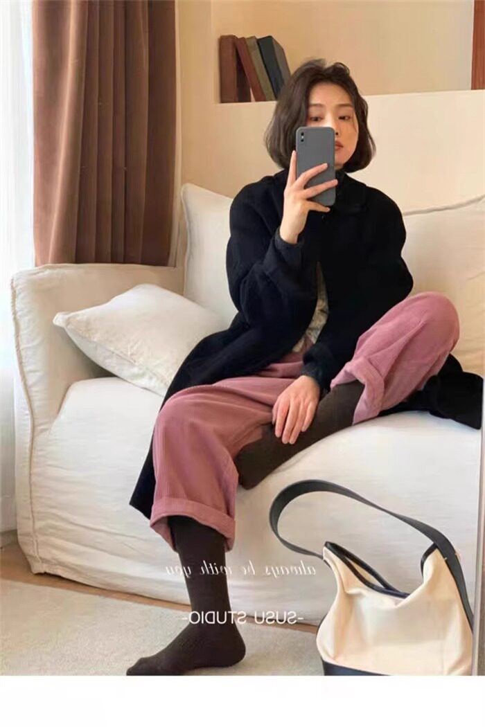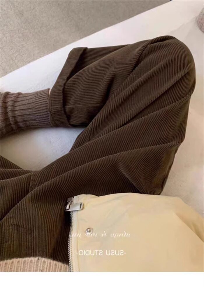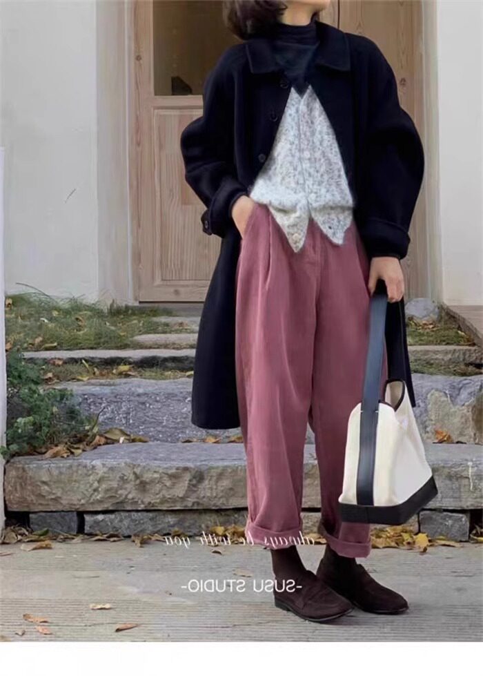 紫色燈芯絨褲子女秋冬胖MM大碼直筒寬鬆九分濶腿褲哈倫蘿蔔奶奶褲