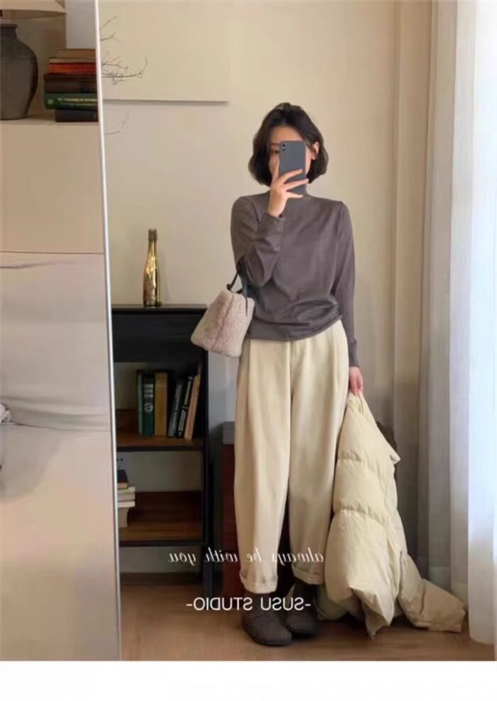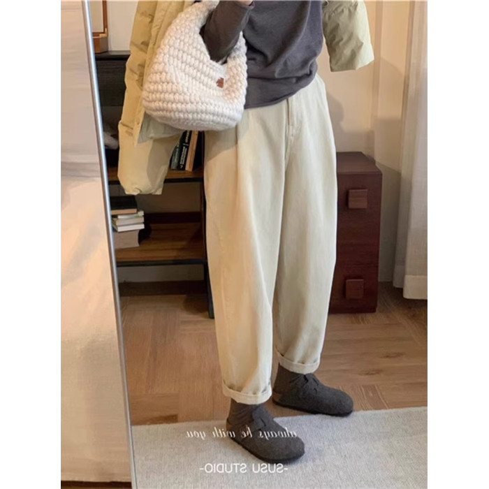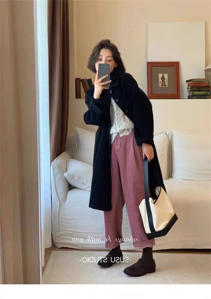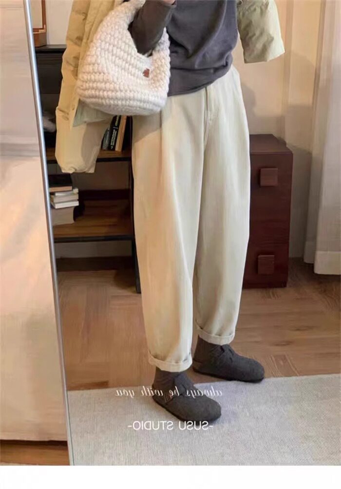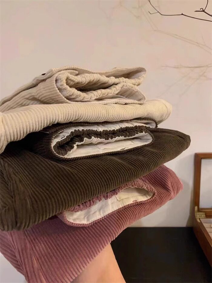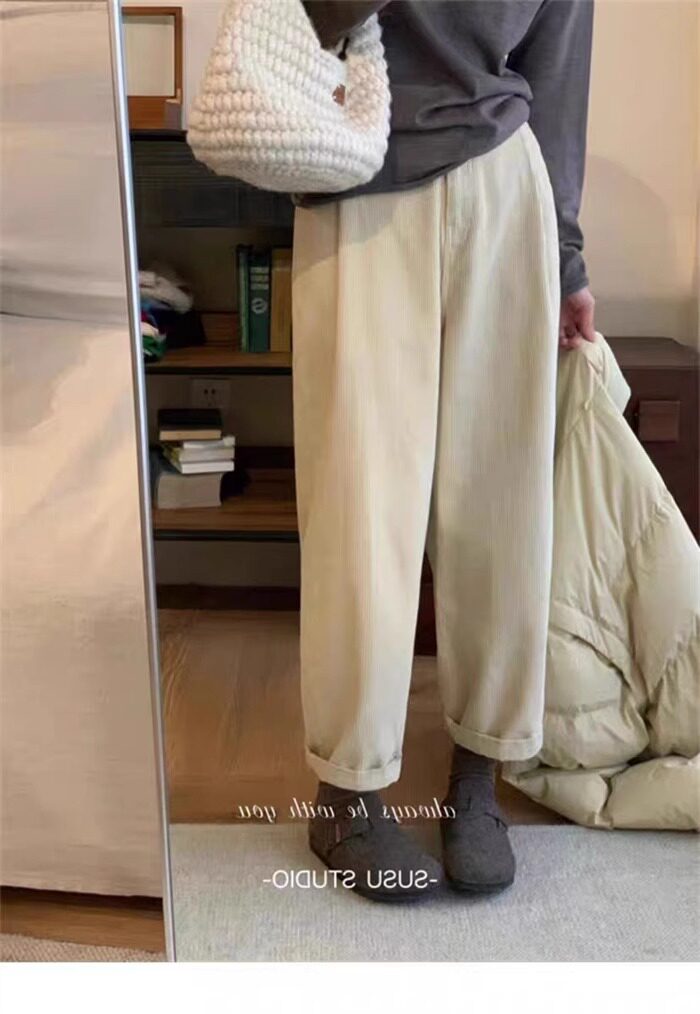 紫色燈芯絨褲子女秋冬胖MM大碼直筒寬鬆九分濶腿褲哈倫蘿蔔奶奶褲