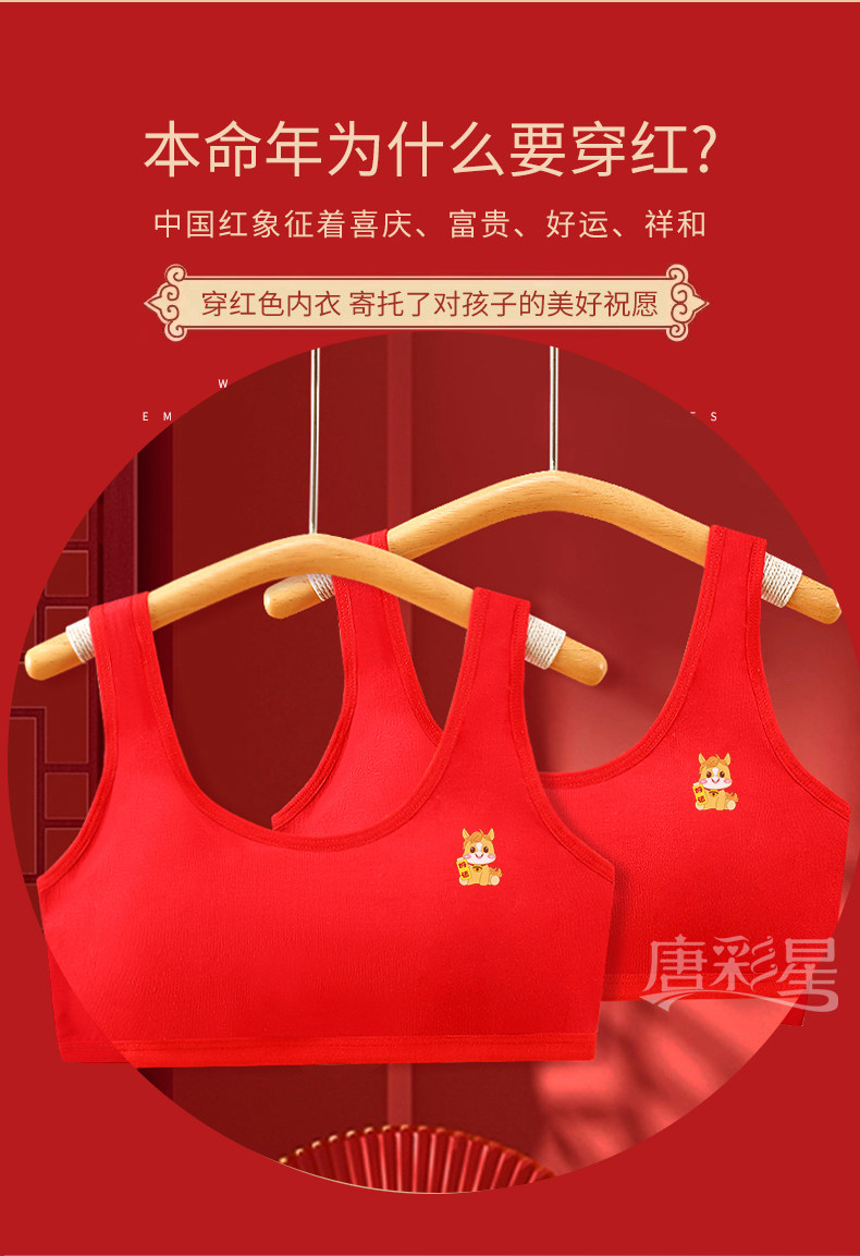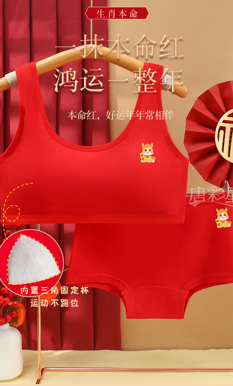 少女發育期內衣女初中學生大童二三階段固定杯本命年大紅內衣套裝