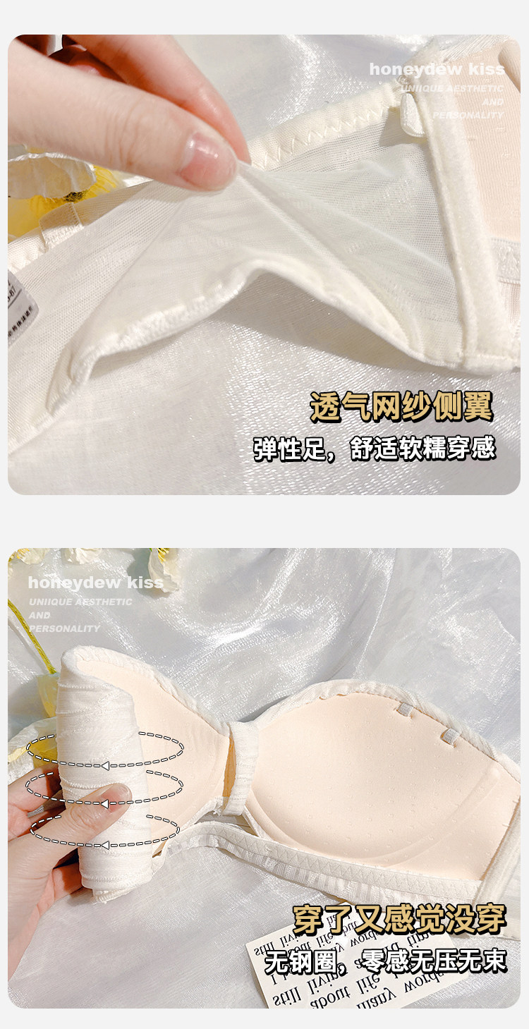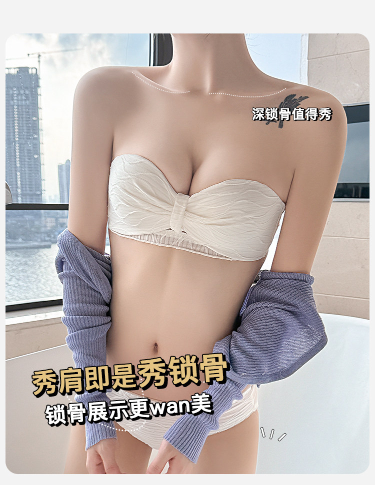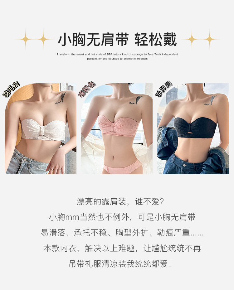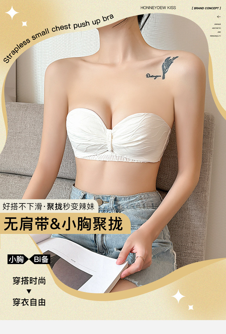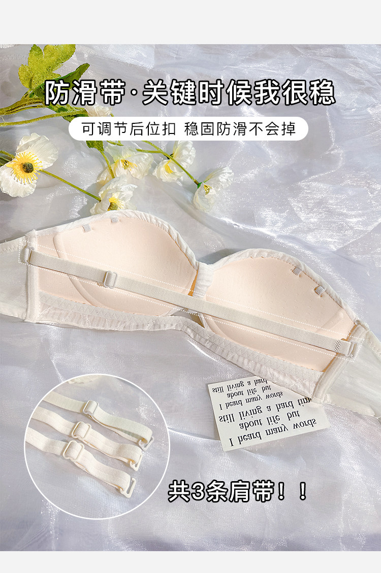 定海神針~不掉!無肩帶內衣女小胸聚攏防滑抹胸無鋼圈半杯文胸罩