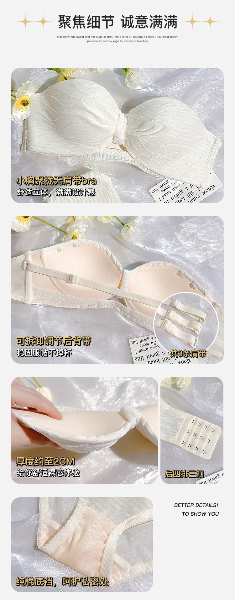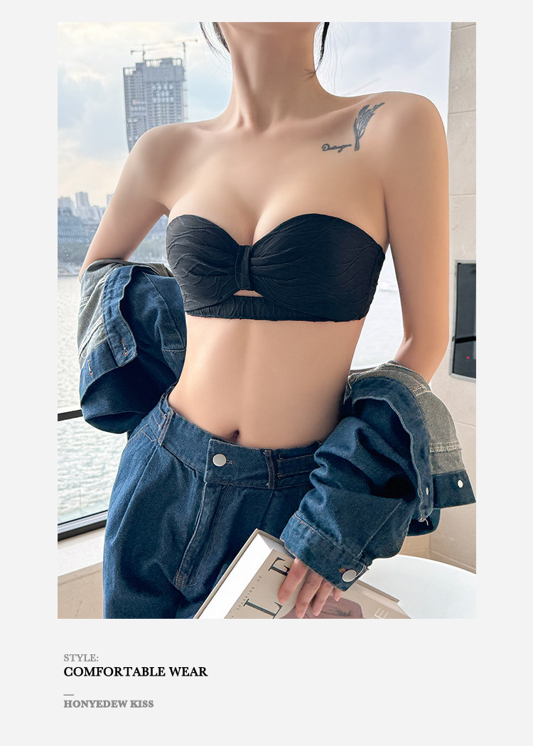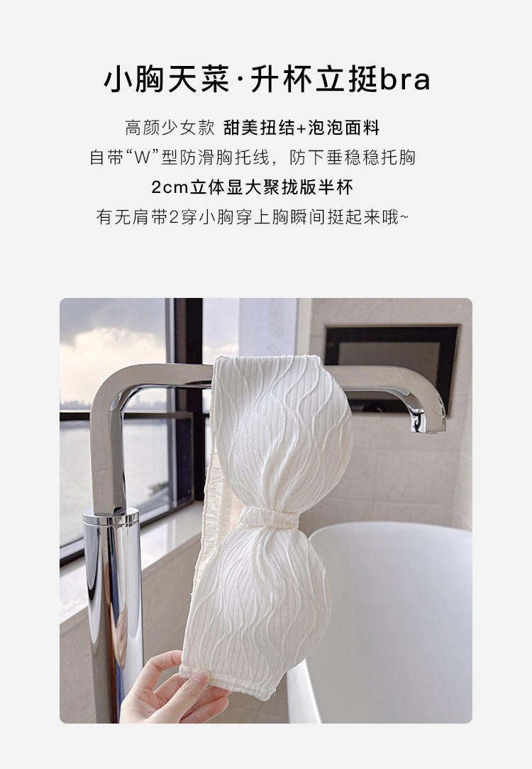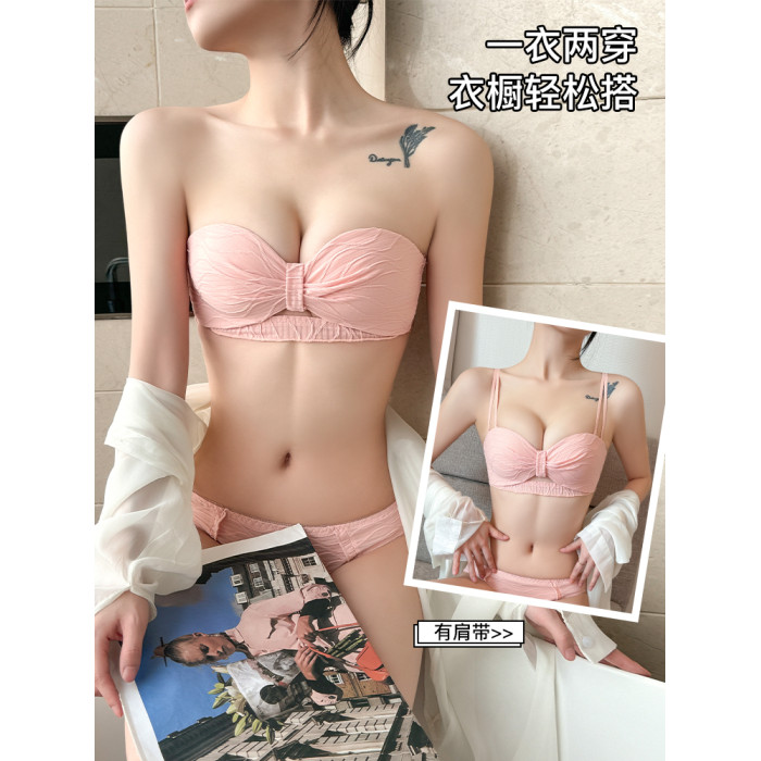 定海神針~不掉!無肩帶內衣女小胸聚攏防滑抹胸無鋼圈半杯文胸罩