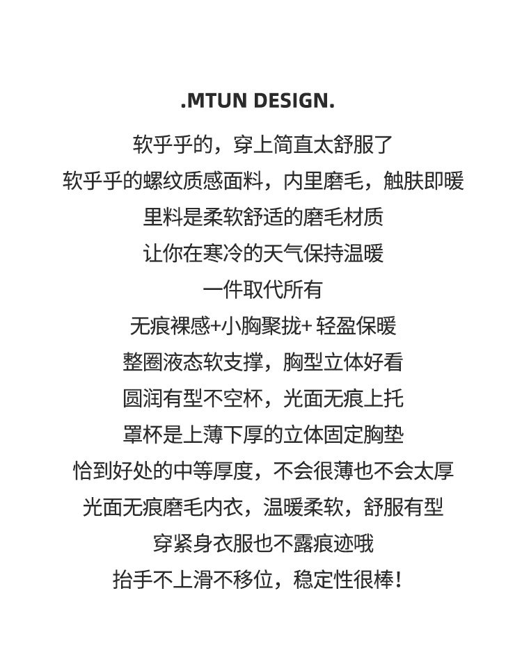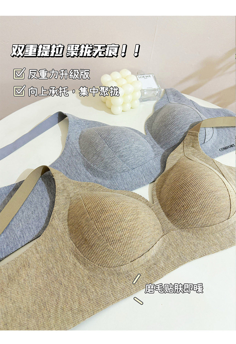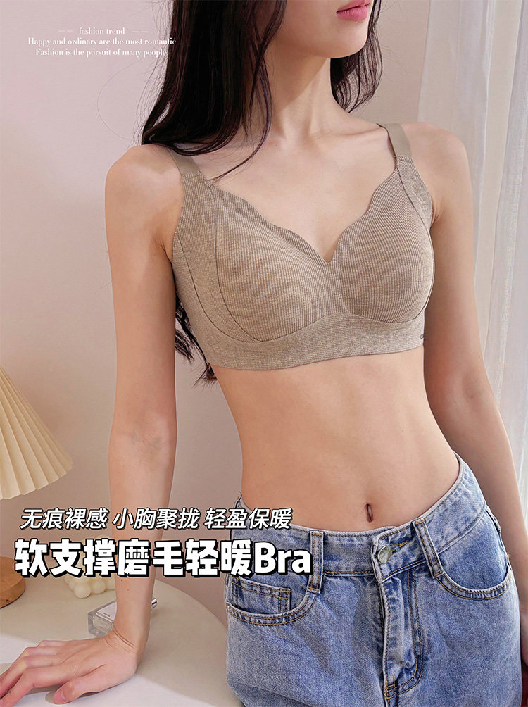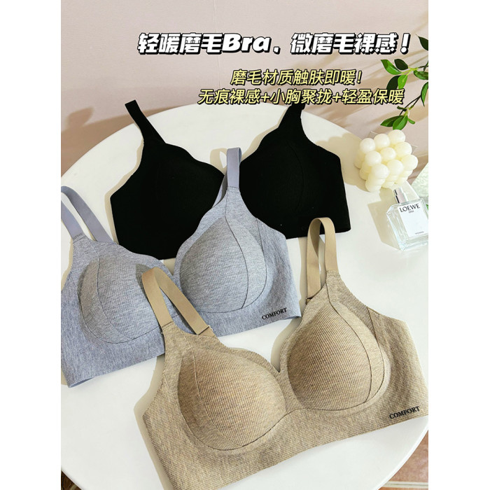MTUN米糖2025秋冬磨毛內衣女小胸聚攏無鋼圈防下垂上托收副乳文胸