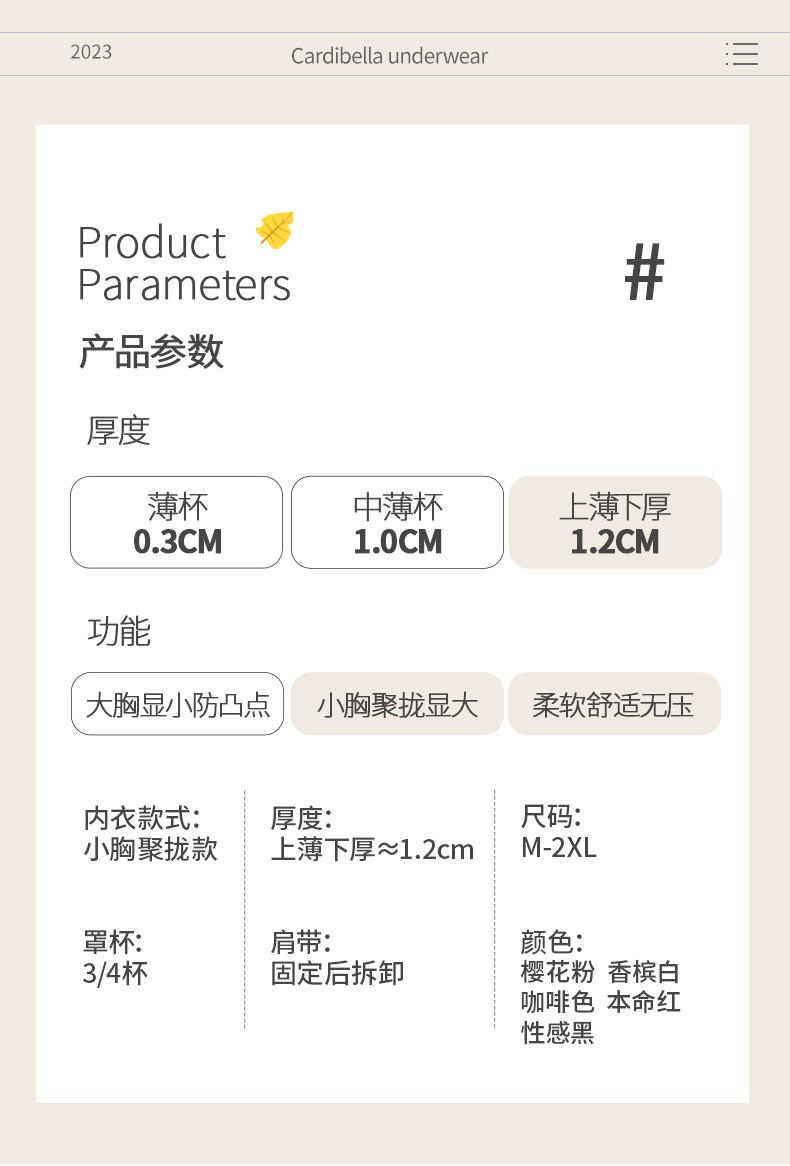 | 罩杯款式 | 3/4罩杯 |