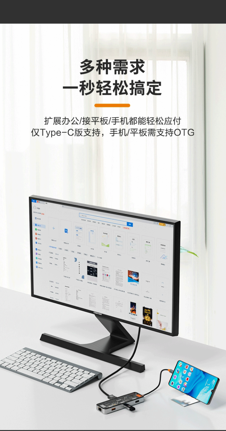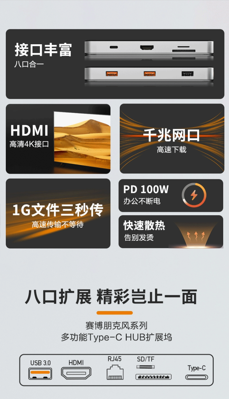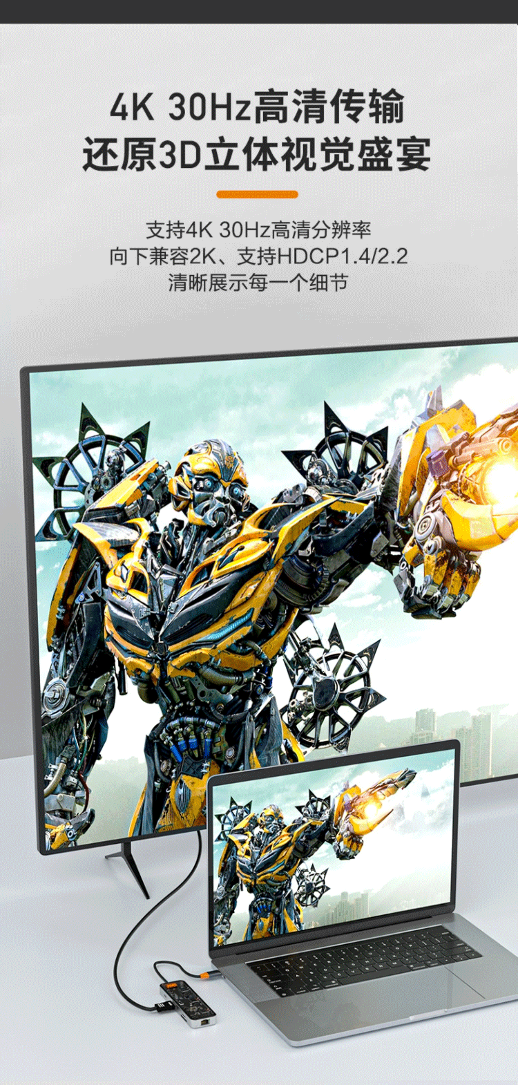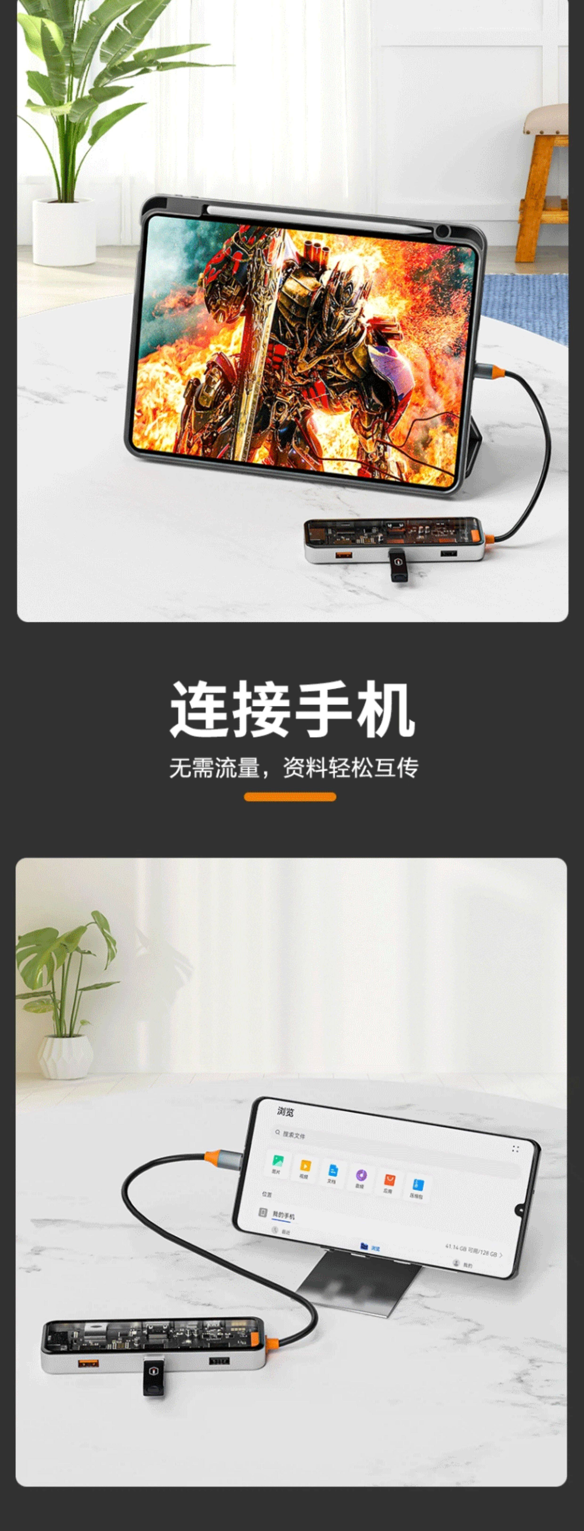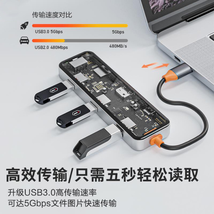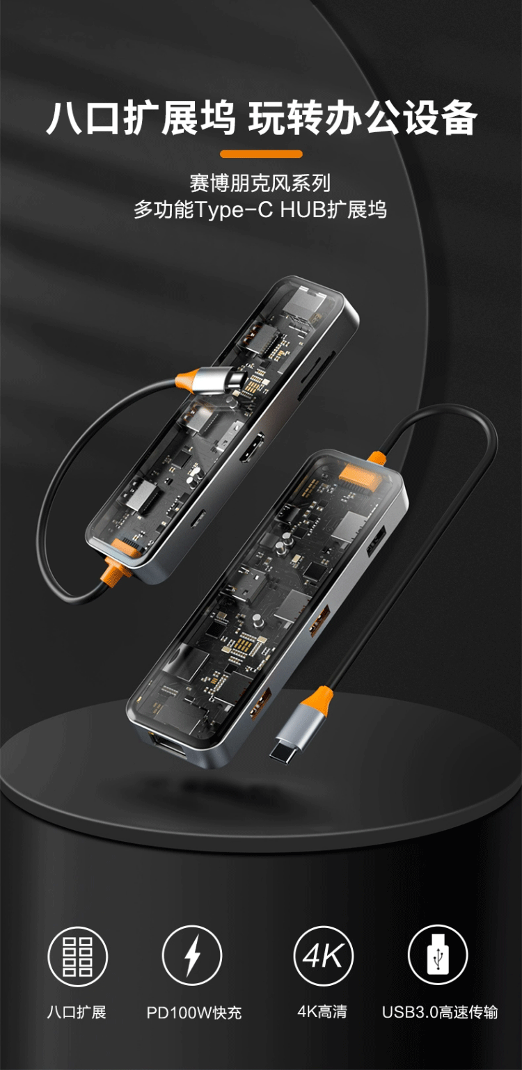 TypeC透明拓展隖USBC轉HDMI@4K30Hz投影筆記型電腦平板網口轉換器