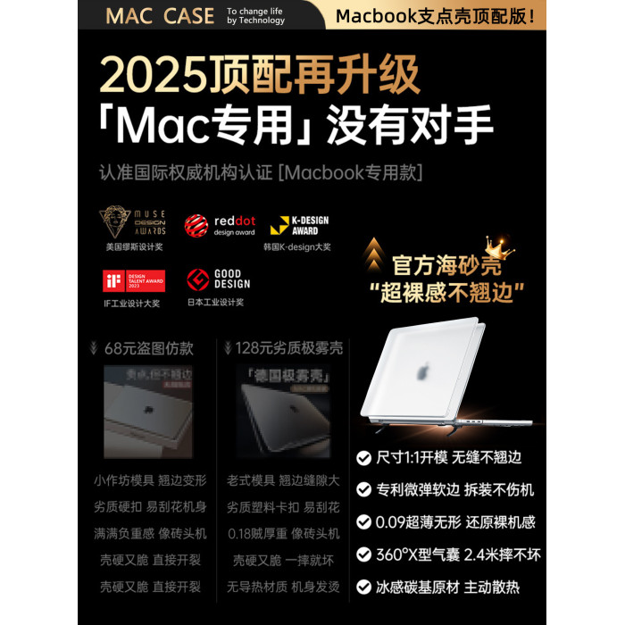 適用蘋果macbook保護殼2026M5macbookpro14筆電air13.6M4帶支架電腦套15寸透明macpro磨砂16mbpM3全包配件