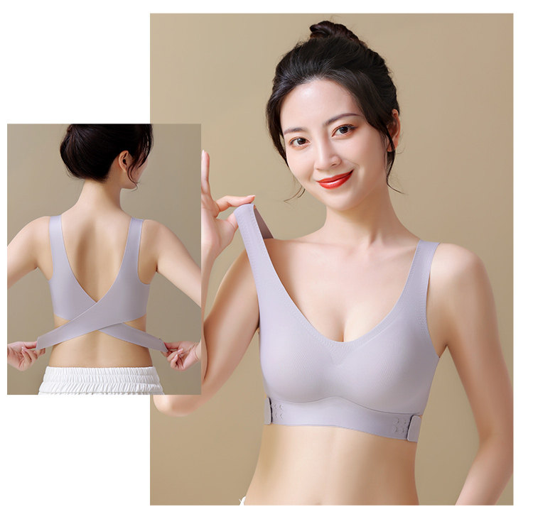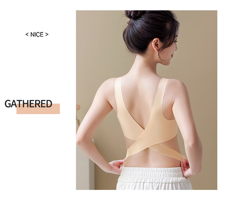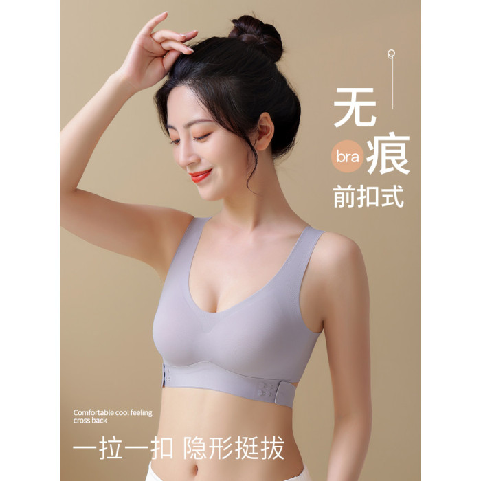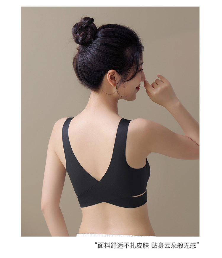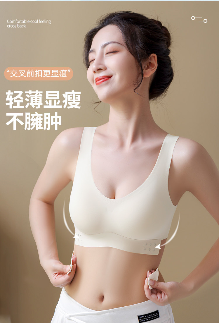 無痕內衣女夏季薄款大胸顯小胸前釦交叉美背運動背心式文胸罩夏天