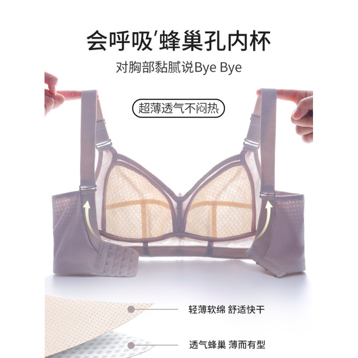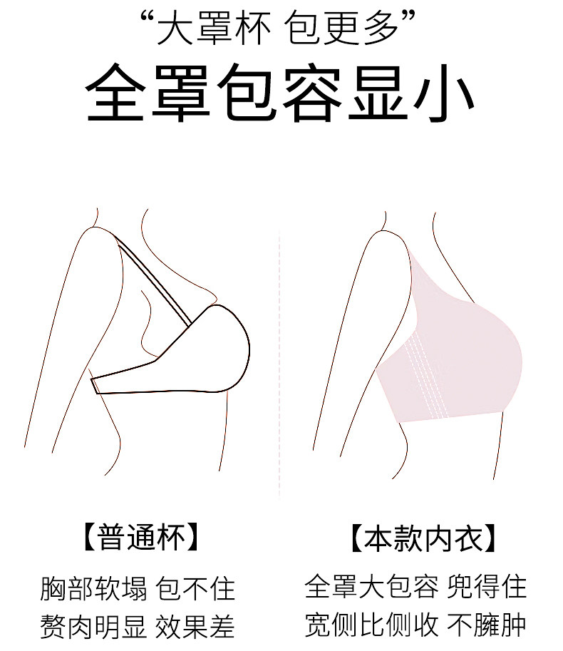 大胸顯小文胸超薄款全罩杯大碼胖mm內衣女無鋼圈聚攏胸罩縮胸神器