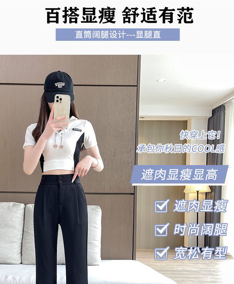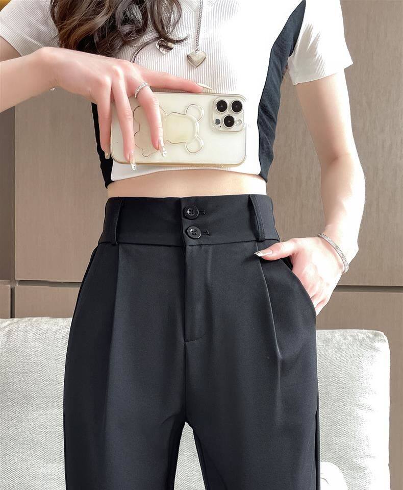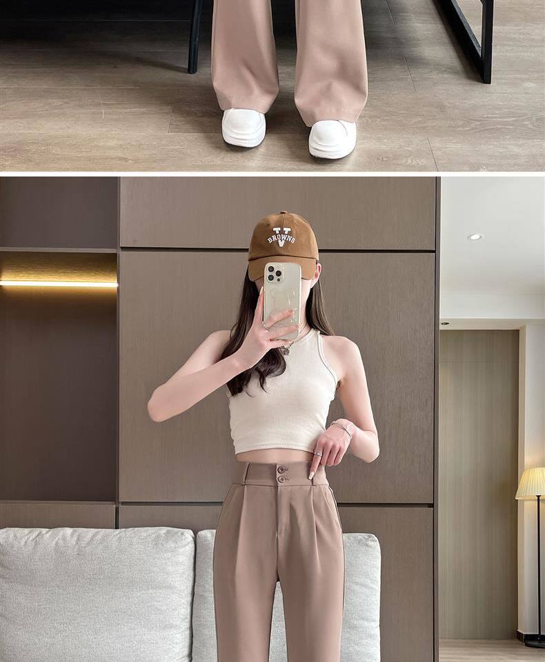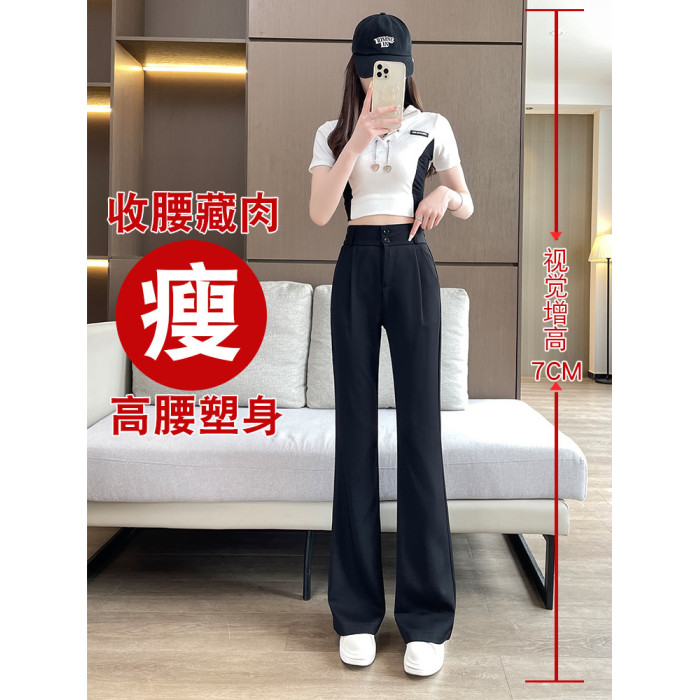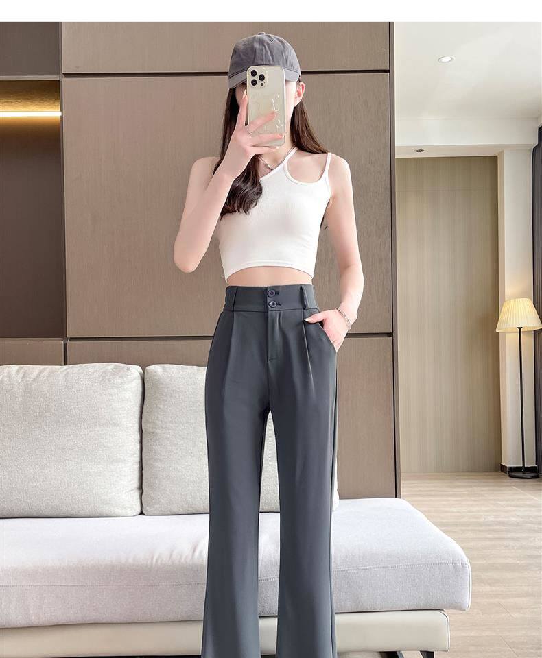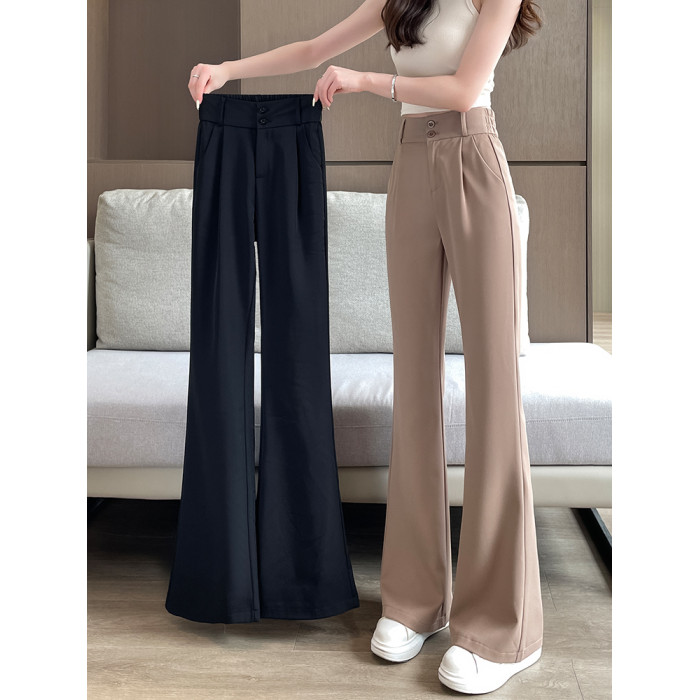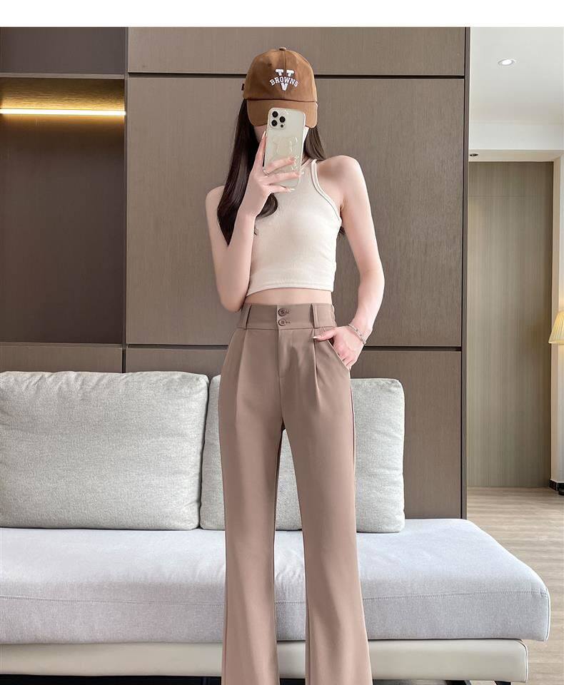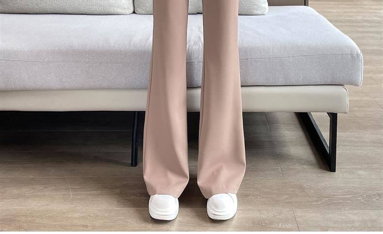 加絨微喇西裝褲女秋冬2026新款垂感濶腿褲休閒窄版直筒喇叭褲春秋
