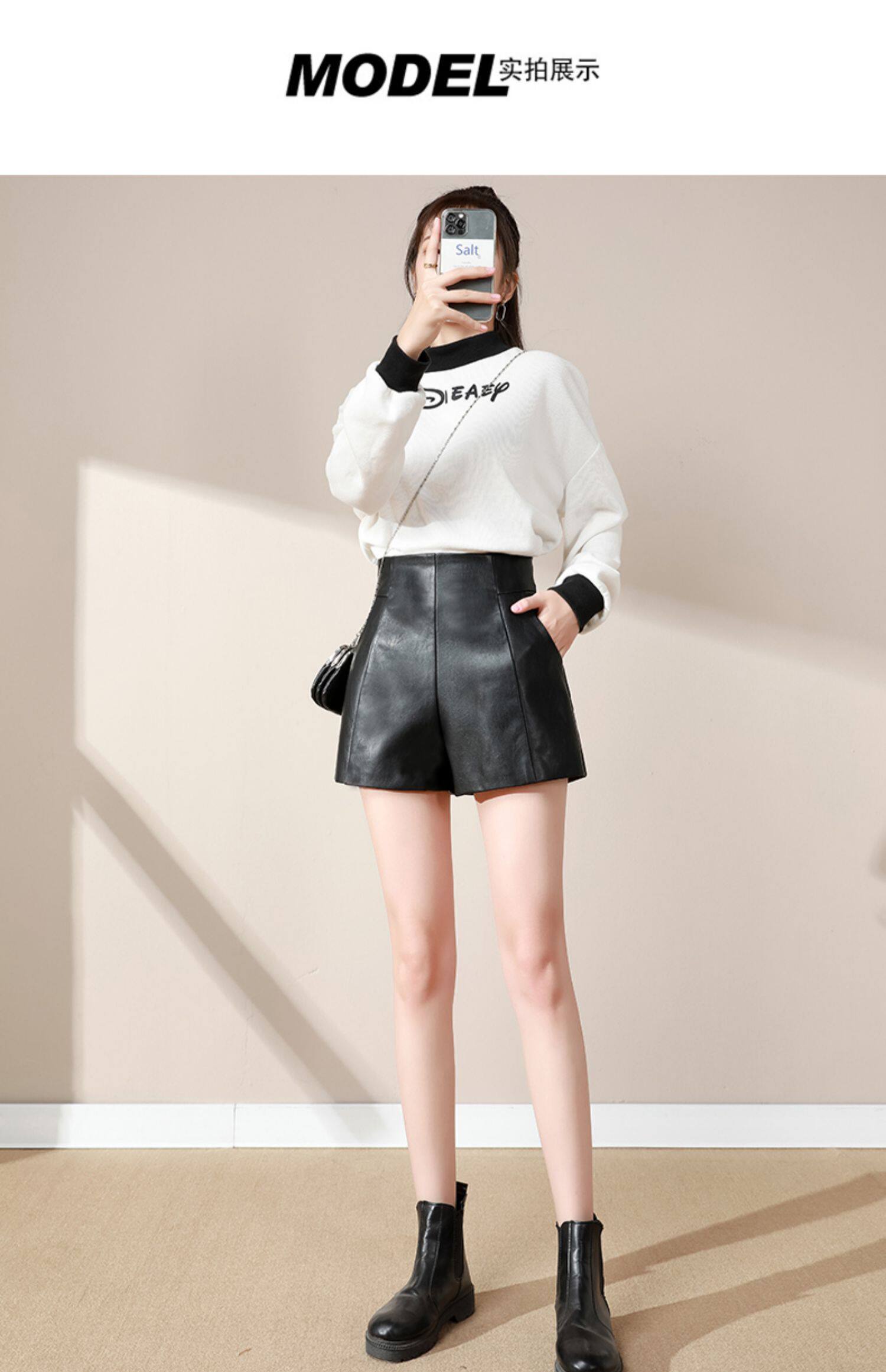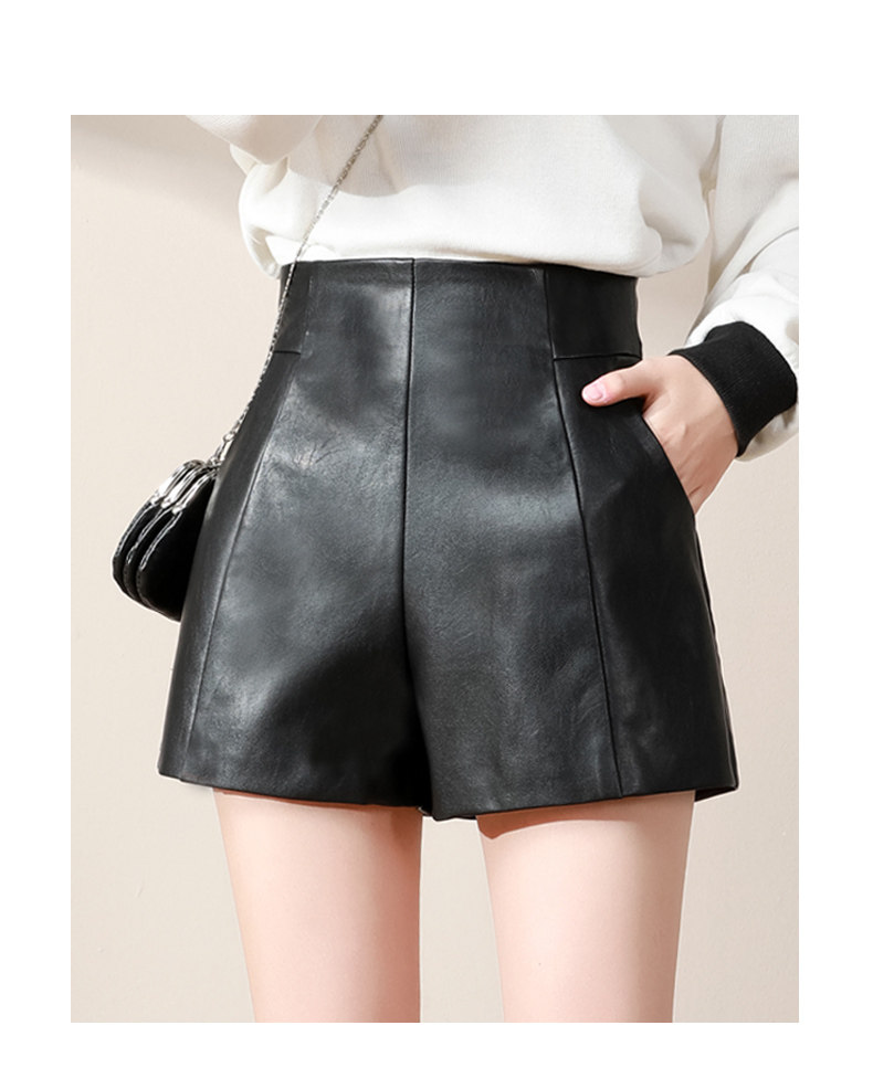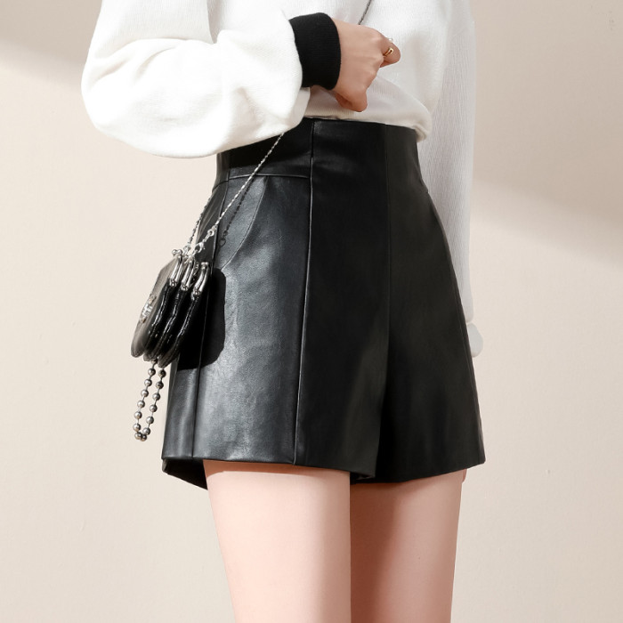 皮短褲女高腰顯瘦2025年新款秋冬季寬鬆時尚a字黑色春濶腿褲外穿