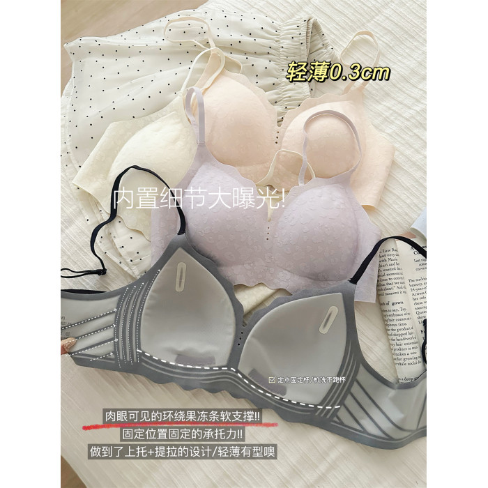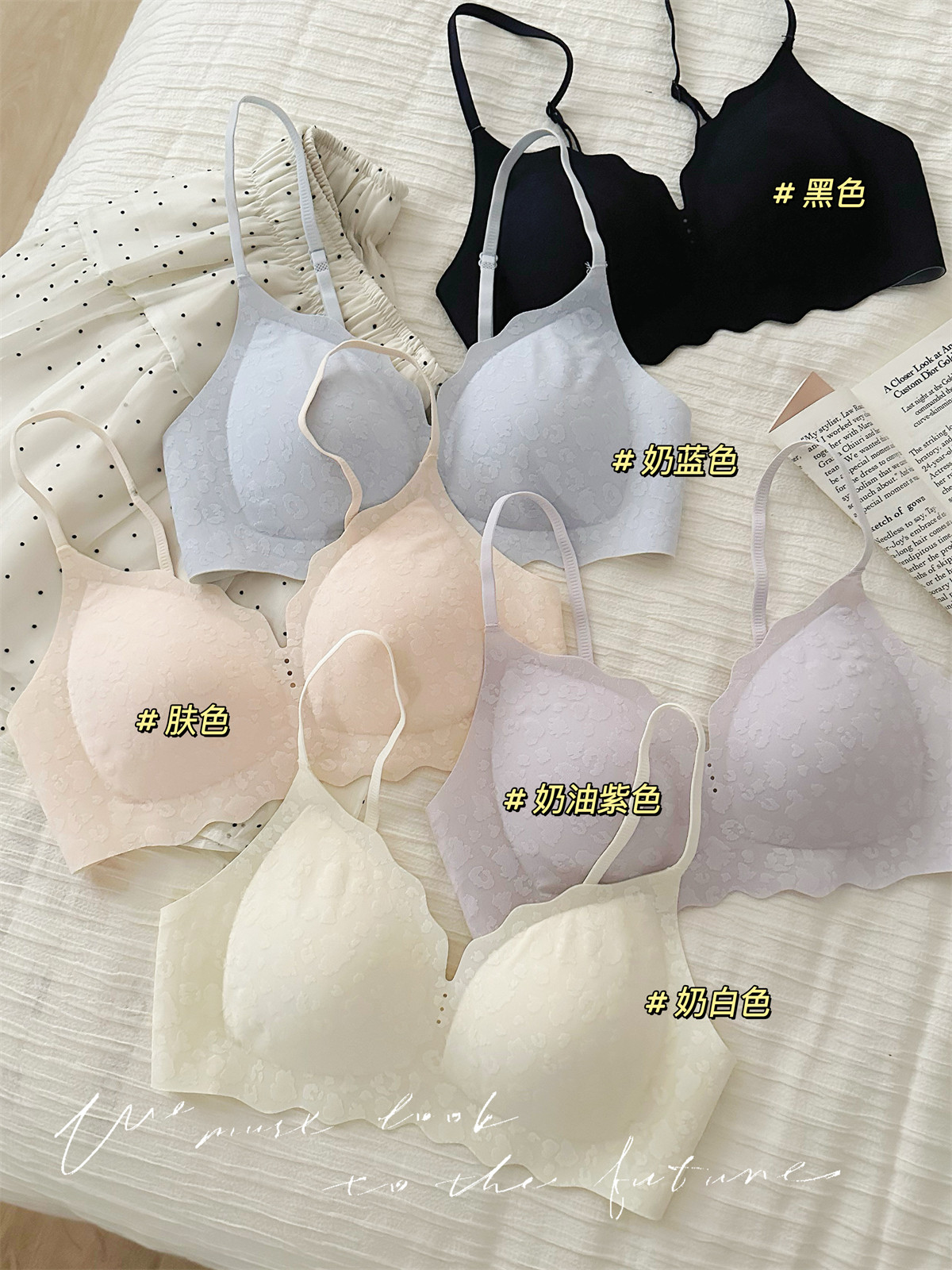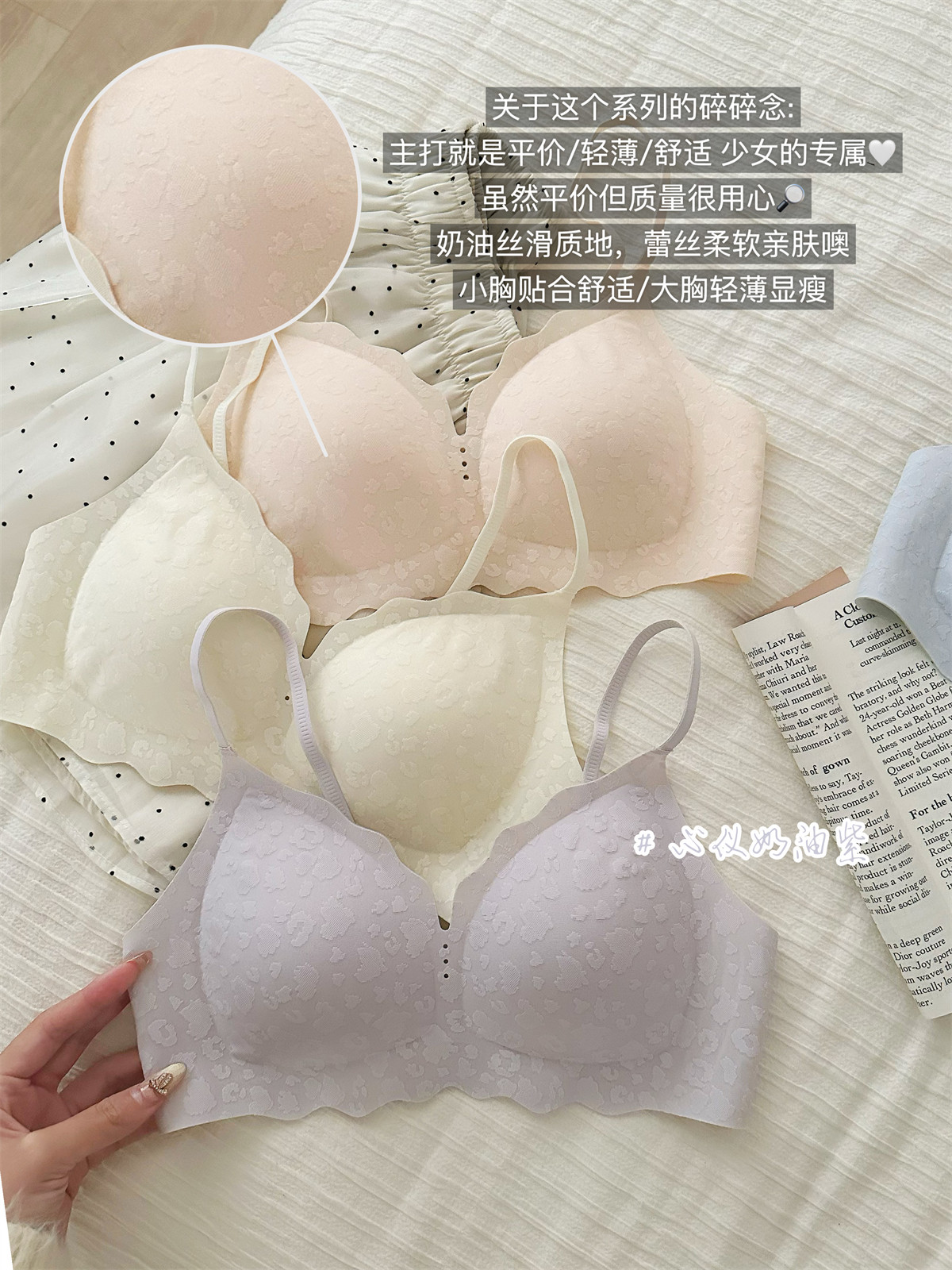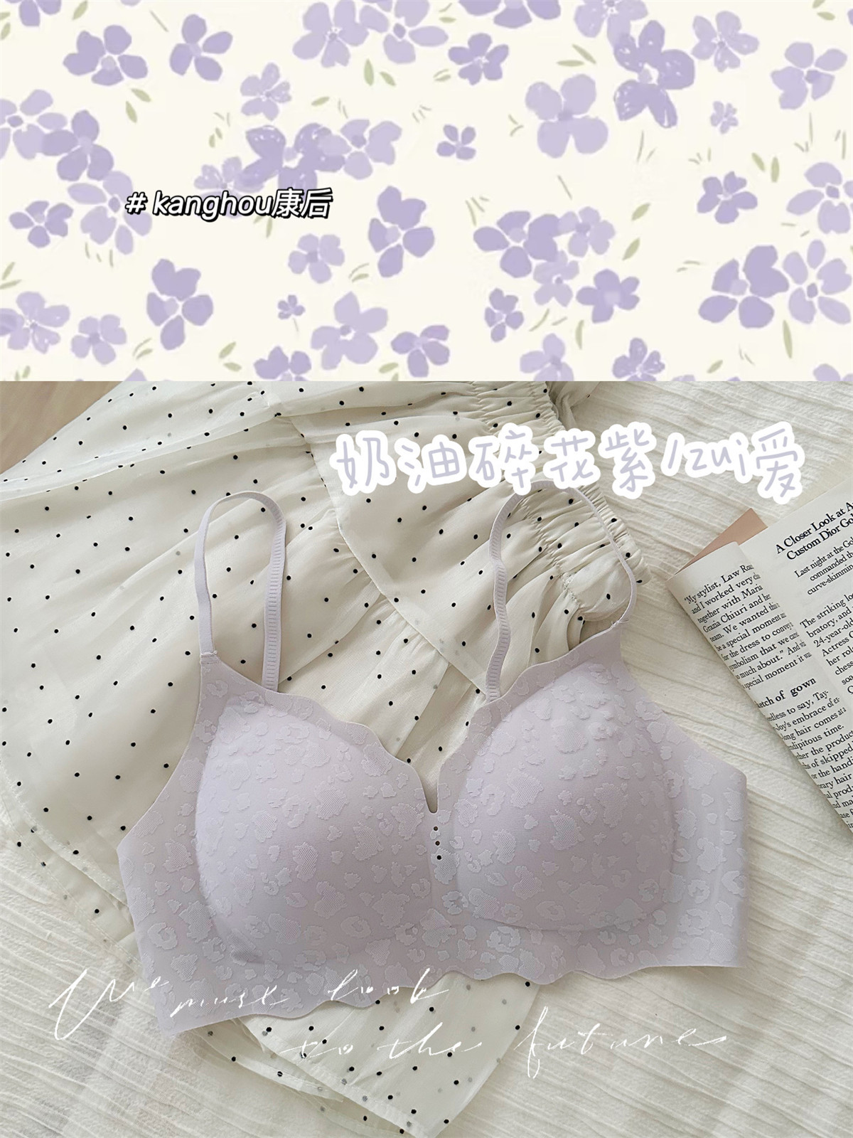 奶油碎花 內衣女小胸聚攏薄款無鋼圈果凍條軟支撐提拉法式文胸罩