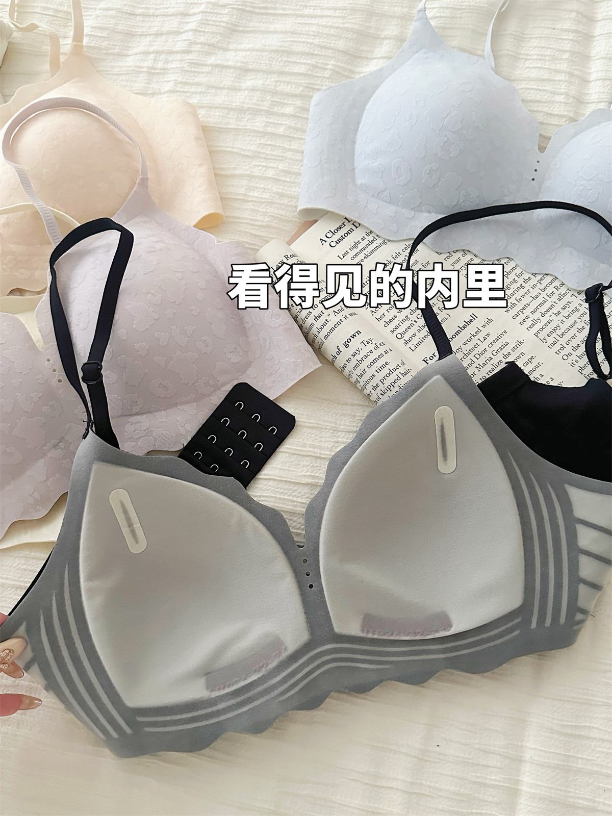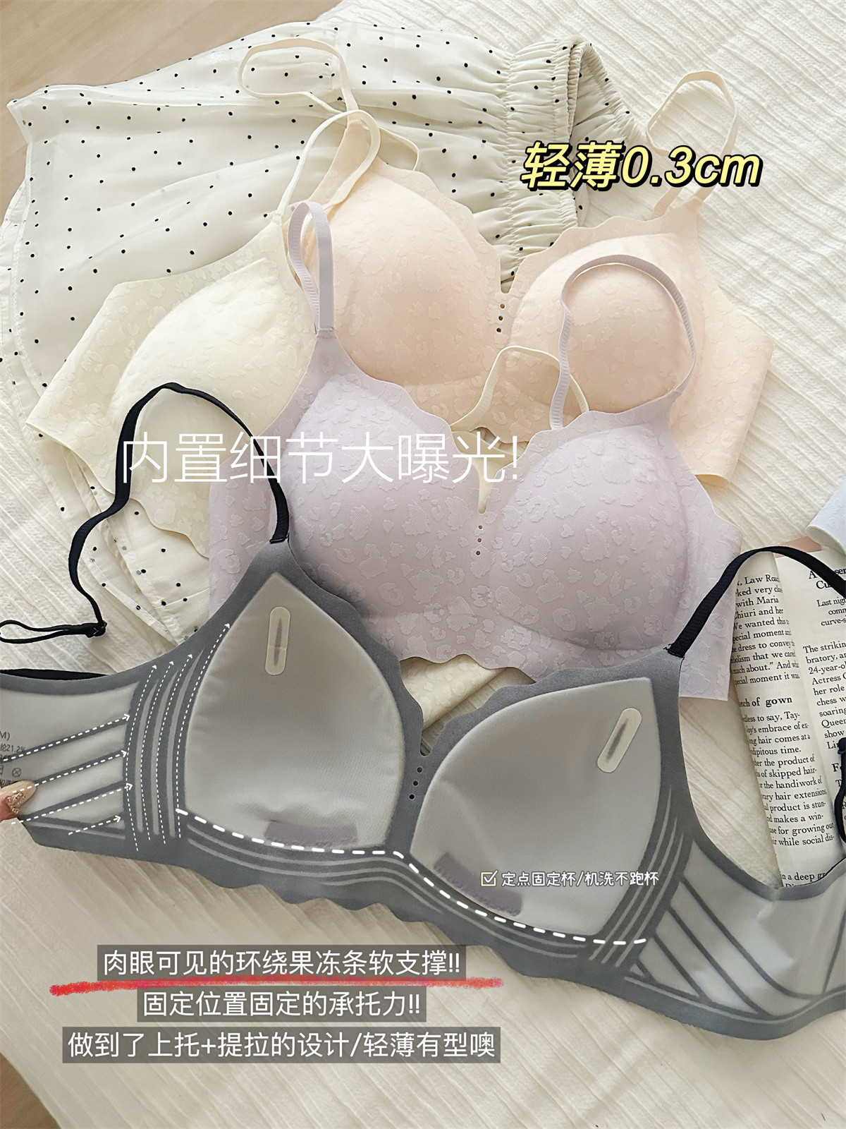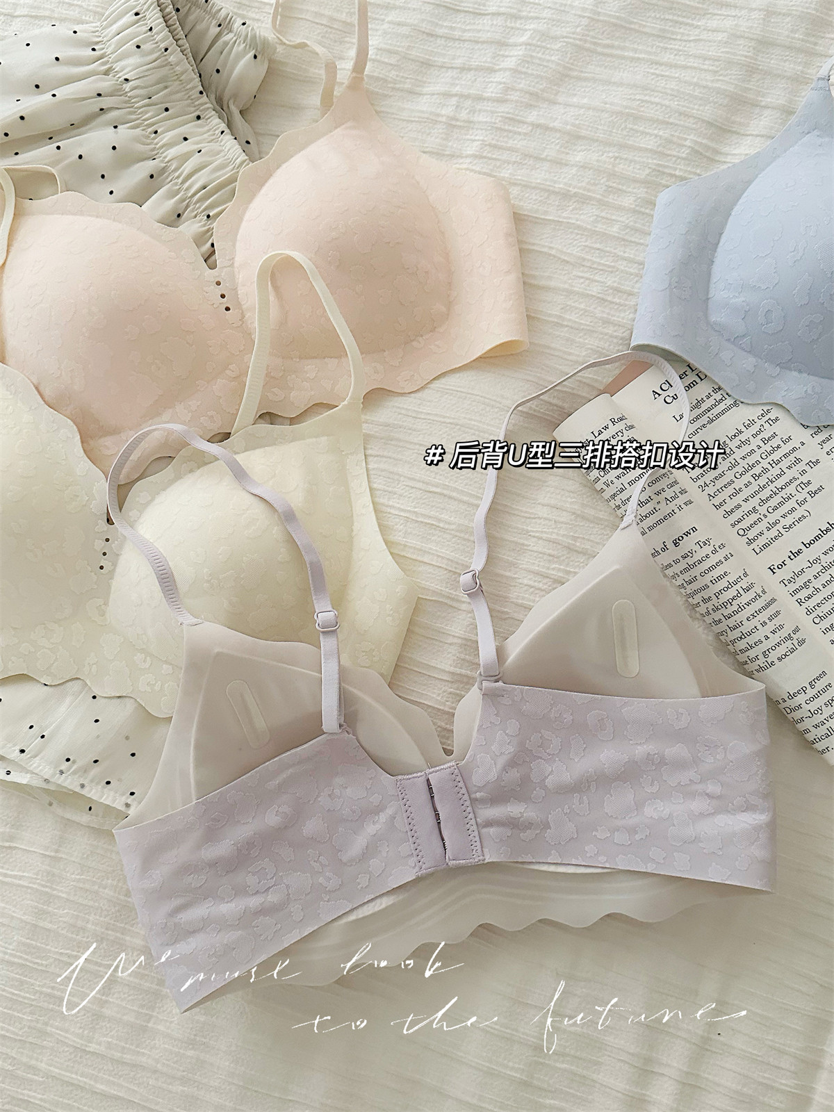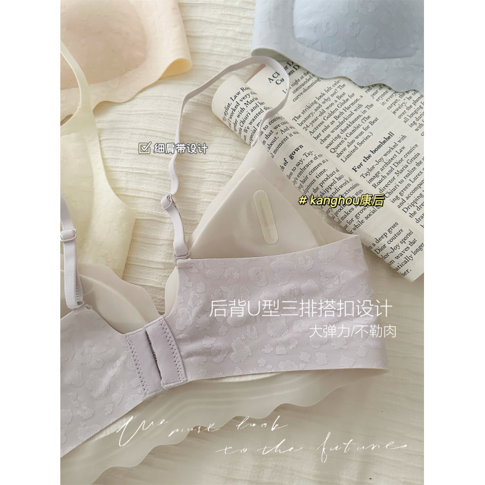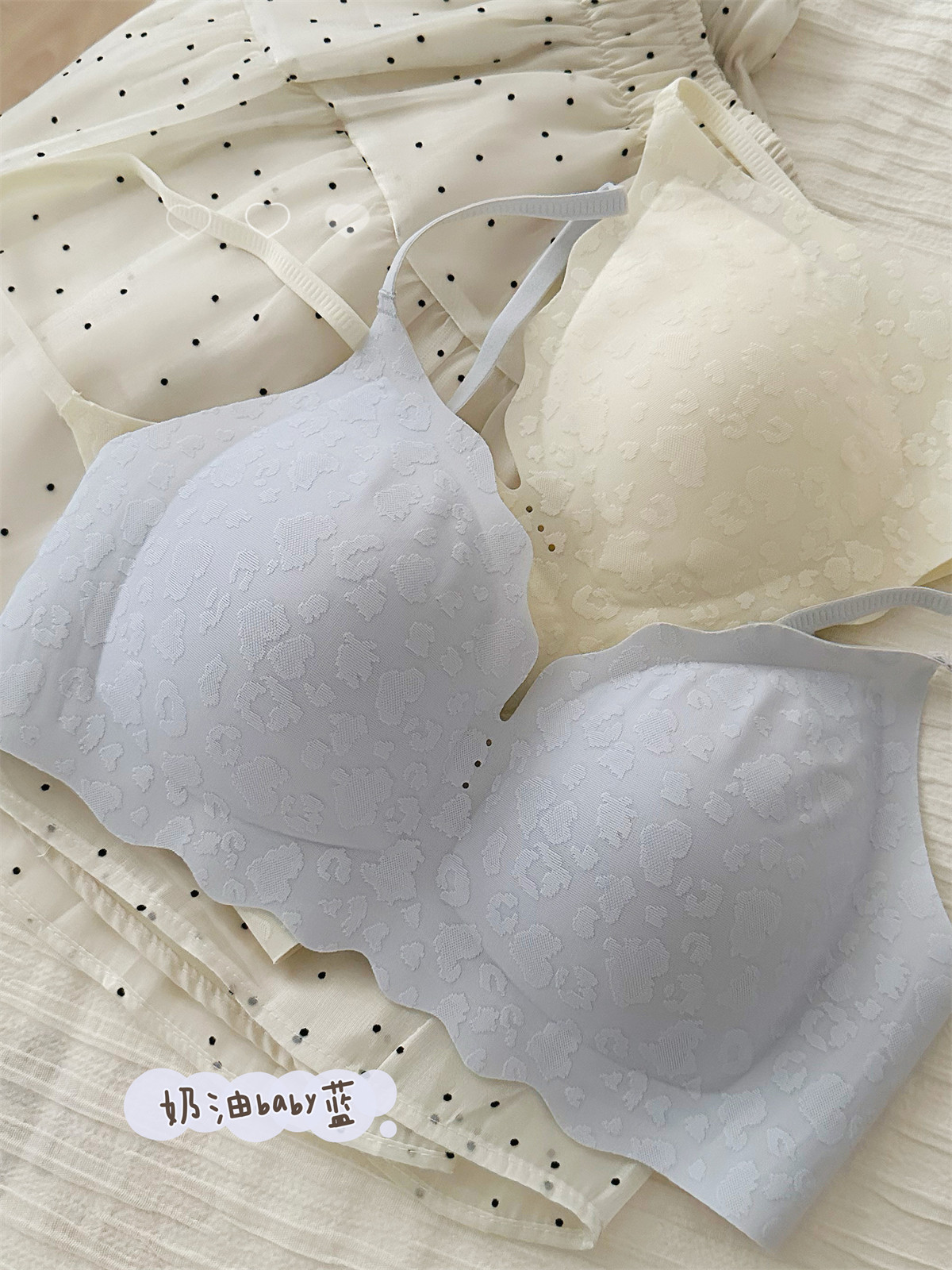 奶油碎花 內衣女小胸聚攏薄款無鋼圈果凍條軟支撐提拉法式文胸罩