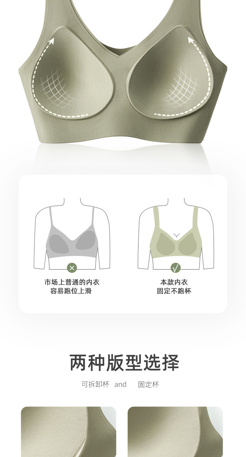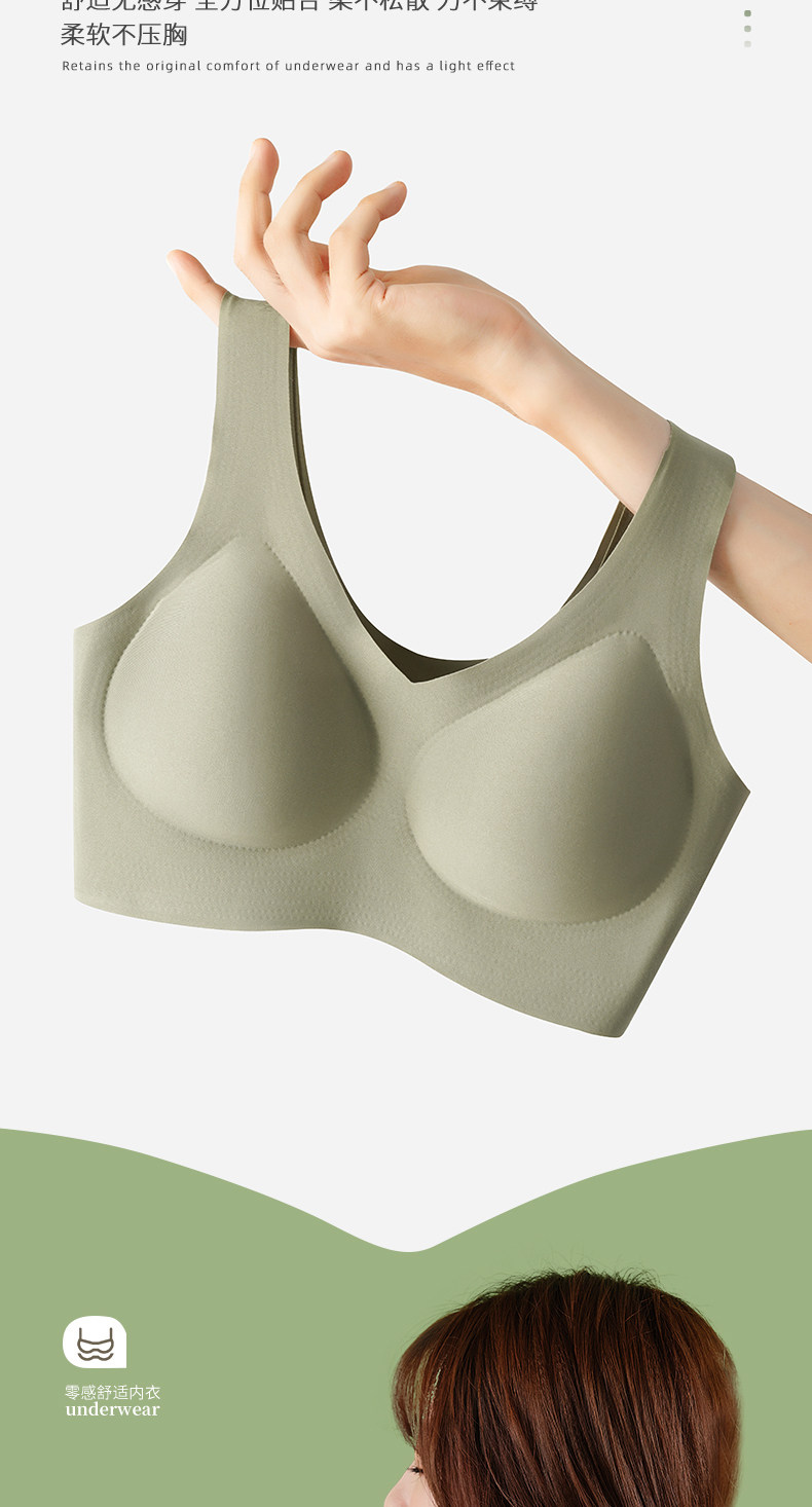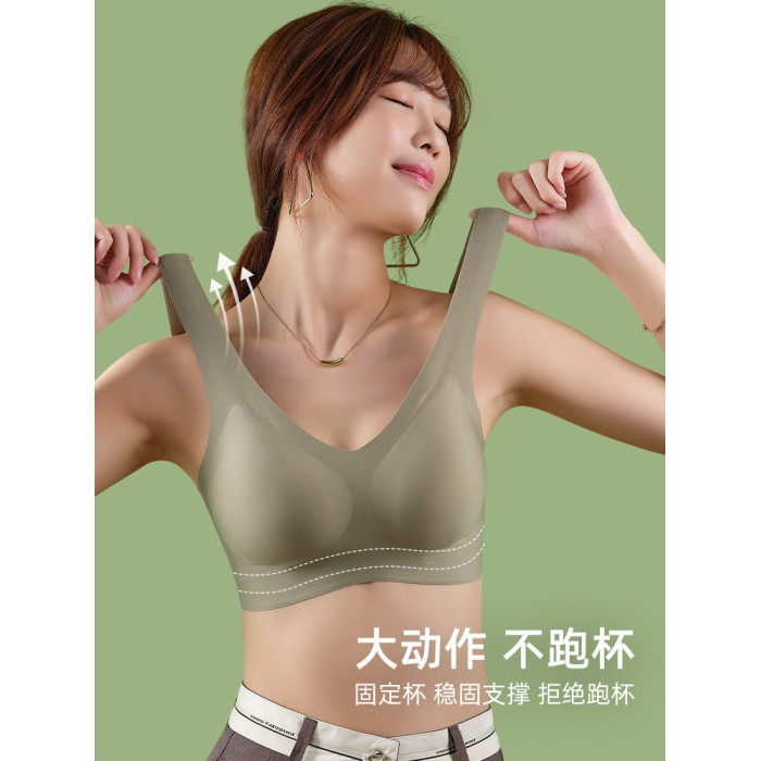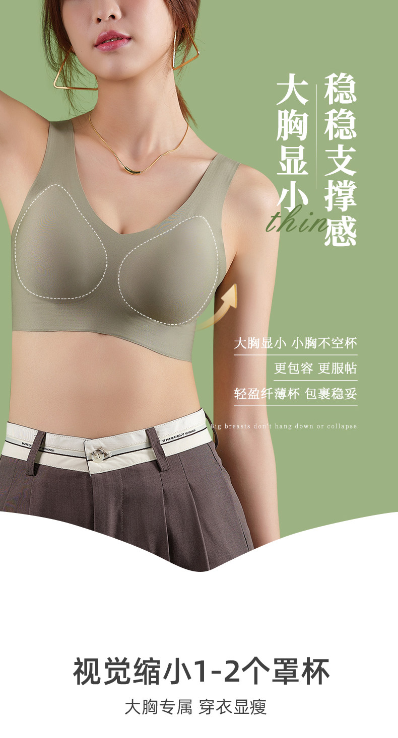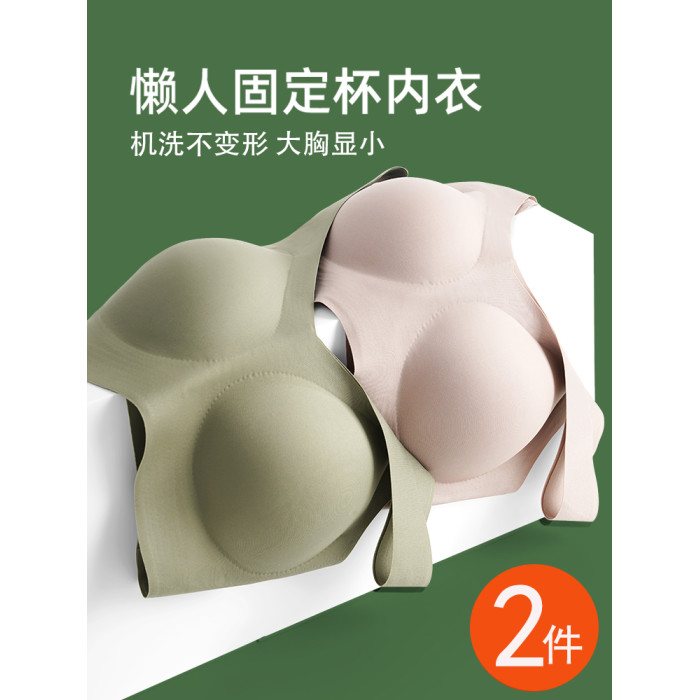 固定杯無痕內衣女大胸顯小胸薄款無鋼圈背心式大碼睡眠夏季文胸罩
