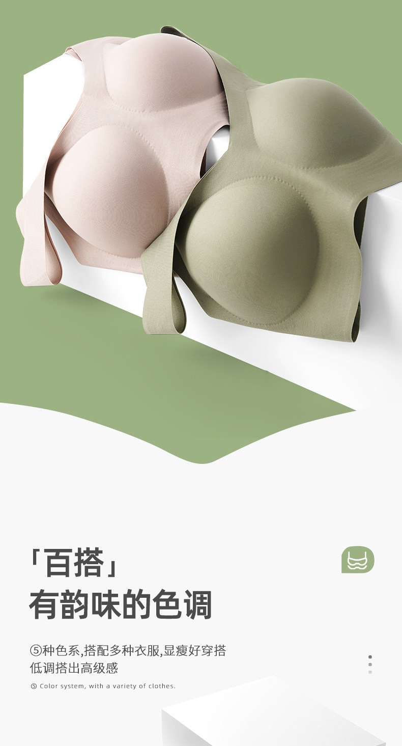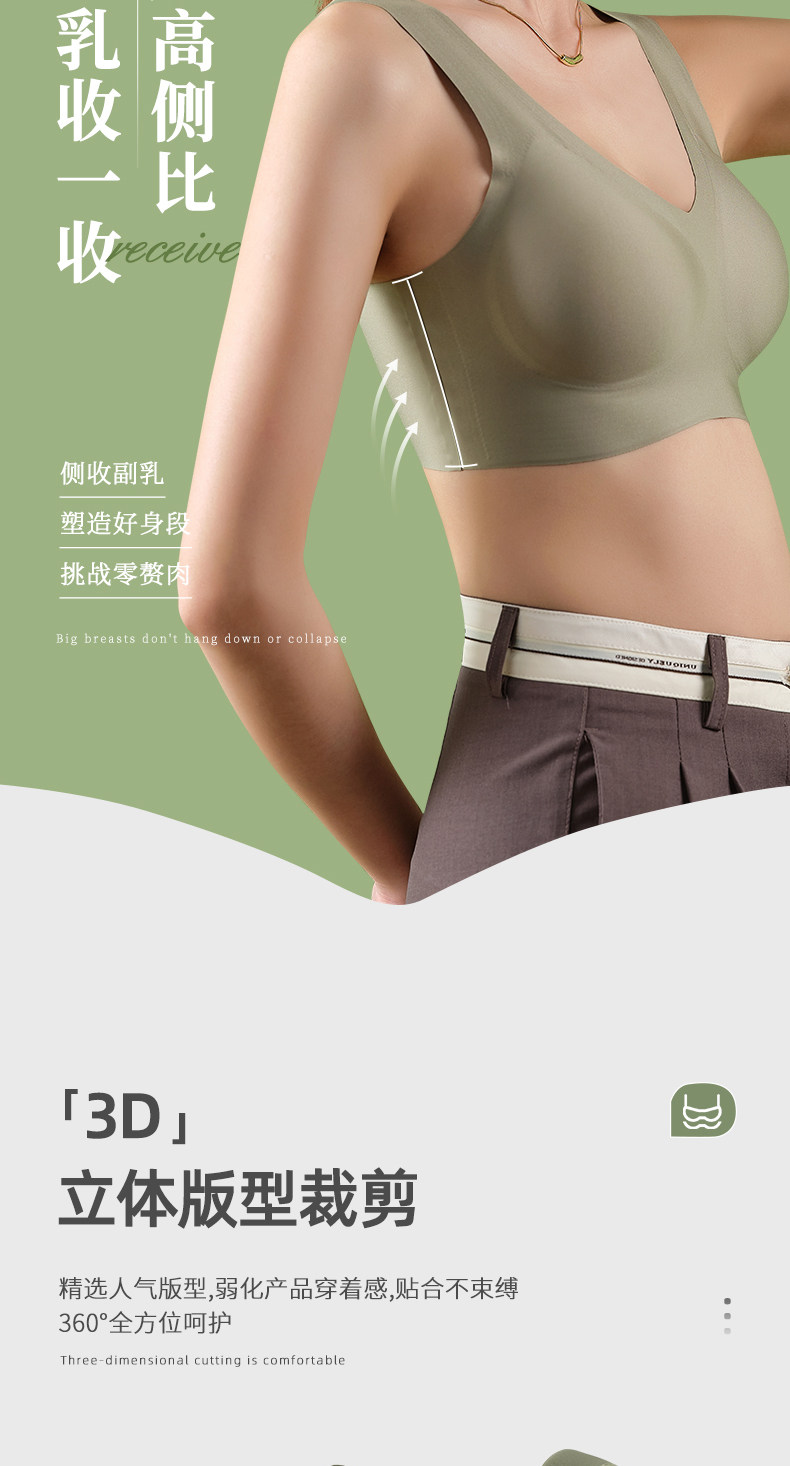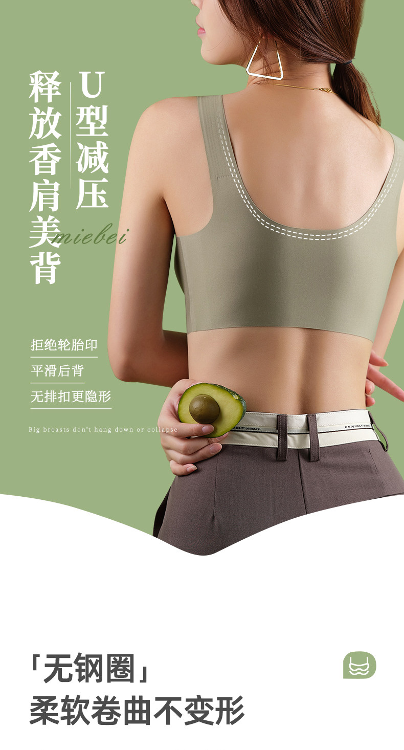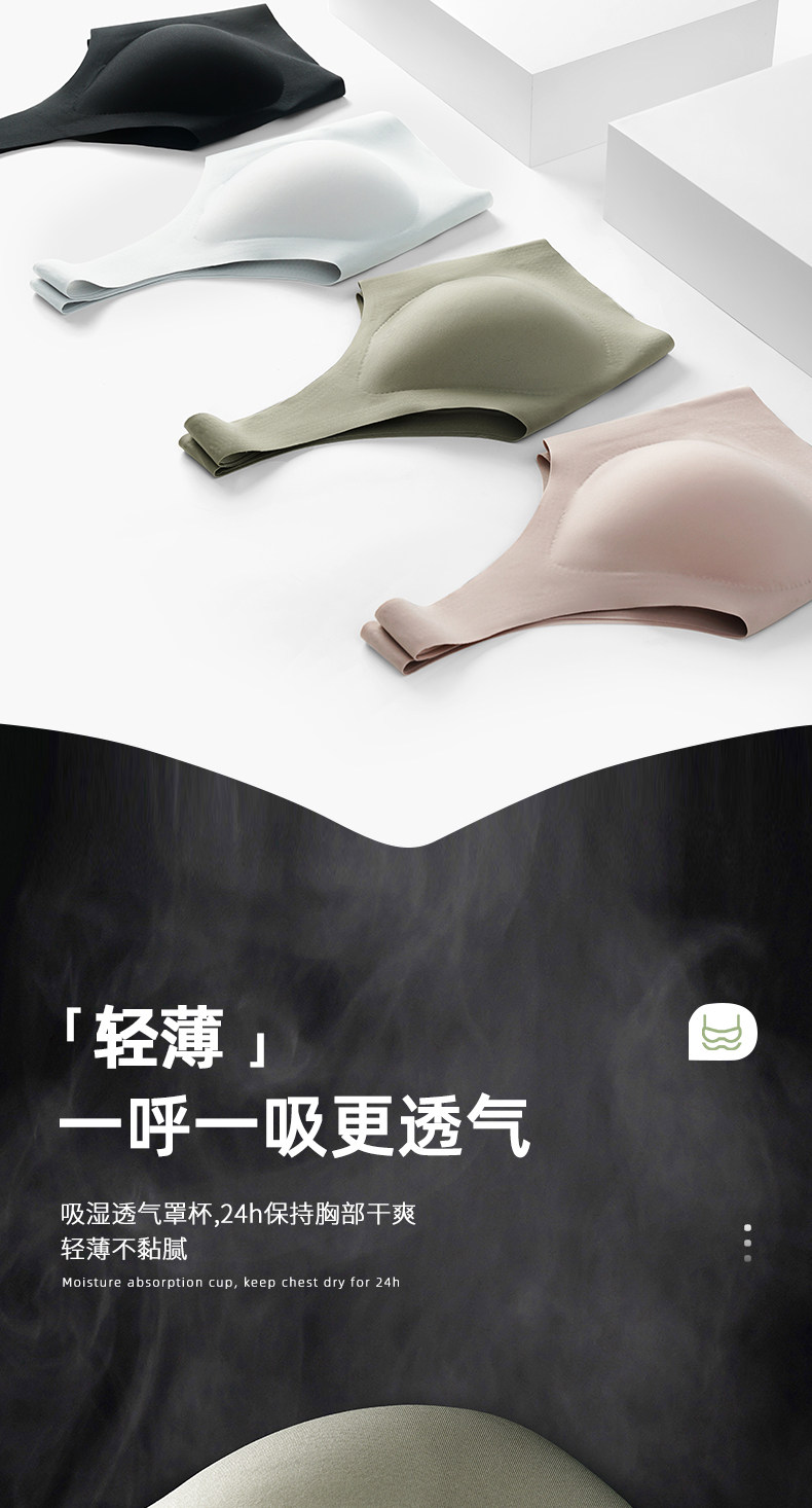固定杯無痕內衣女大胸顯小胸薄款無鋼圈背心式大碼睡眠夏季文胸罩