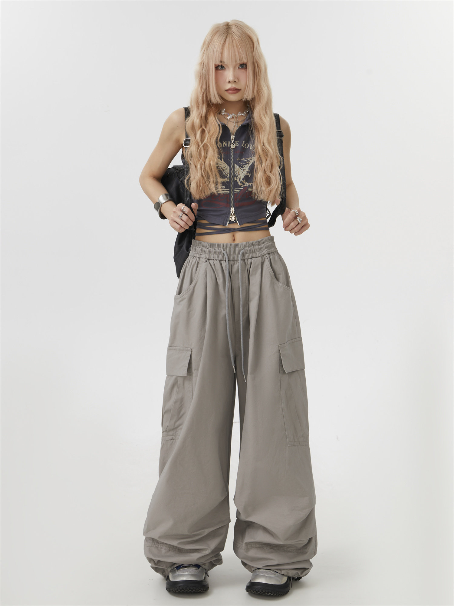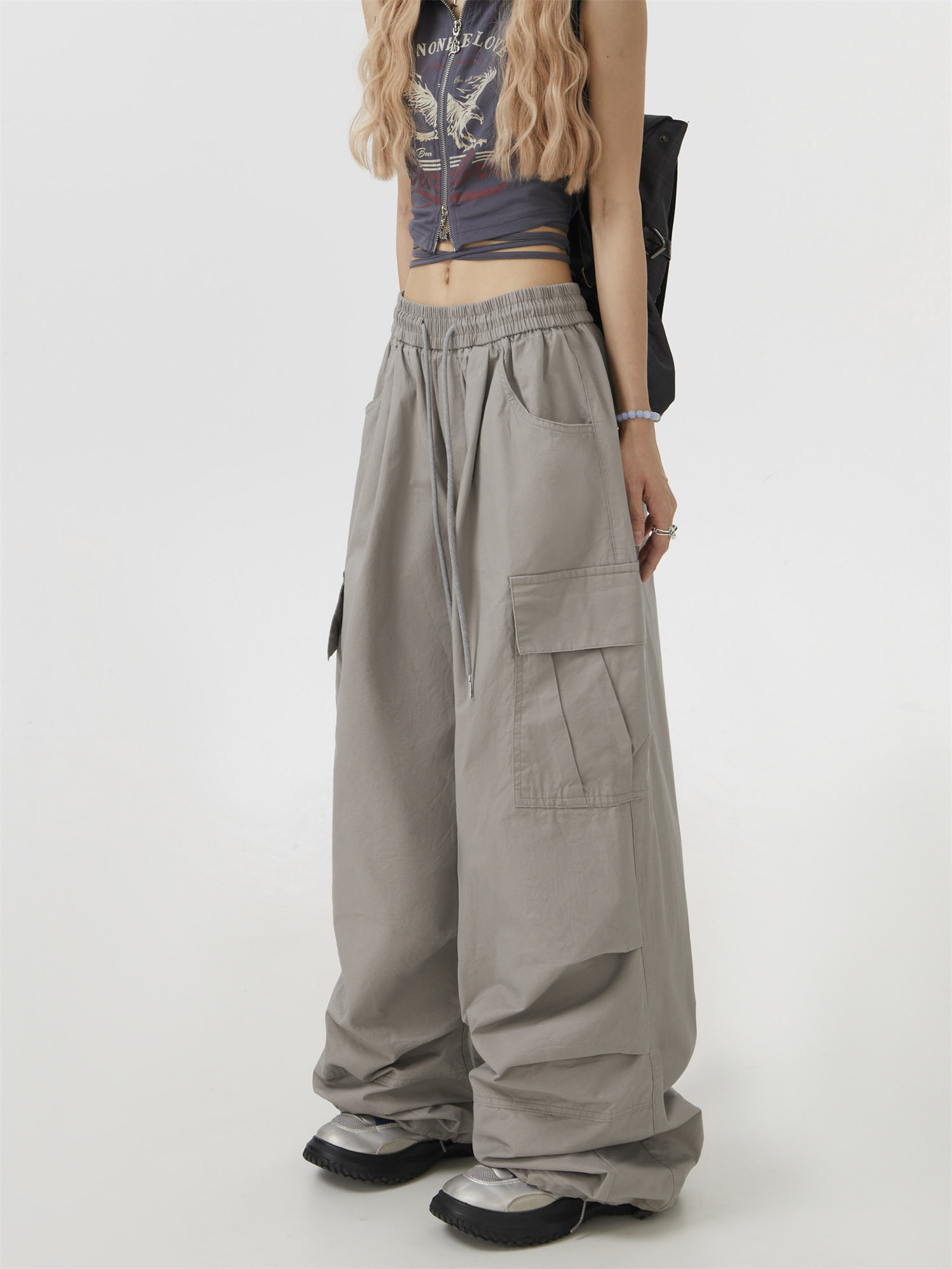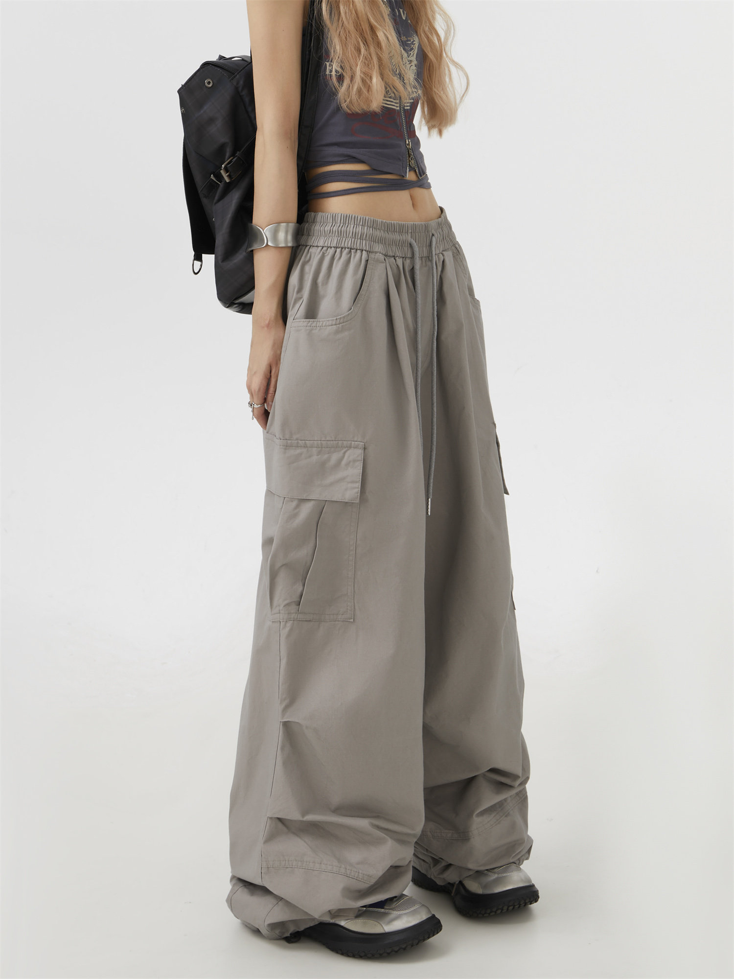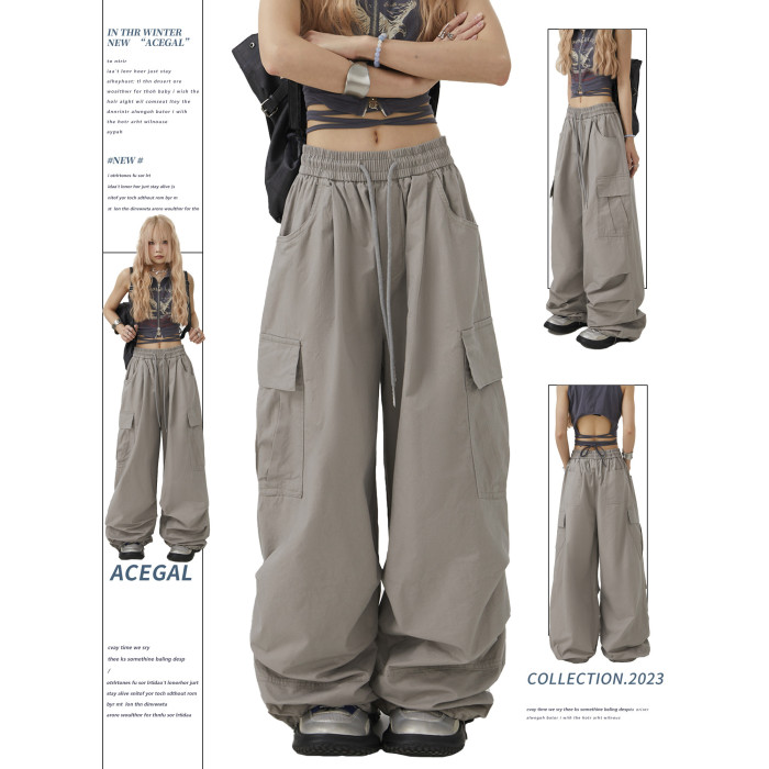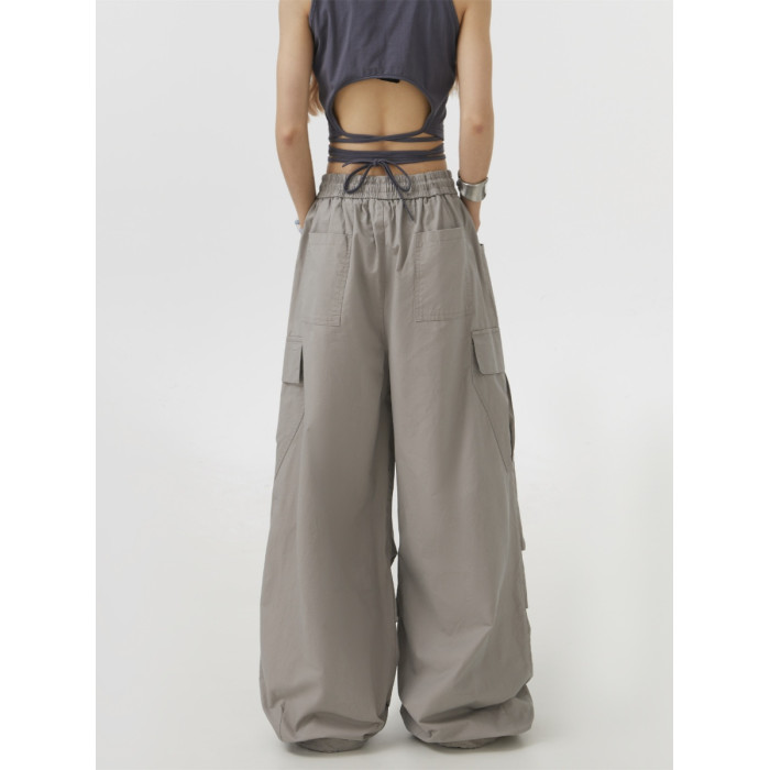 Remedie潮牌美式灰色工裝褲直筒休閒褲傘兵街舞濶腿褲嘻哈hiphop