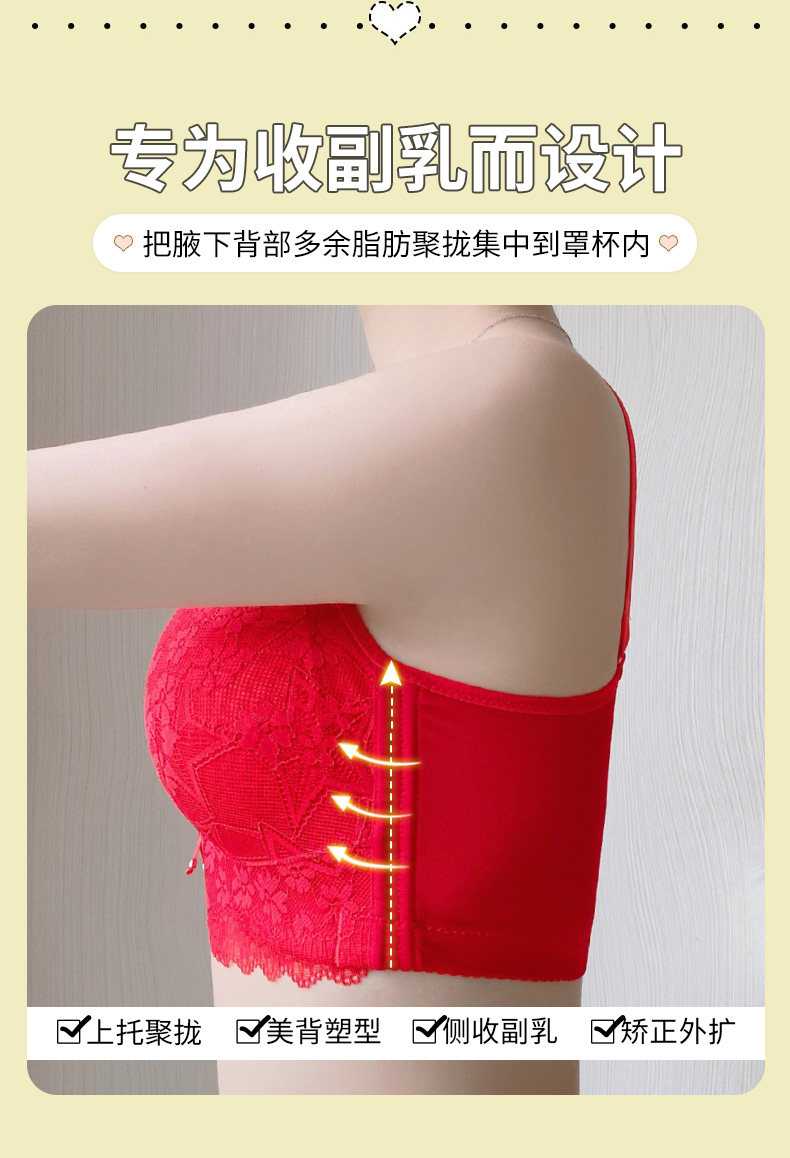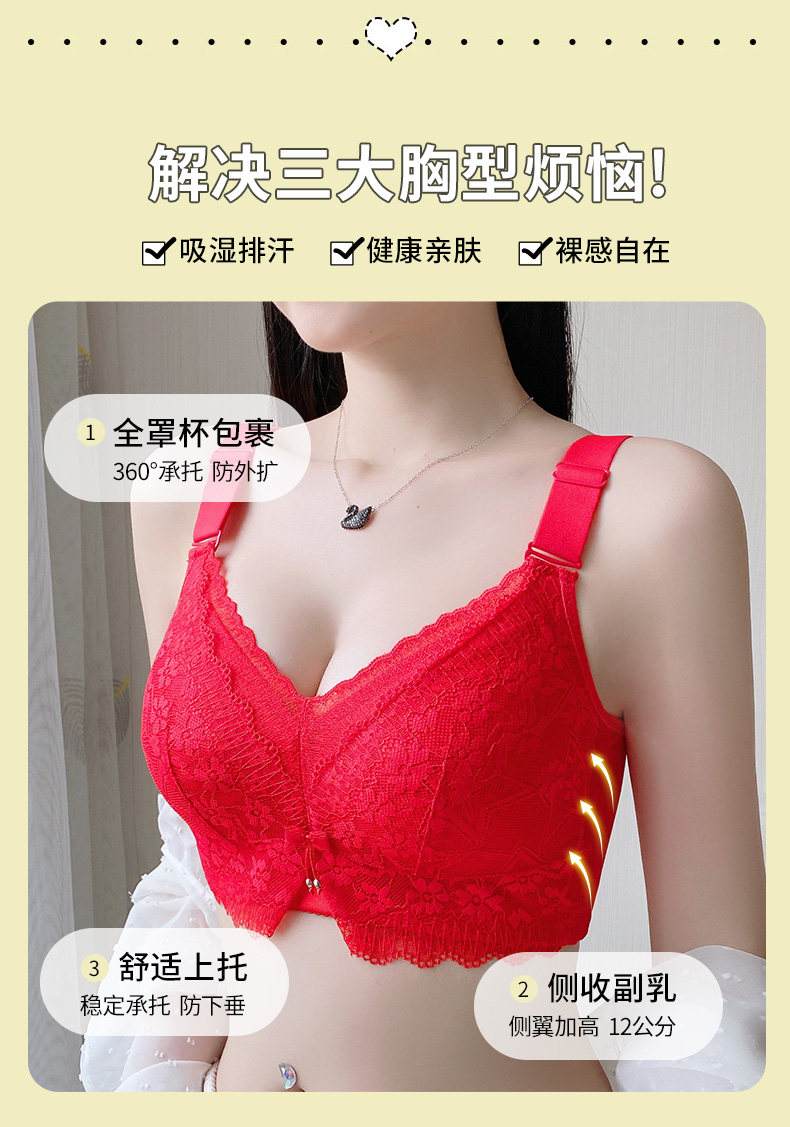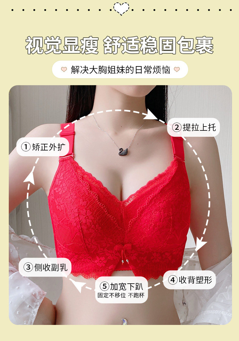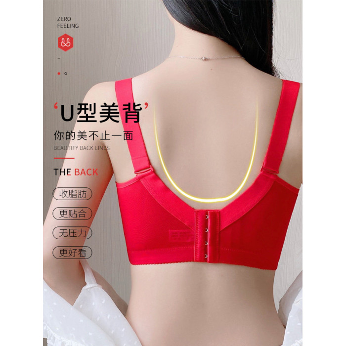 紅色本命年內衣女大胸顯小無鋼圈收副乳防下垂結婚新娘文胸屬馬年