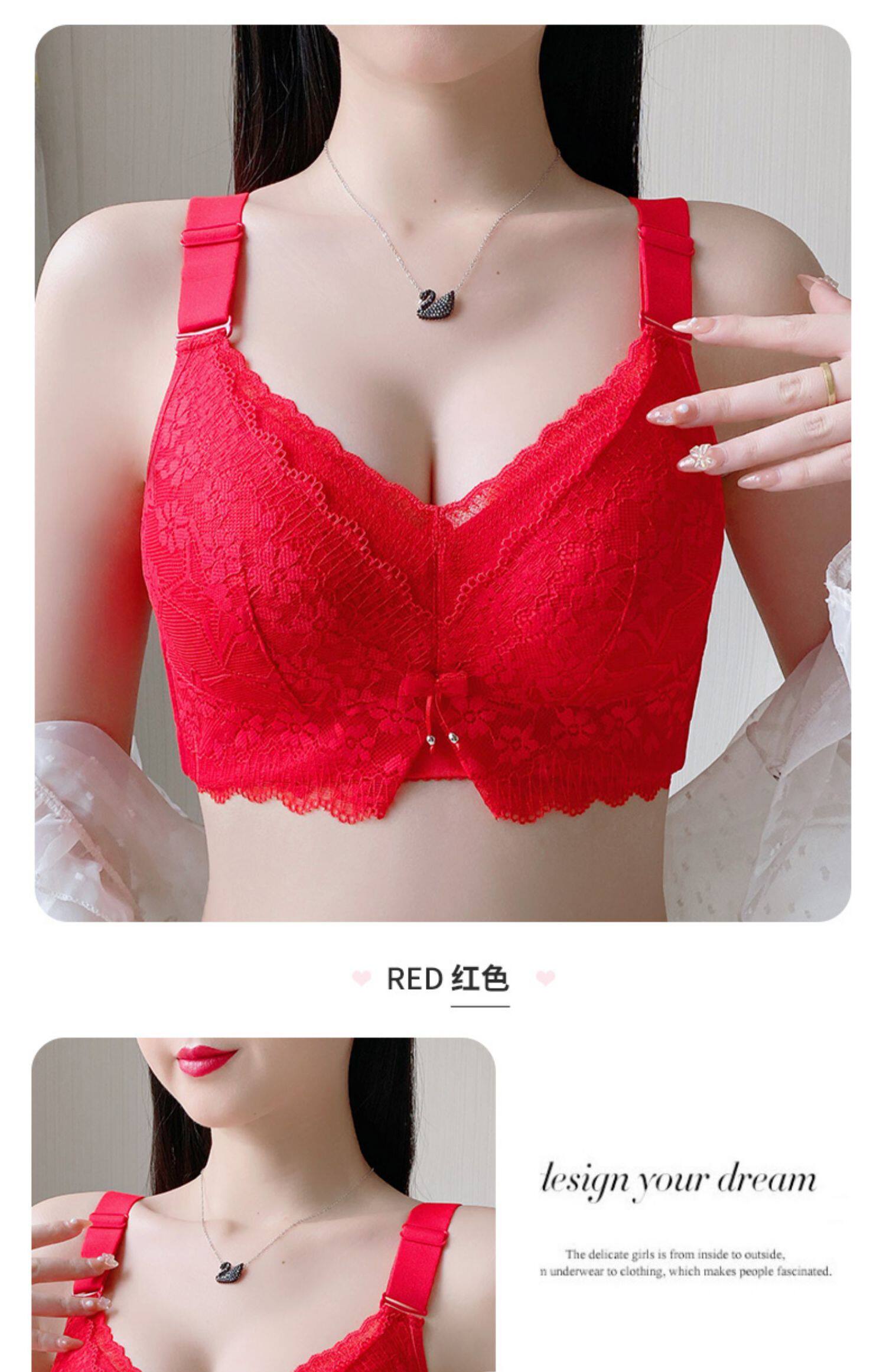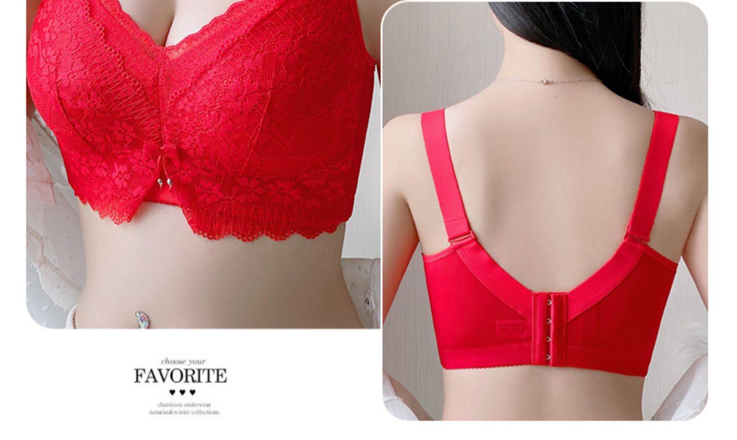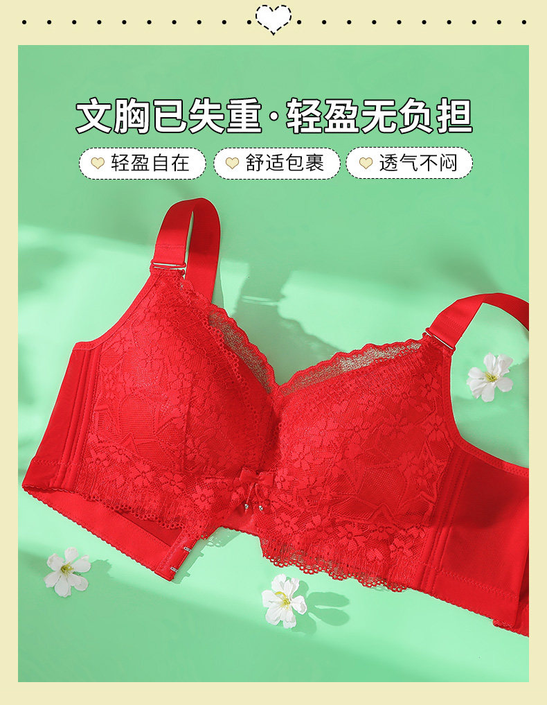 紅色本命年內衣女大胸顯小無鋼圈收副乳防下垂結婚新娘文胸屬馬年