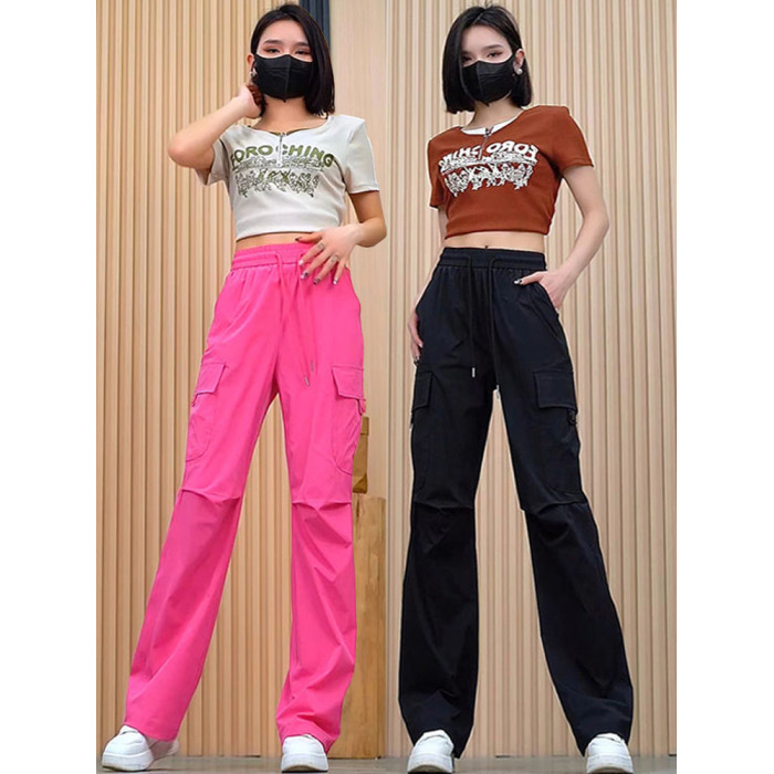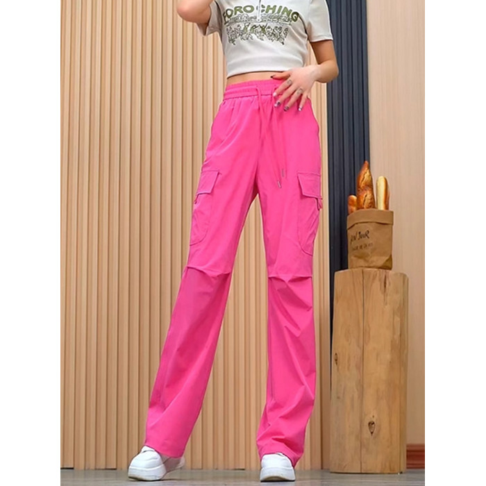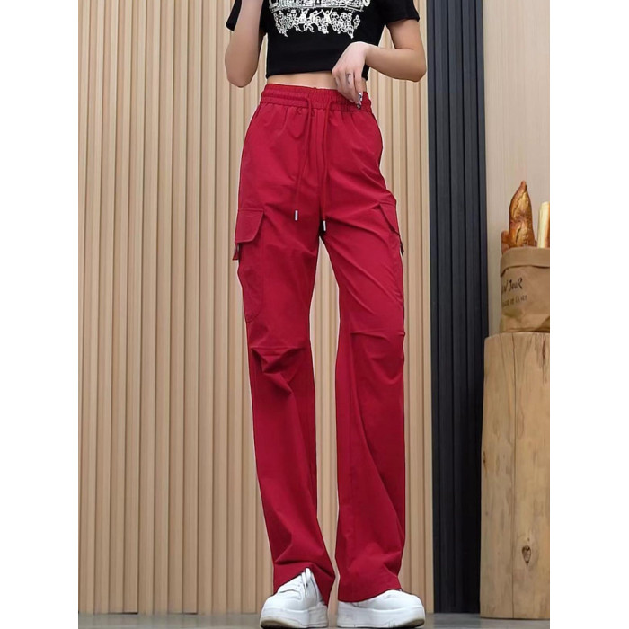 美式工裝褲女夏季薄款2025新款高腰寬鬆透氣速乾運動休閒濶腿褲子