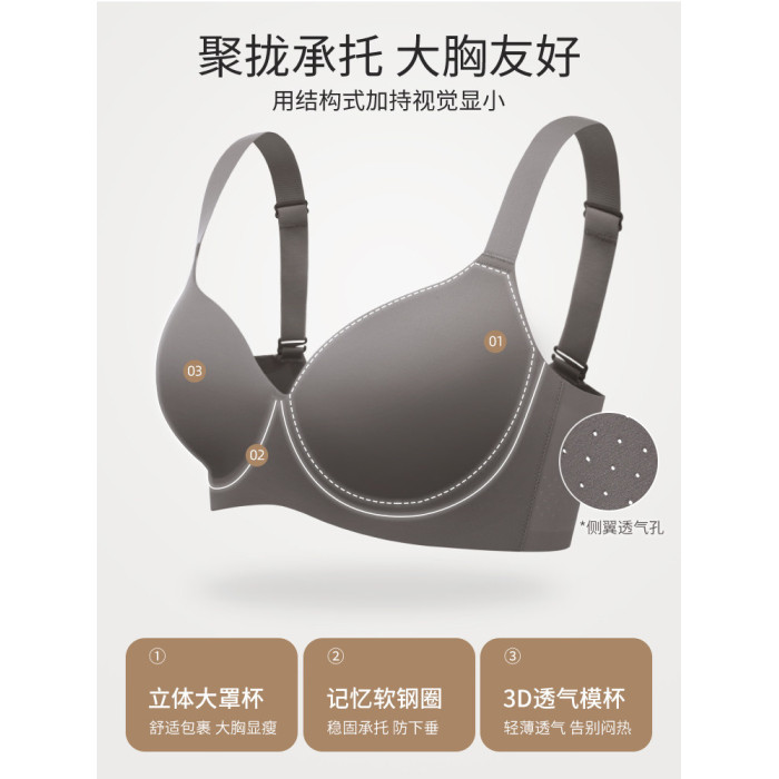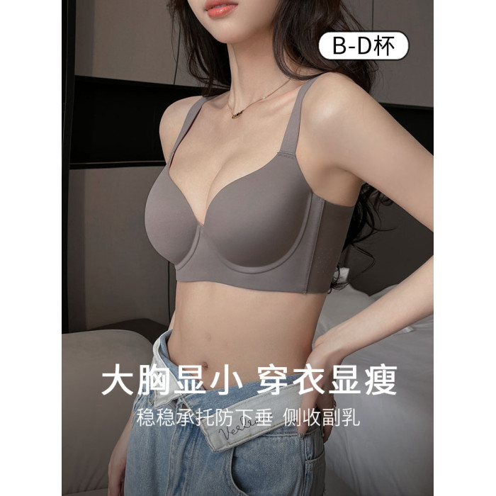 蜜格兒V432大碼無痕內衣女大胸顯小薄款聚攏收副乳防下垂大號文胸
