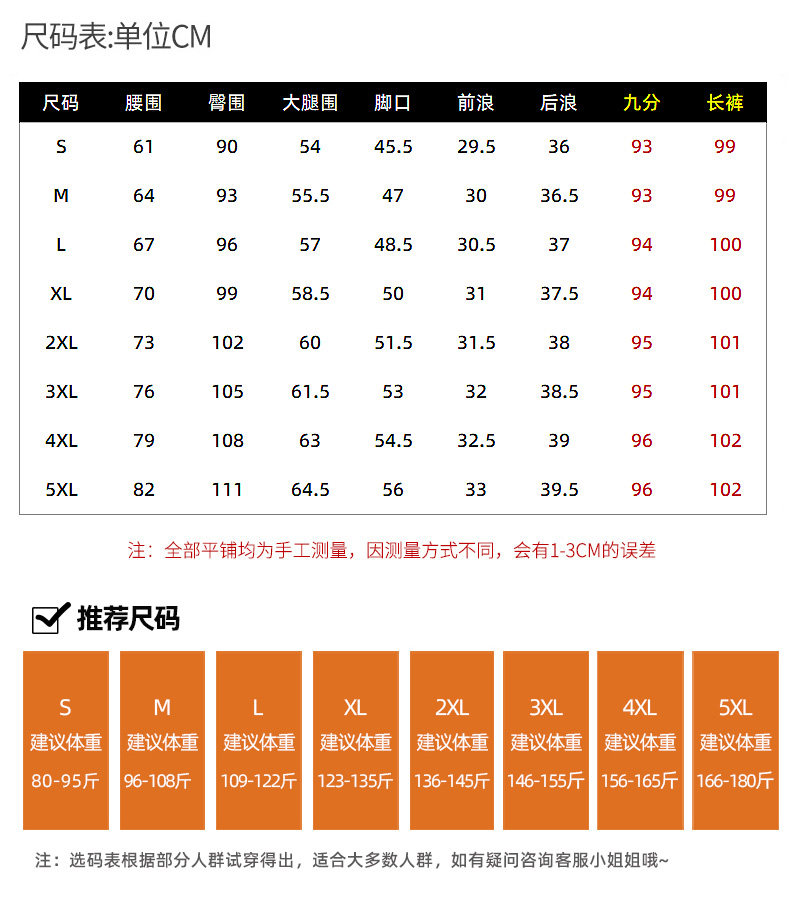 | 褲長 | 長褲 |