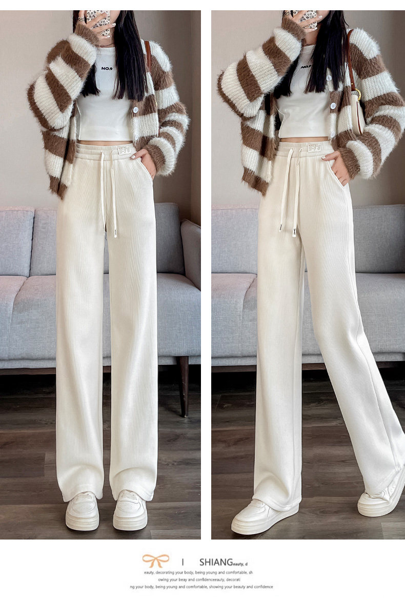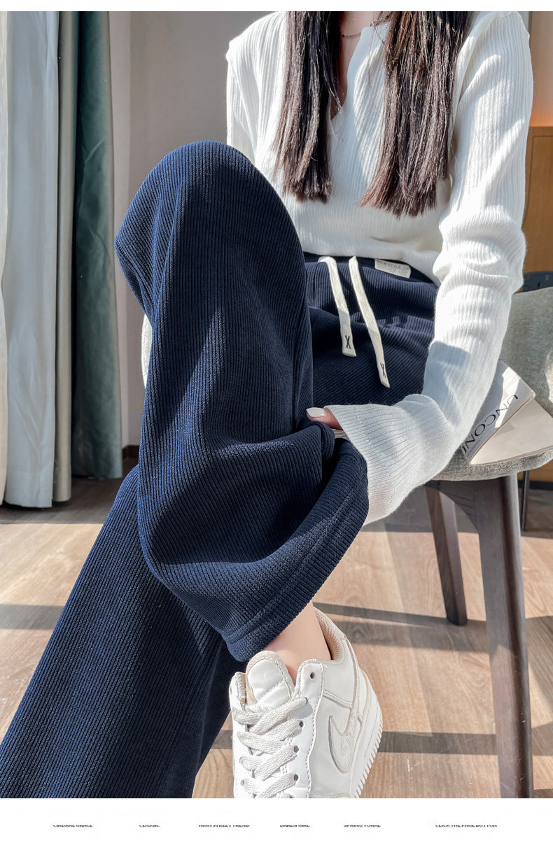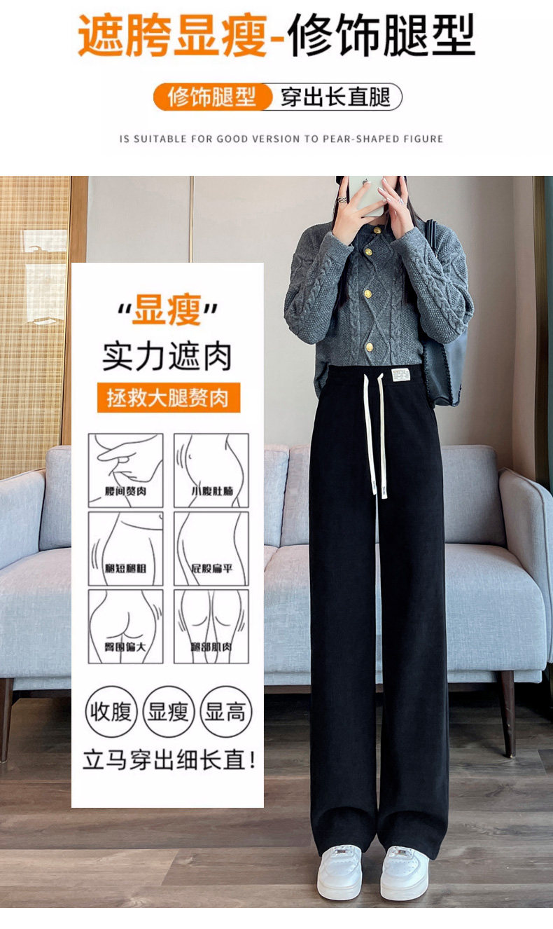 窄版濶腿褲女春秋2025雪尼爾小個子垂感加厚休閒直筒冬季加絨褲女